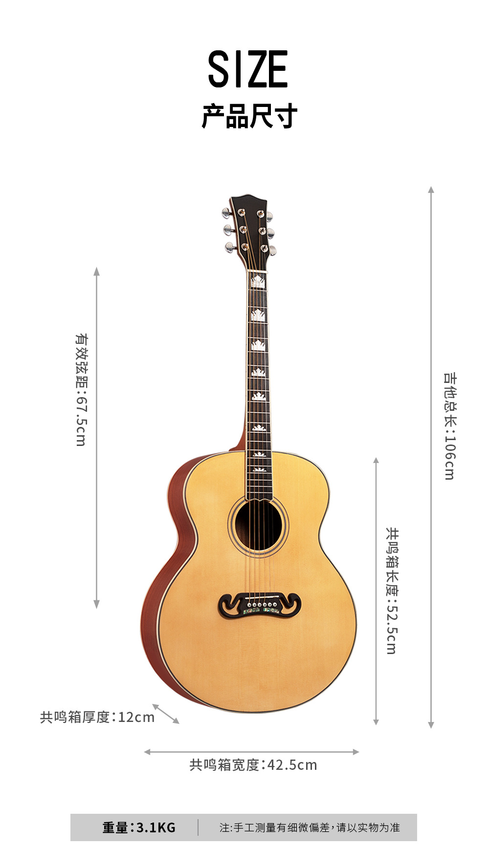 大G 42寸云杉木亮光民谣吉他guitar亮光正桶吉他 民谣木吉他jita