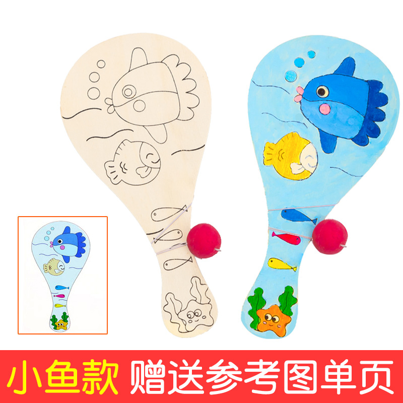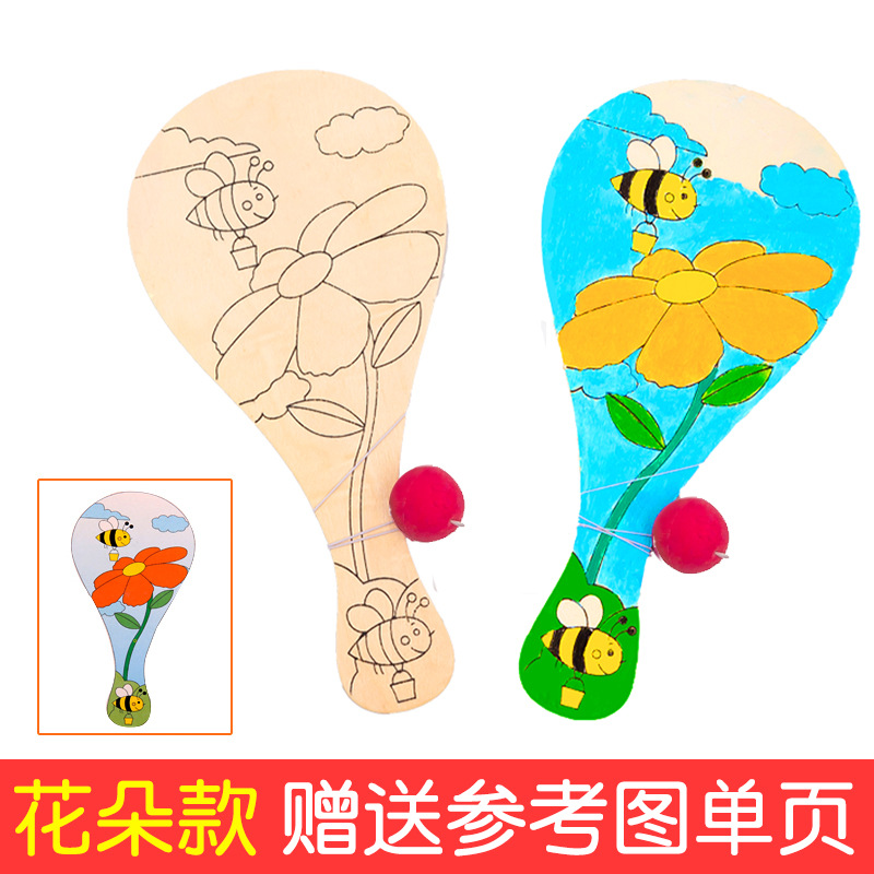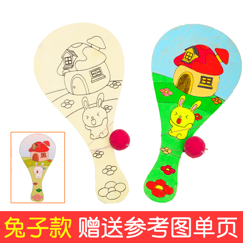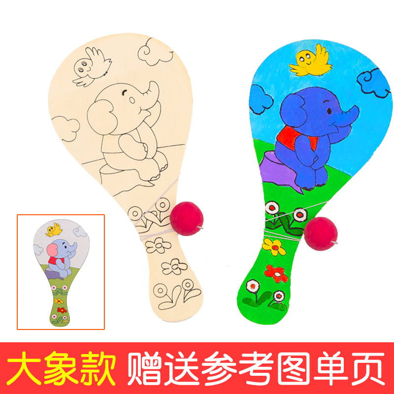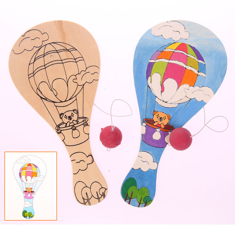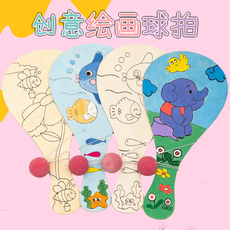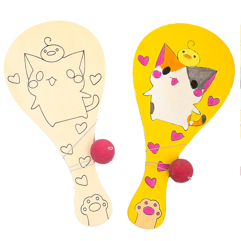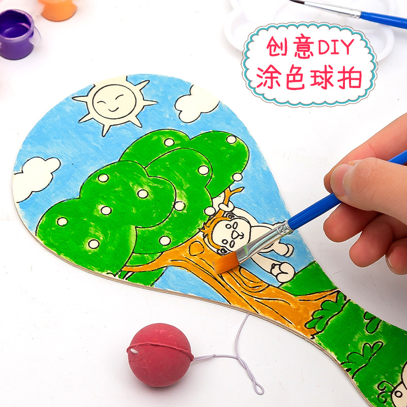 白坯木质球拍 儿童手工diy制作绘画创意涂鸦幼儿园拍拍球比赛玩具