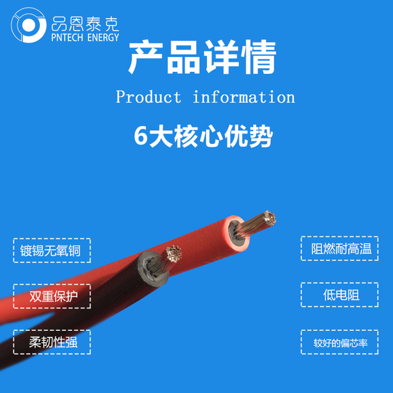 品恩泰克1500V光伏线H1Z2Z2-K辐照光伏电缆太阳能直流线缆EN50618