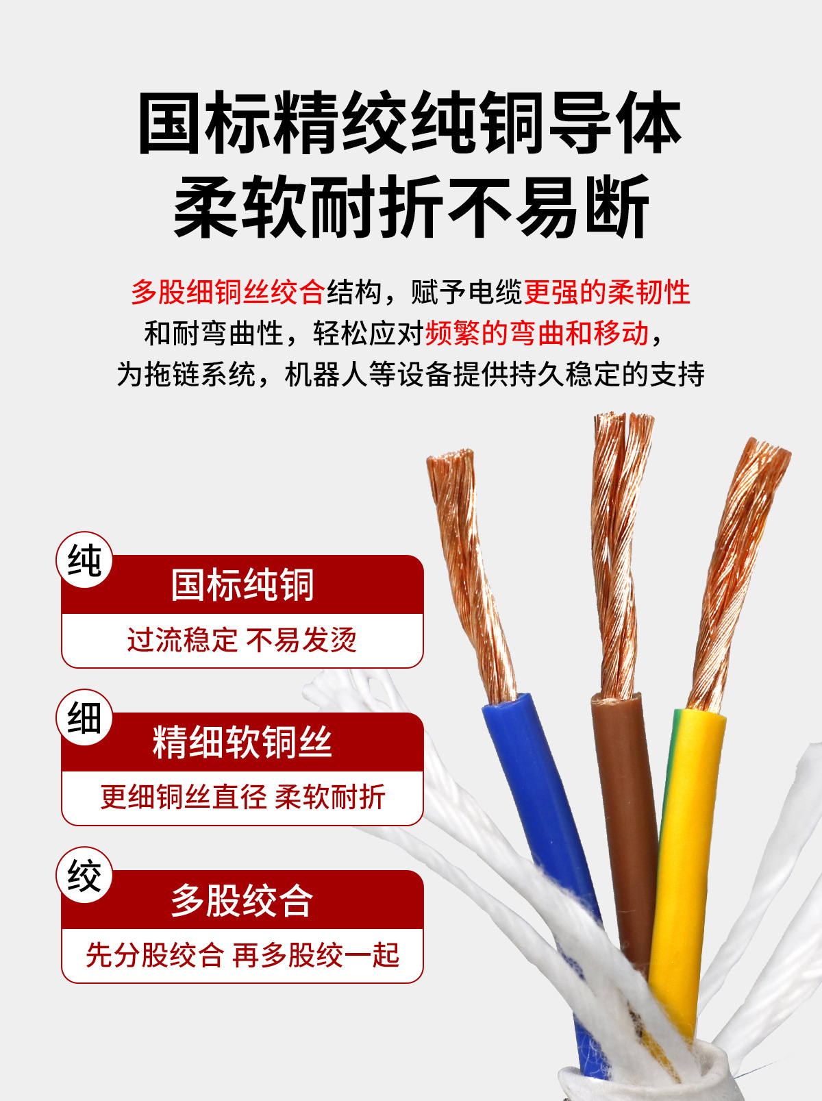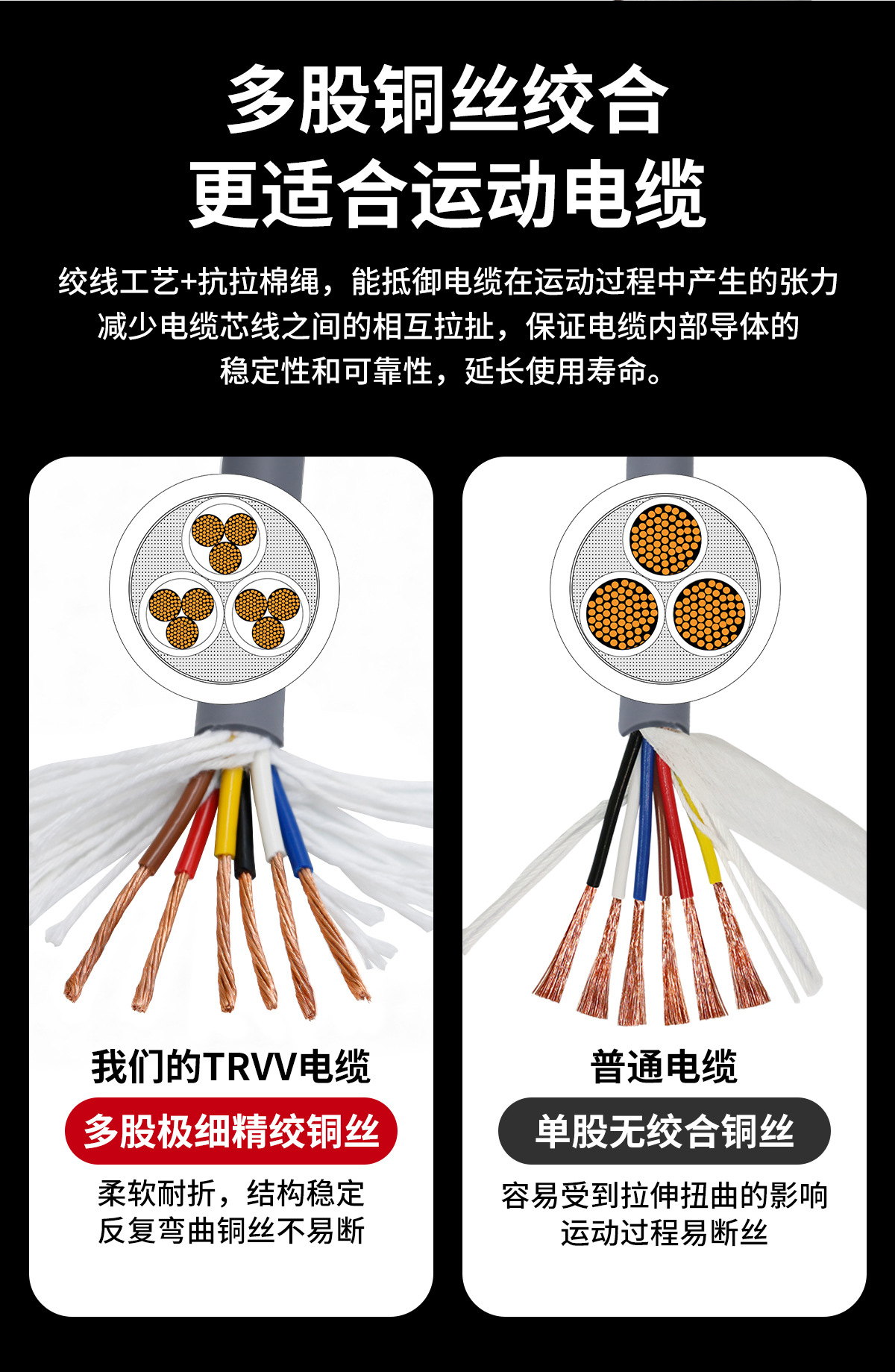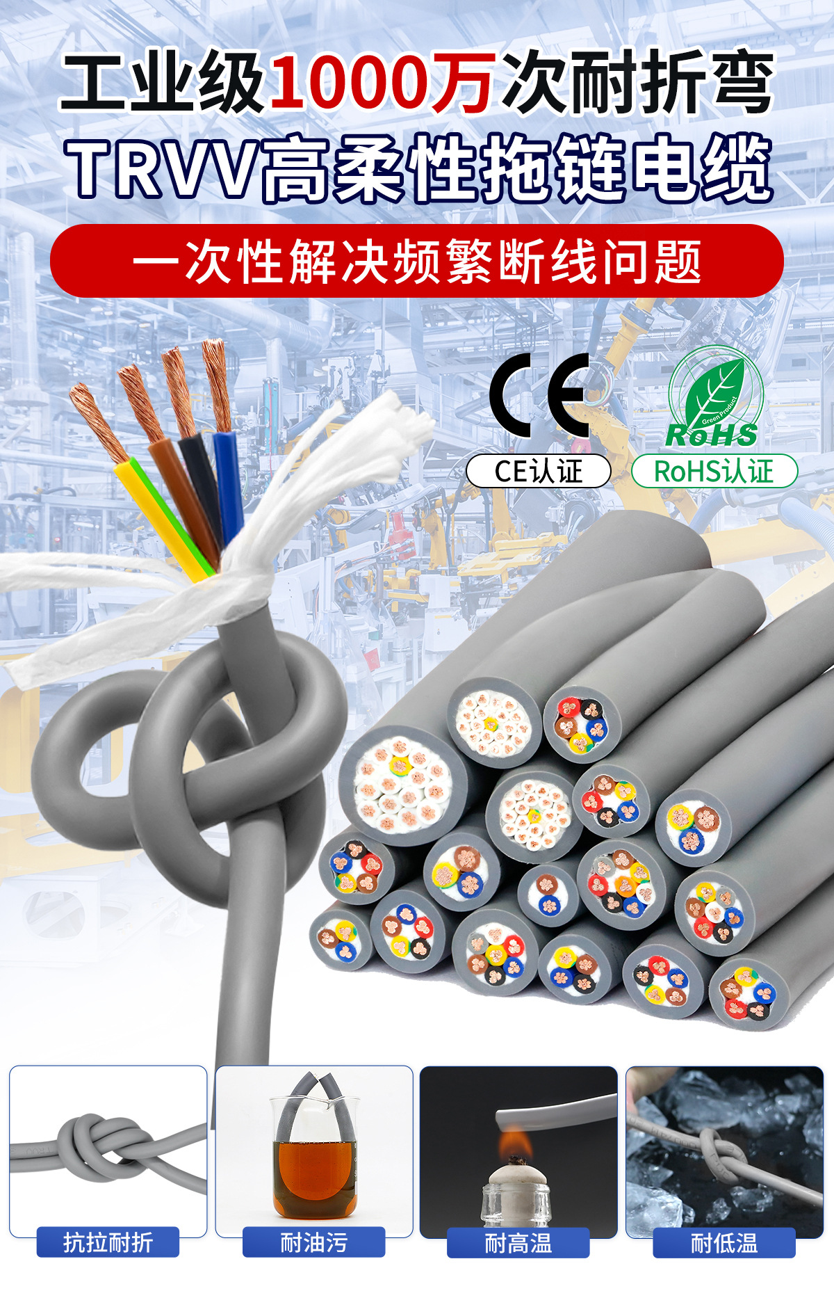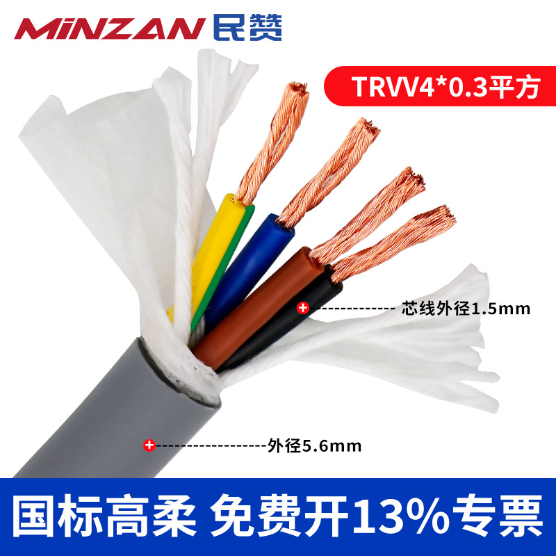 TRVV高柔性拖链电缆234芯 0.3 0.5 0.75 多芯控制特种软拖链电缆
