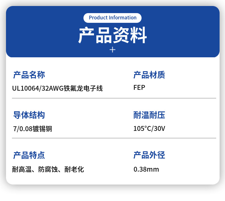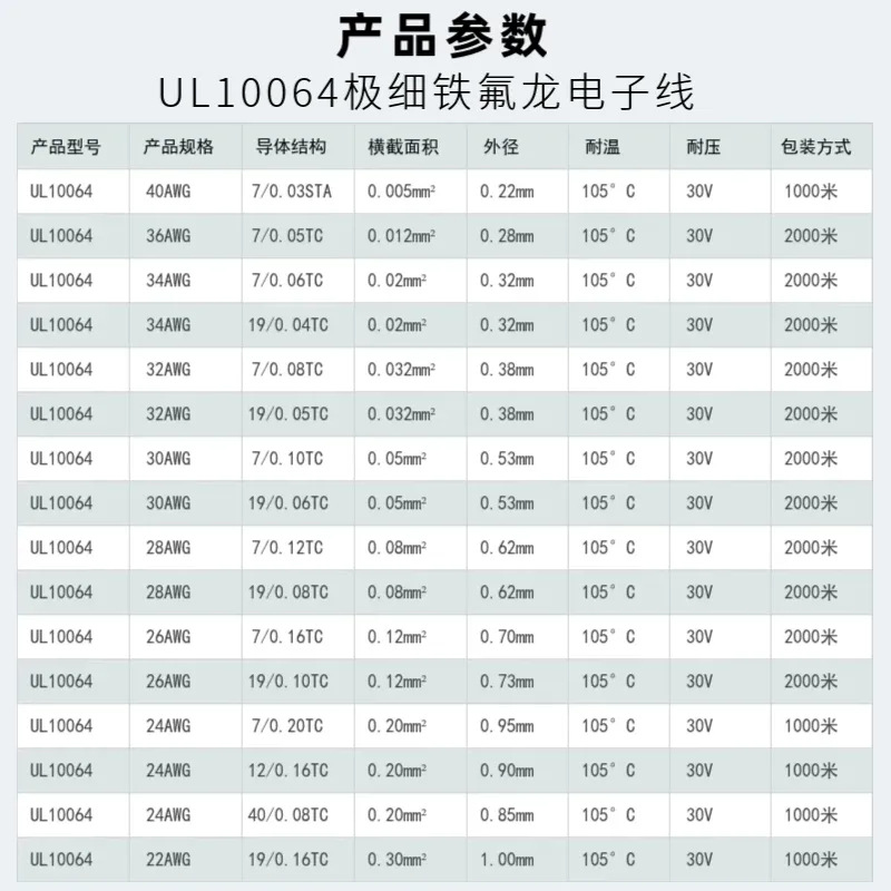 现货美标UL10064电子线32AWG铁氟龙极细线FEP耐高温105度耳机线材