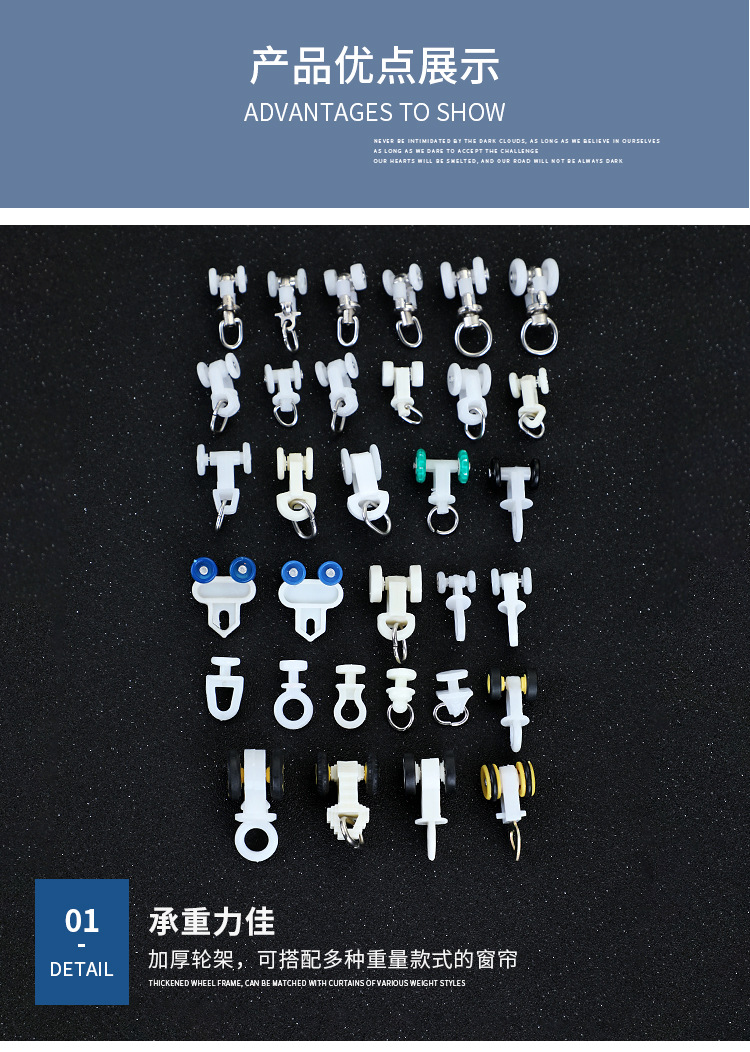 厂家直销窗帘轨道滑轮挂钩直轨弯轨滑轨走轮辅料老式导轨滚轮包邮