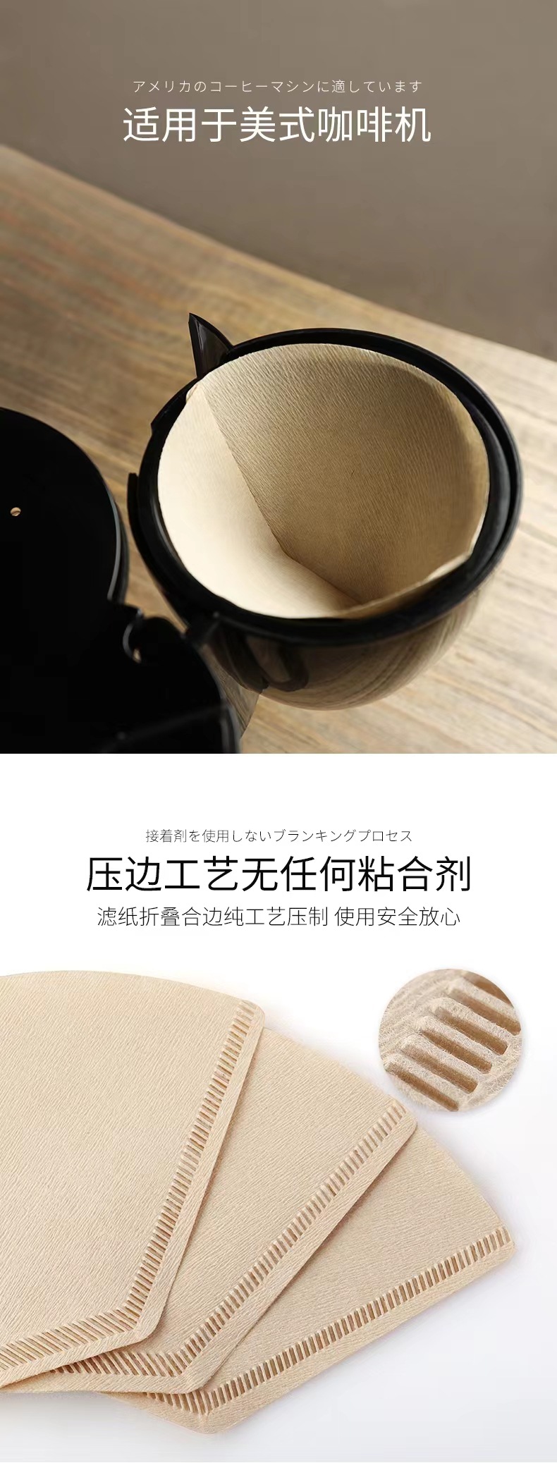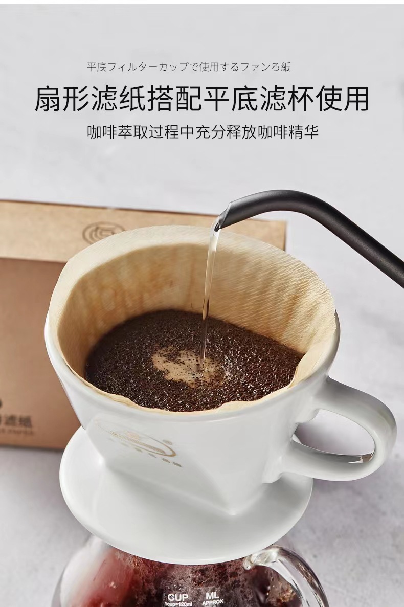 U型103咖啡过滤纸104咖啡滤纸扇形手冲一次性原木浆白色本色滤纸