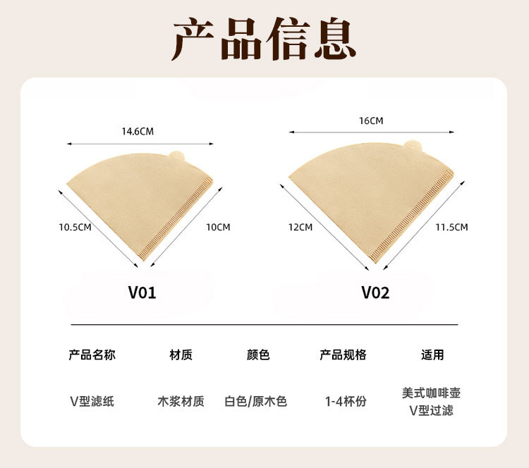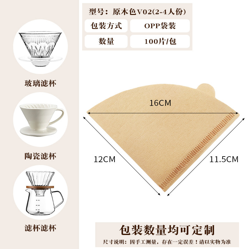 工厂咖啡滤纸咖啡滤网滴漏式手冲咖啡粉过滤纸一次性扇形V60滤袋