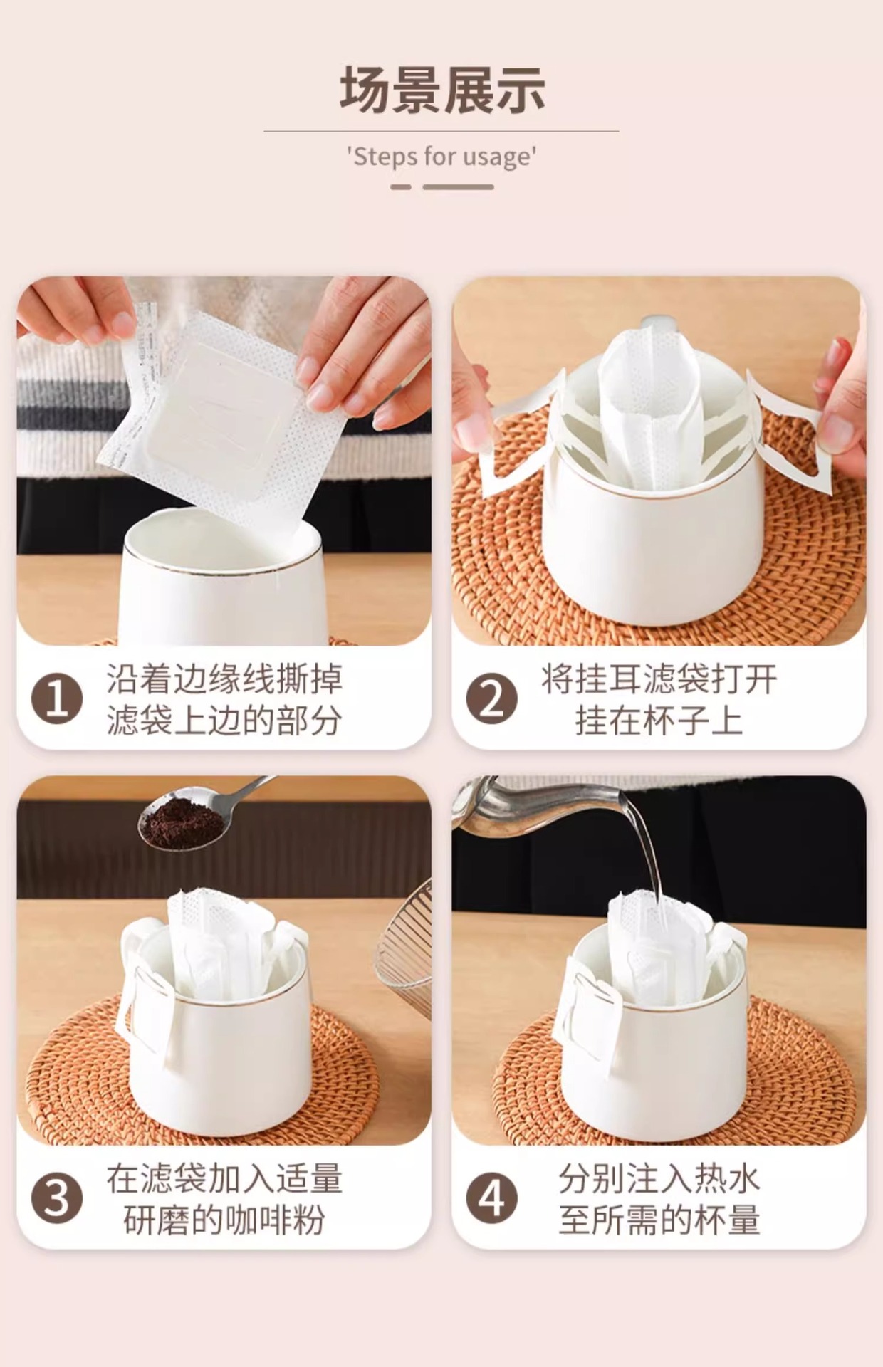 咖啡滤纸挂耳手冲咖啡粉过滤纸进口挂耳包滤网一次性过滤袋
