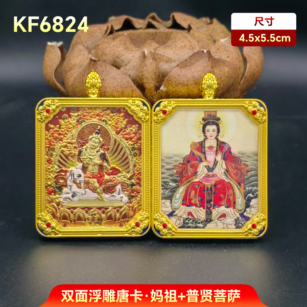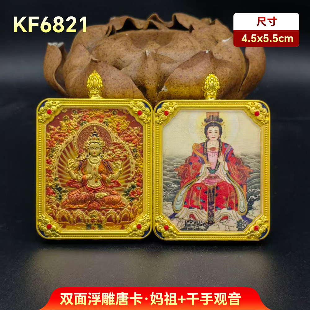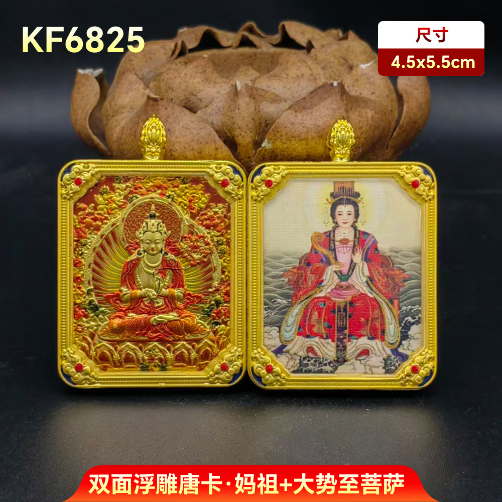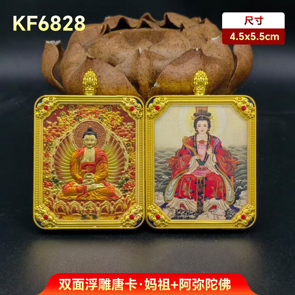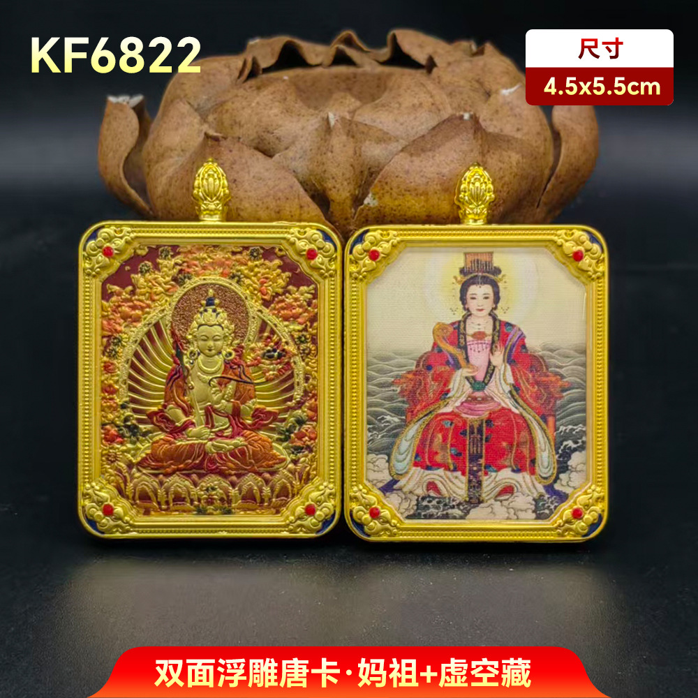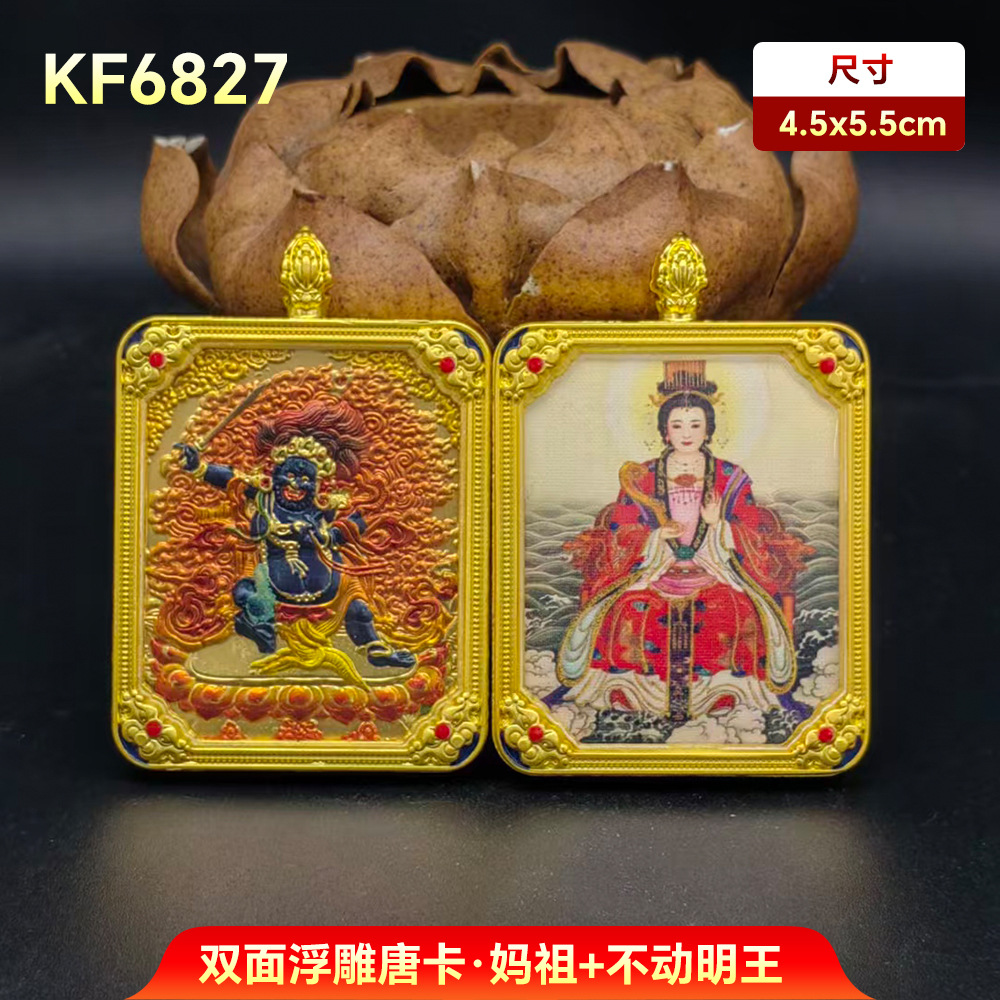 妈祖唐卡十二生肖守护神阿弥陀佛吊坠双面唐卡手绘本命带五路财神