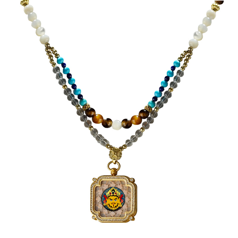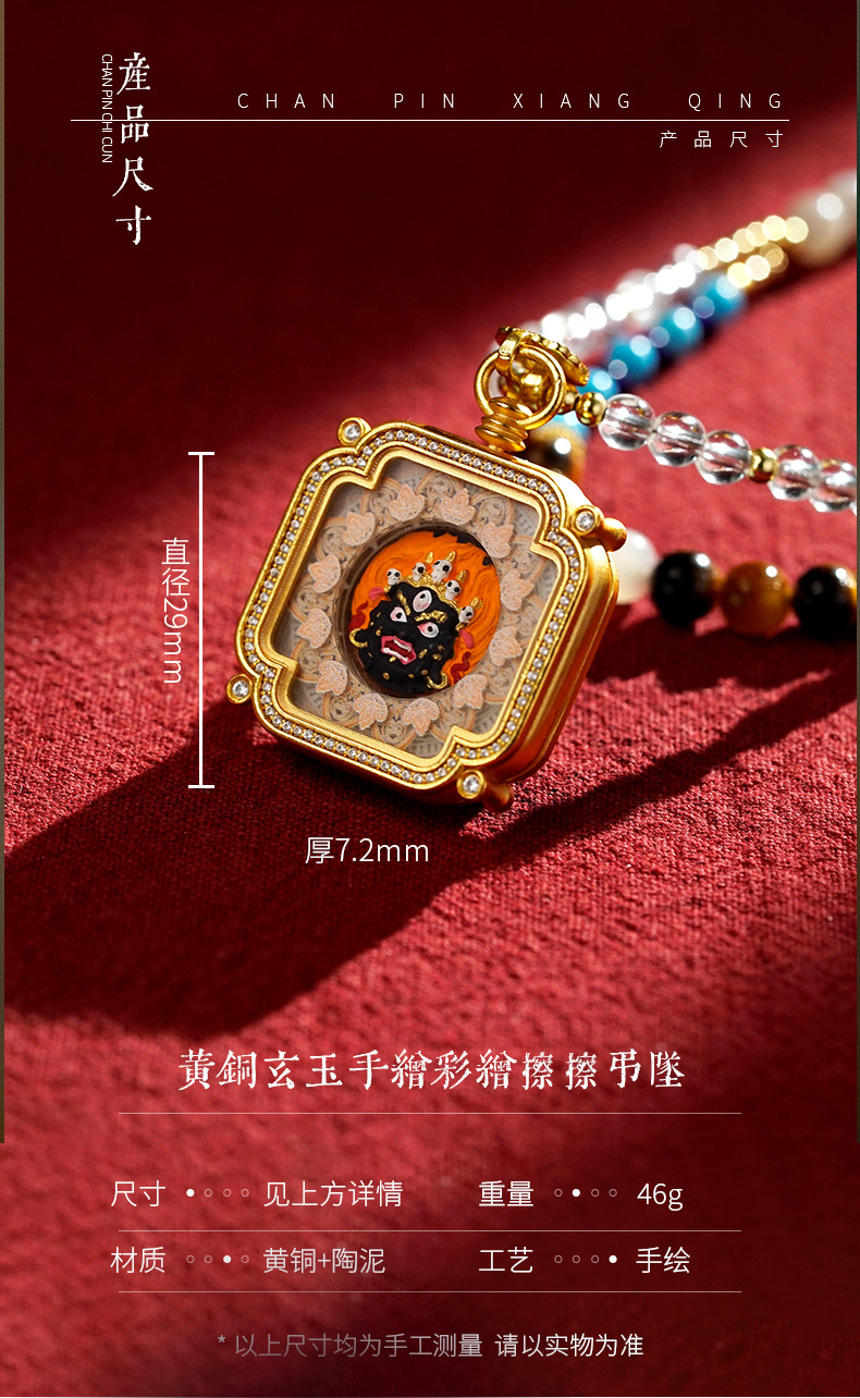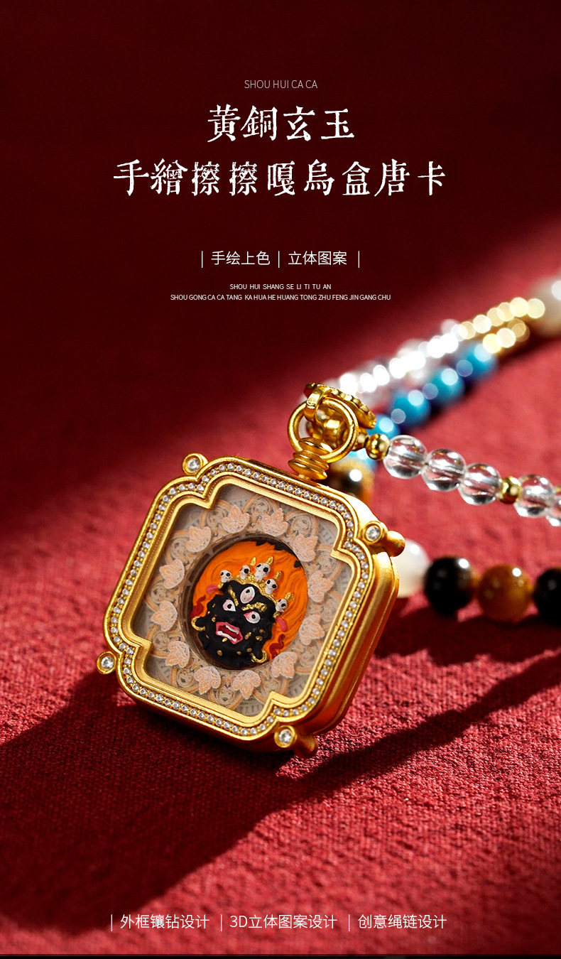 黄铜擦擦唐卡手绘扎基拉姆五台山五爷吊坠配饰首饰绿度母文殊配饰