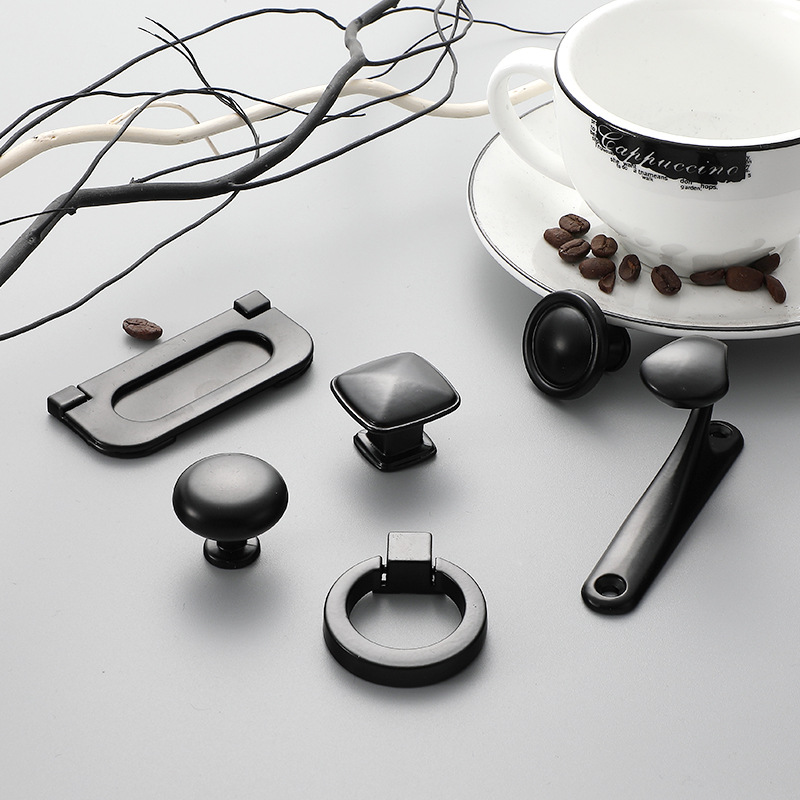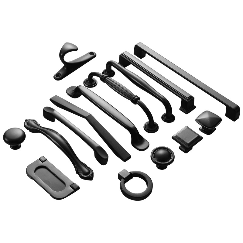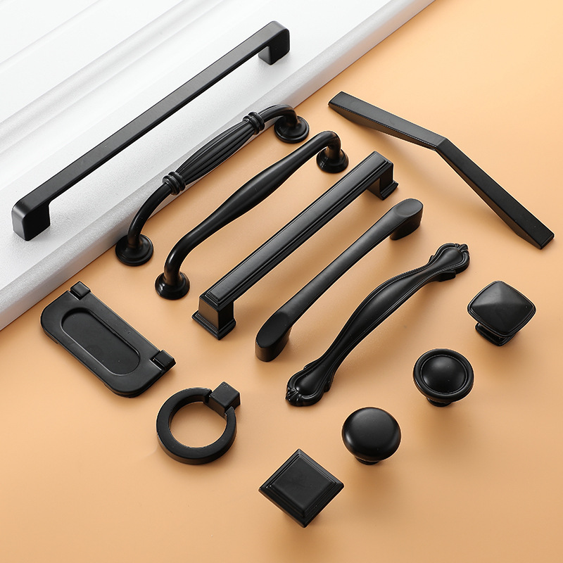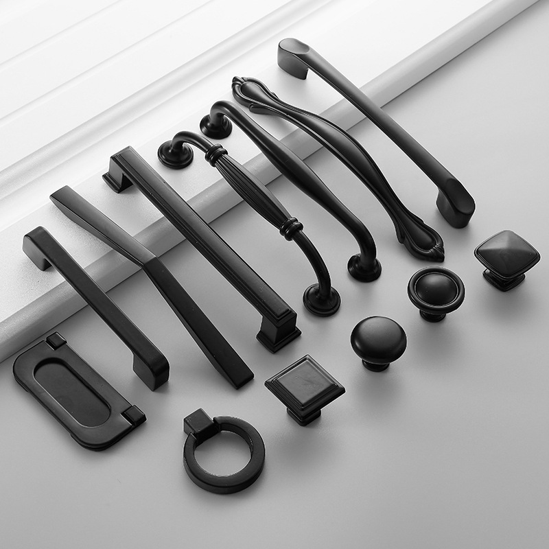 黑色拉手铝合金实心欧式现代橱柜衣柜门把手家具五金橱柜衣柜通用
