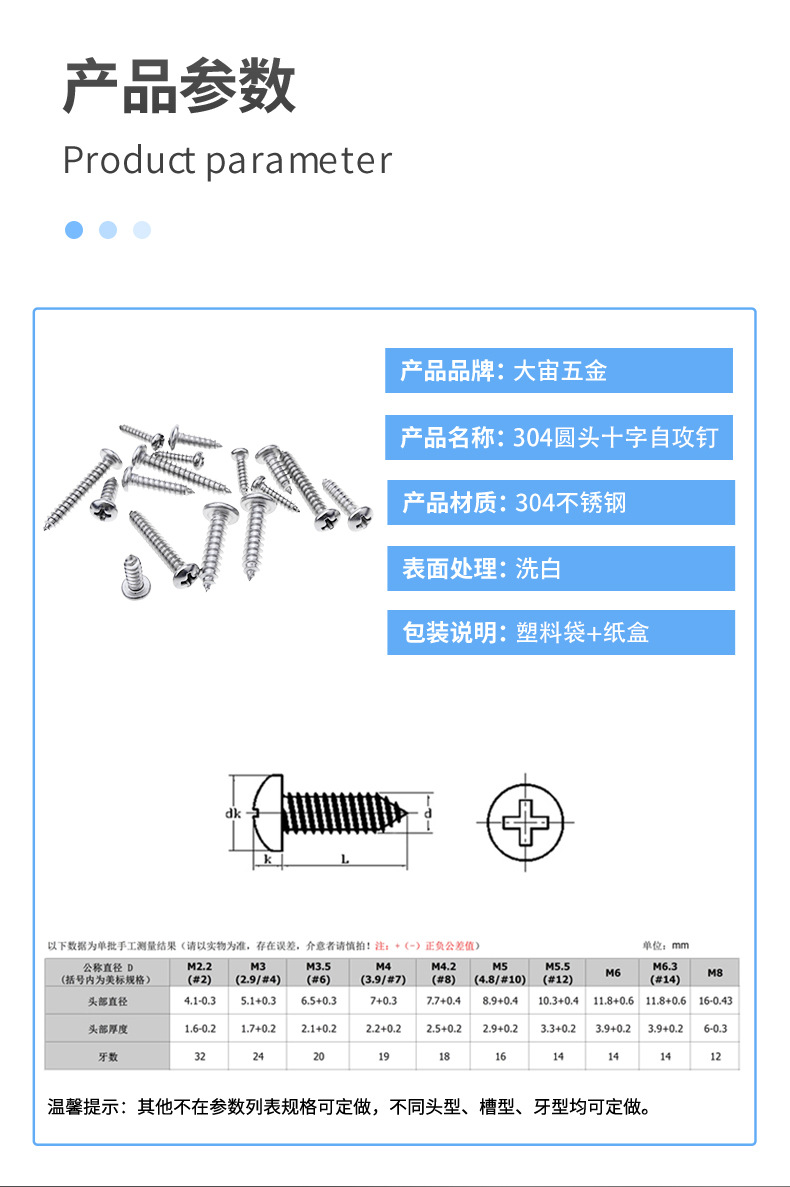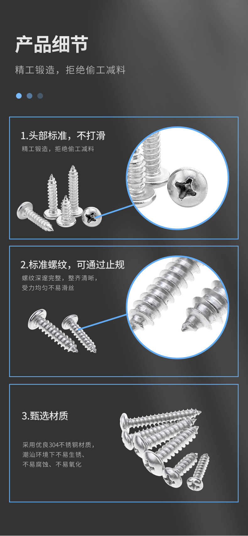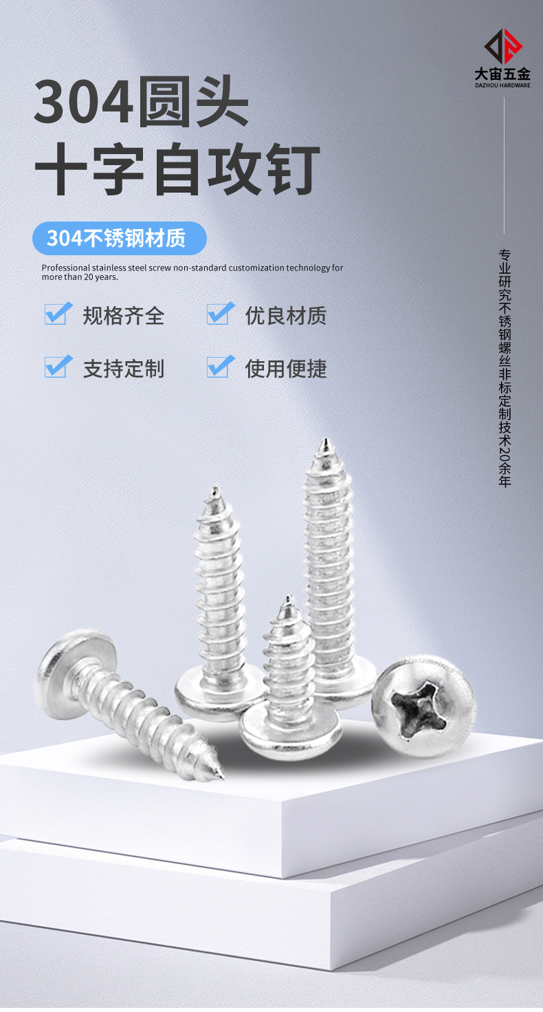 用于电子精密设备金属薄板连接YB 845不锈钢尖尾十字圆头自攻螺丝