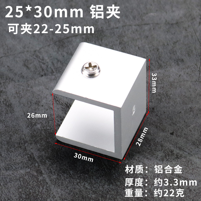 铝合金玻璃夹固定夹支架托U型玻璃托一字型瓷砖菜池夹18mm层板夹
