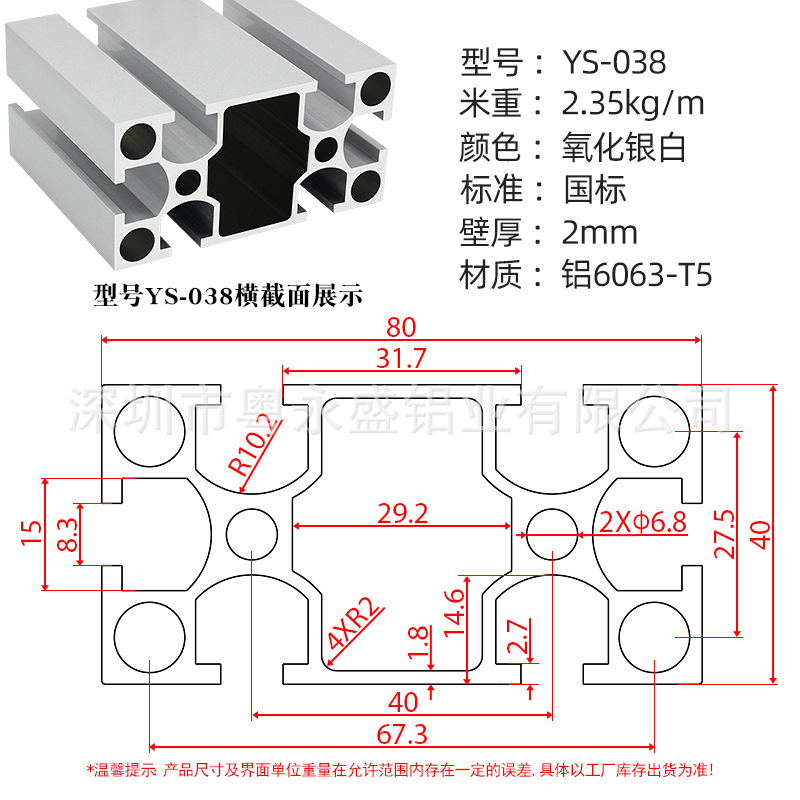 4040铝型材 工业铝型材方管 铝合金型材 4040国标铝型材2.0厚电泳
