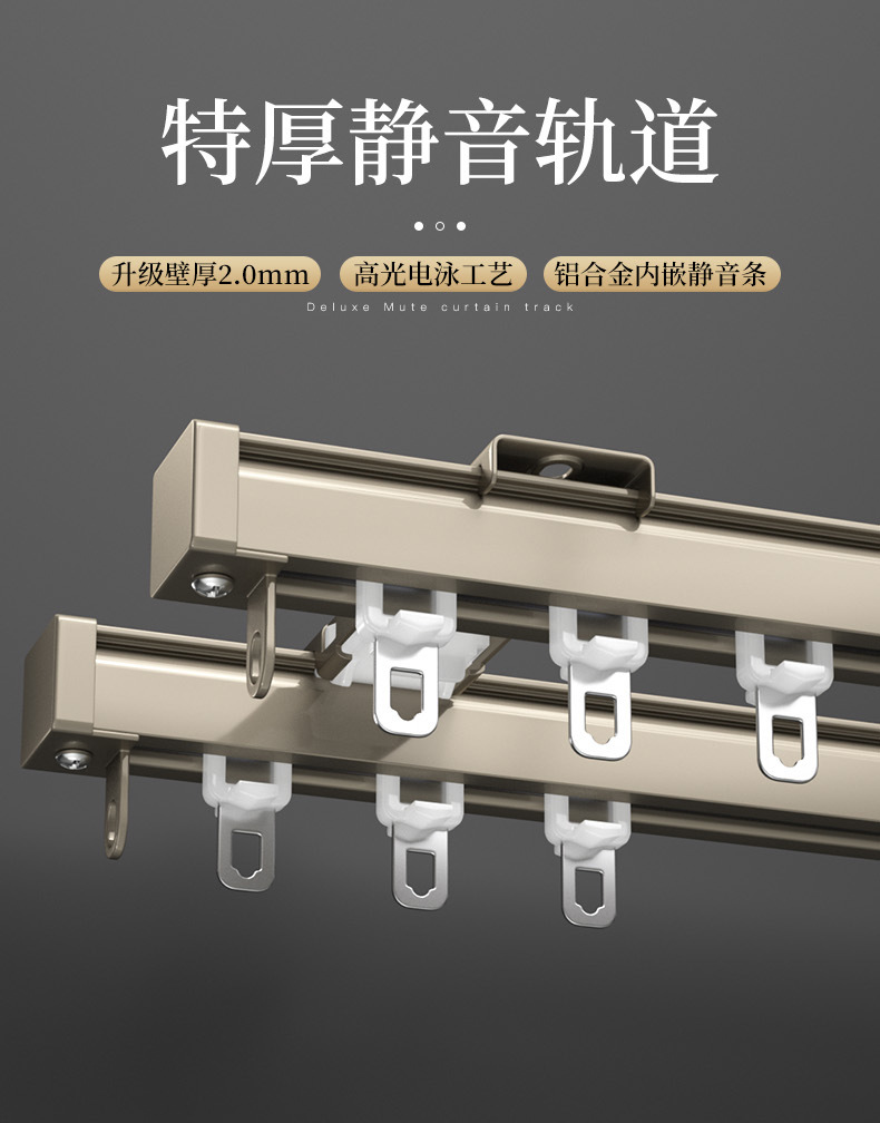 2MM加厚重型滑轨铝合金双静音窗帘轨道窗帘滑道窗帘直轨路轨导轨