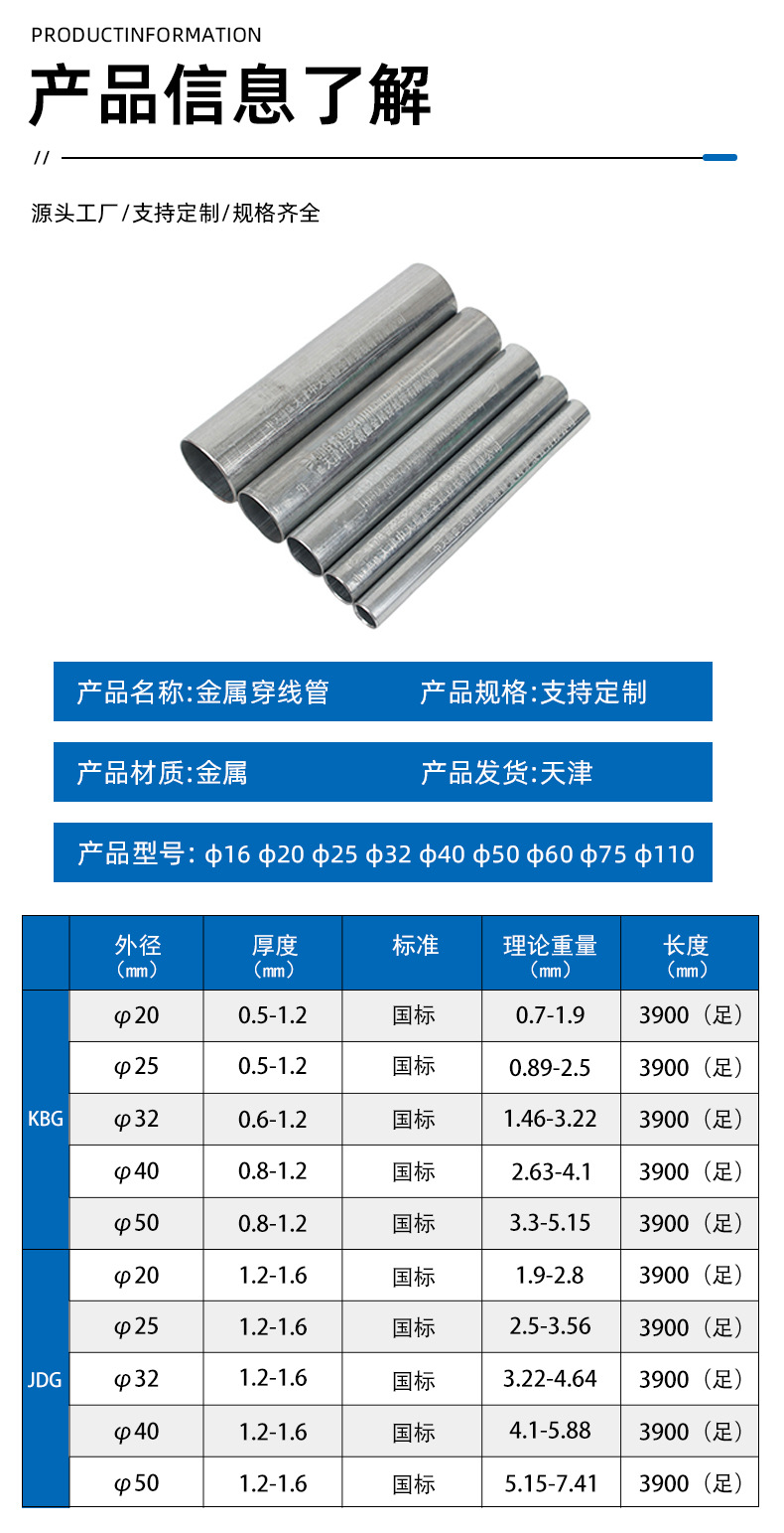 厂家生产金属穿线管镀锌jdg管20kbg管材 现货kbg/jdg线管dn20线管