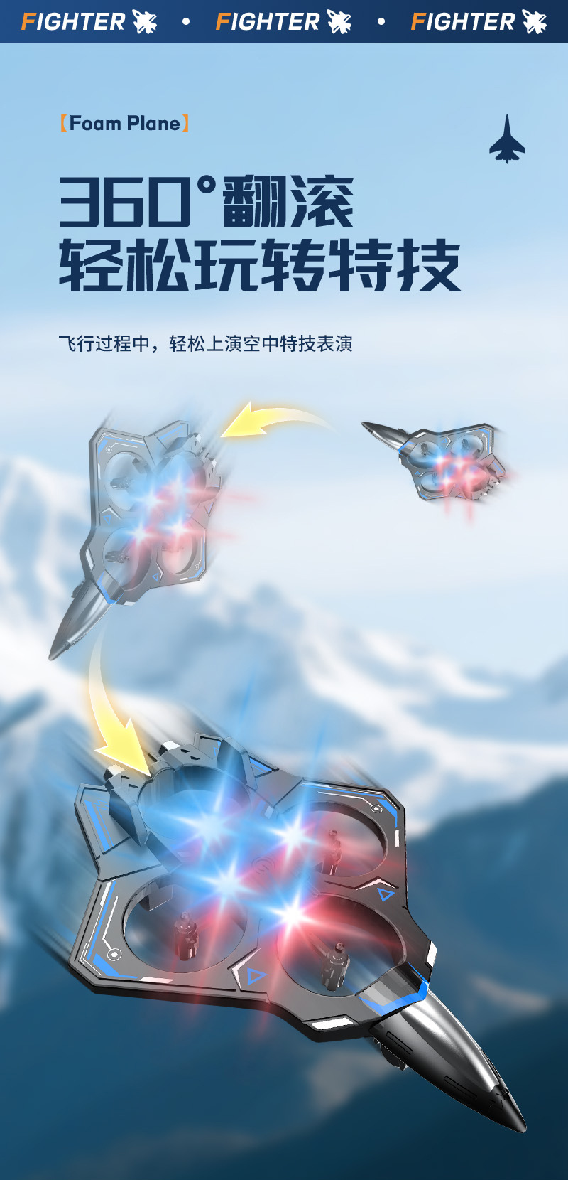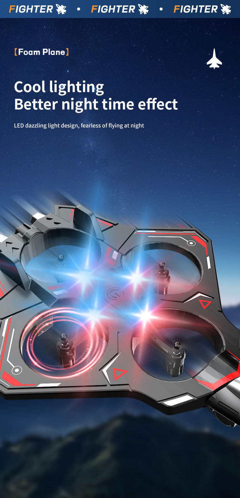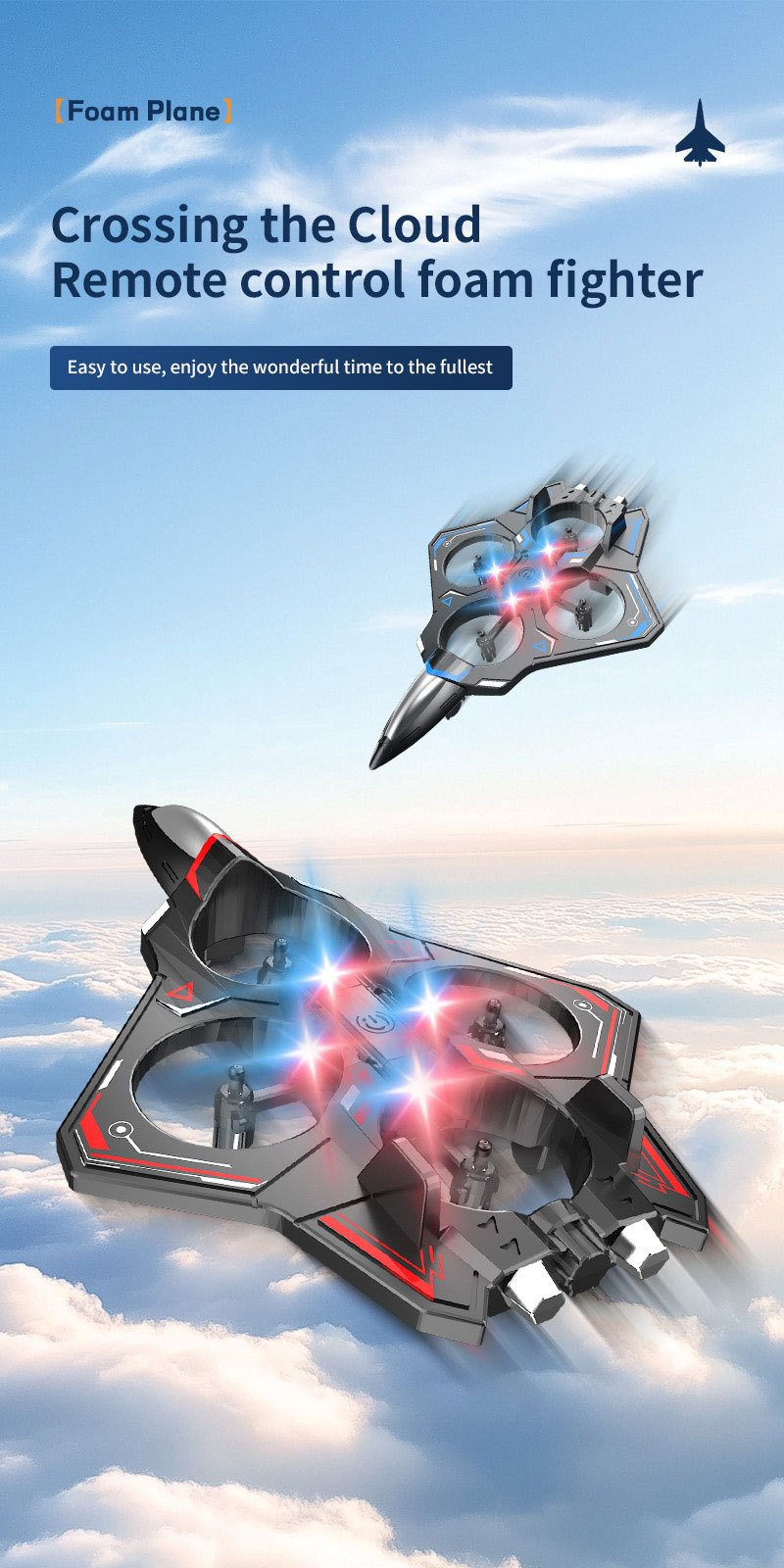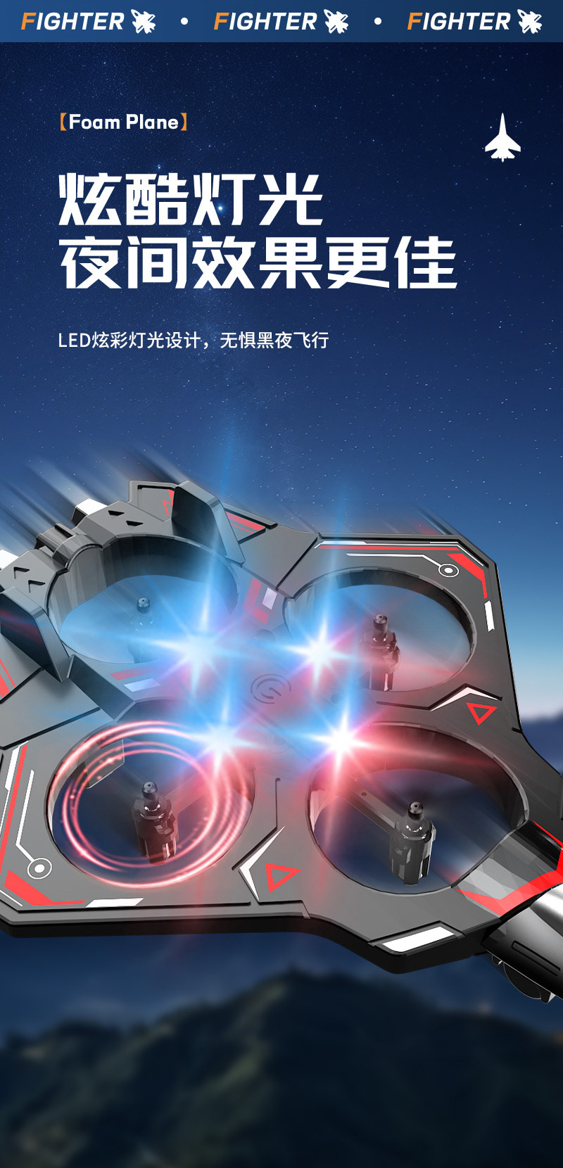 BK7儿童生日礼物泡沫遥控战斗机四轴滑翔机炫彩灯光男孩益智玩具