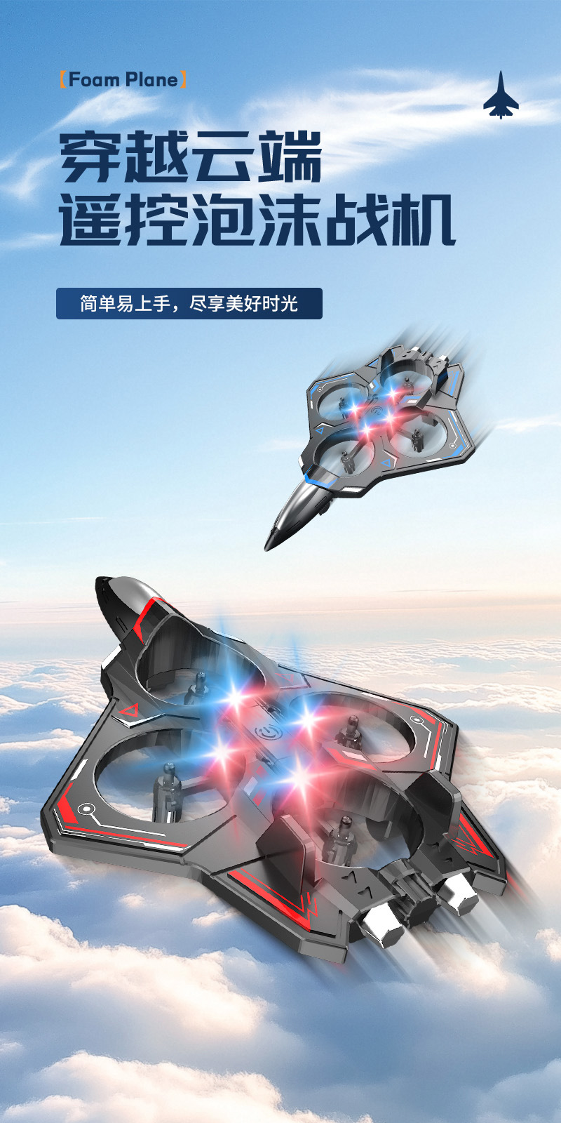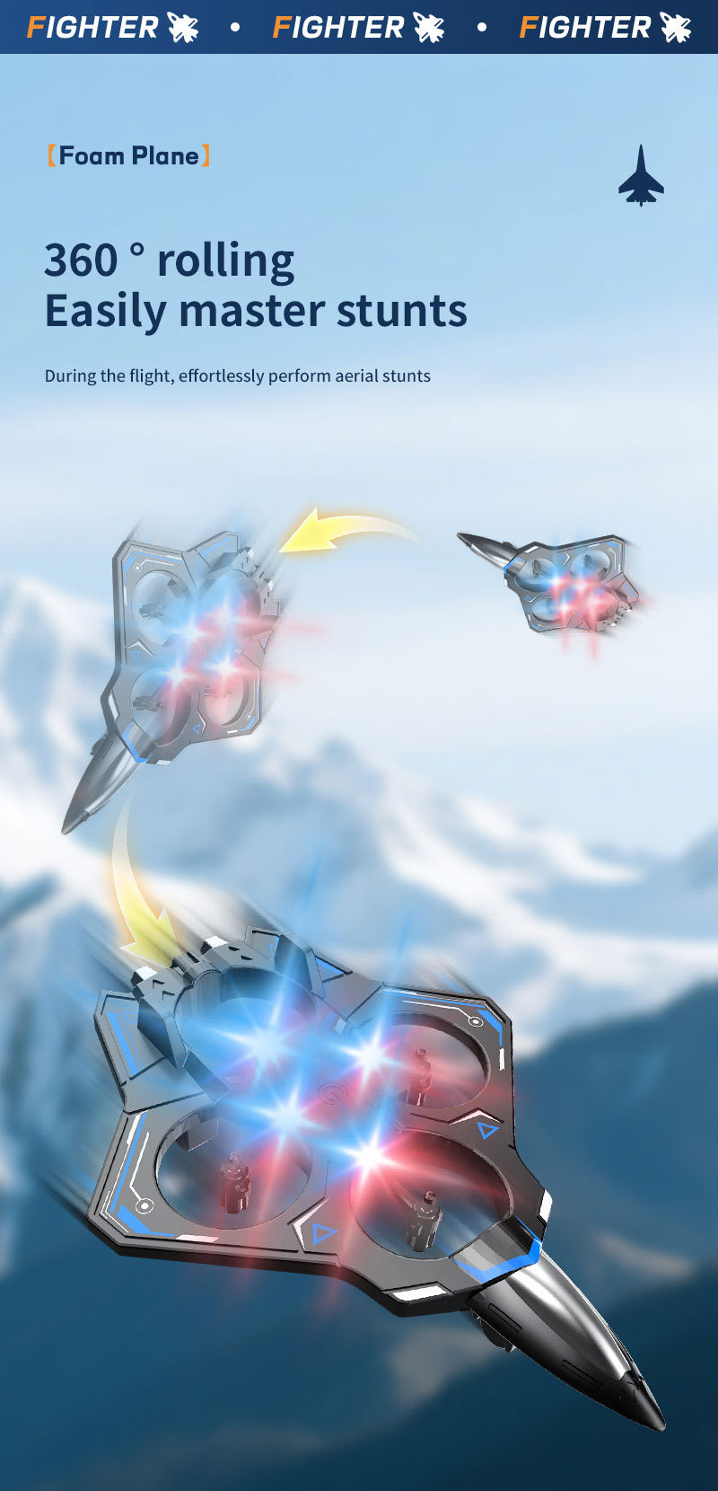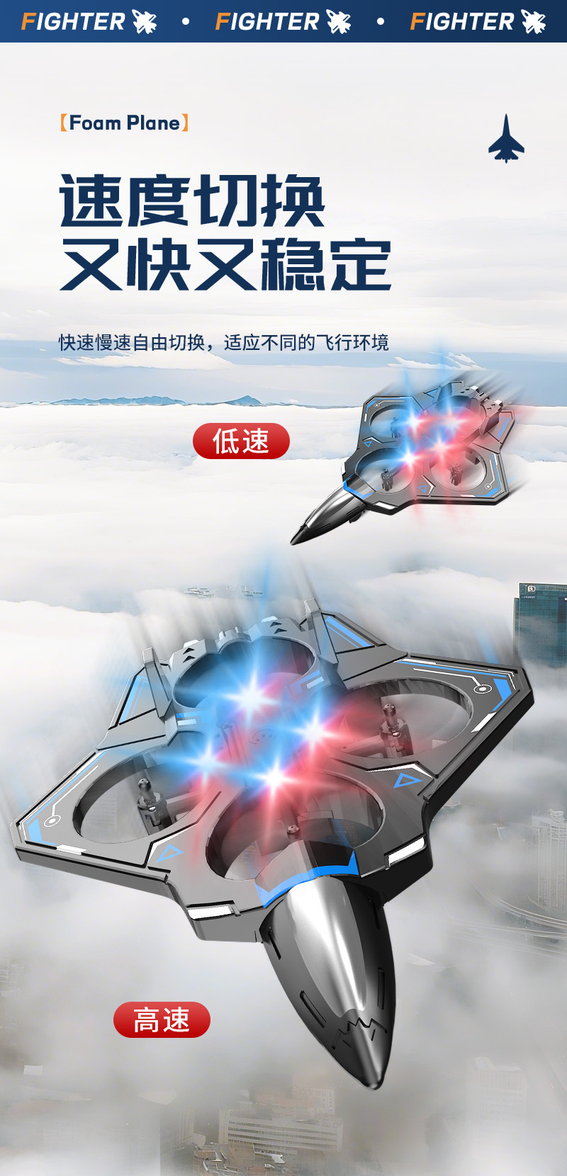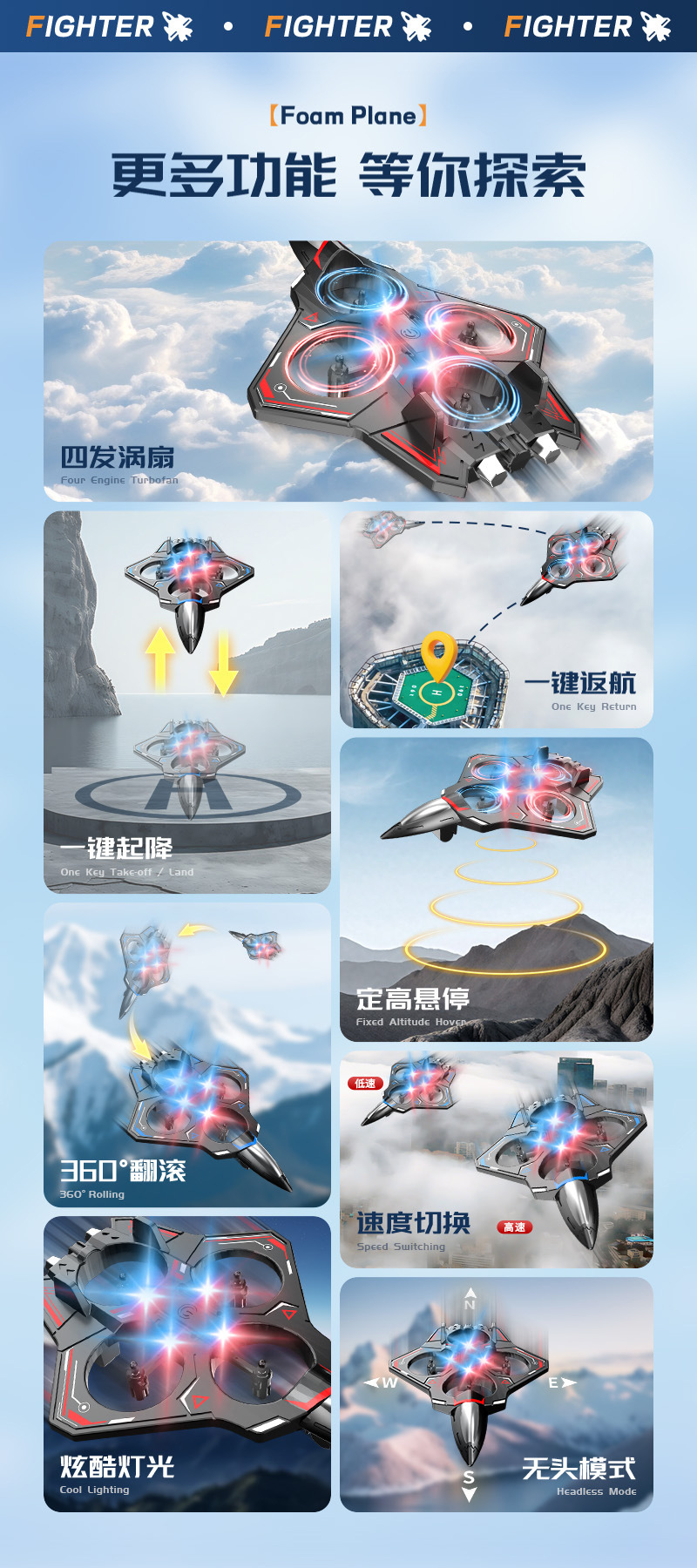 BK7儿童生日礼物泡沫遥控战斗机四轴滑翔机炫彩灯光男孩益智玩具