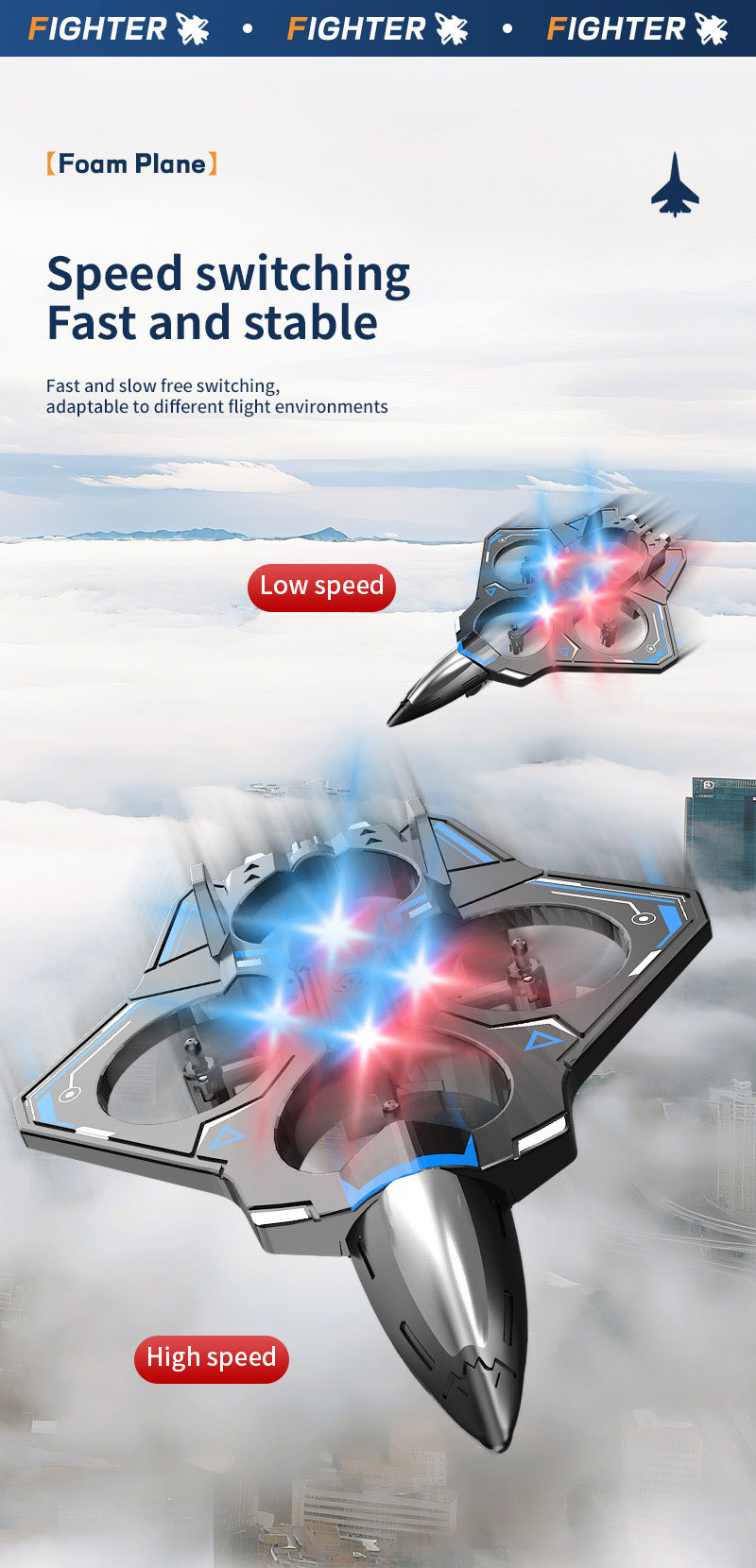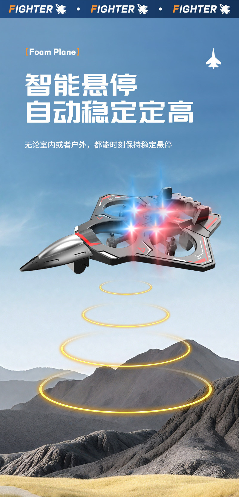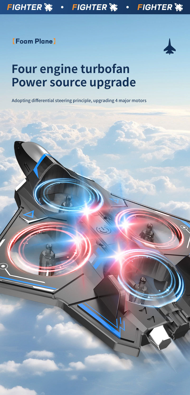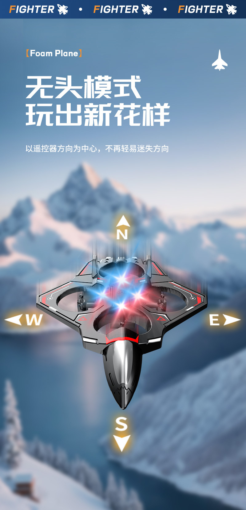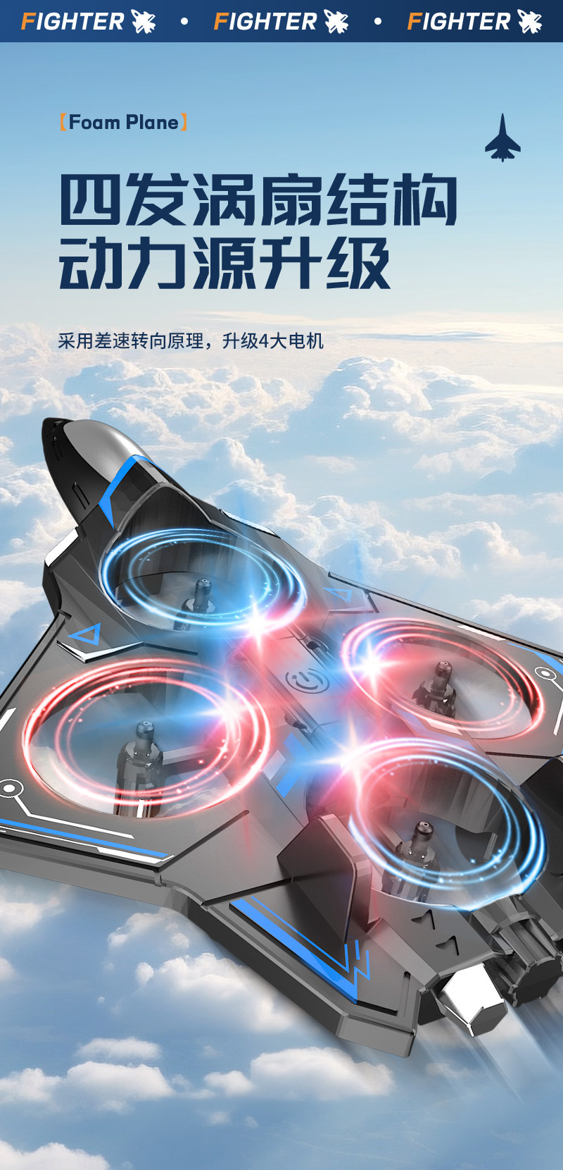 BK7儿童生日礼物泡沫遥控战斗机四轴滑翔机炫彩灯光男孩益智玩具