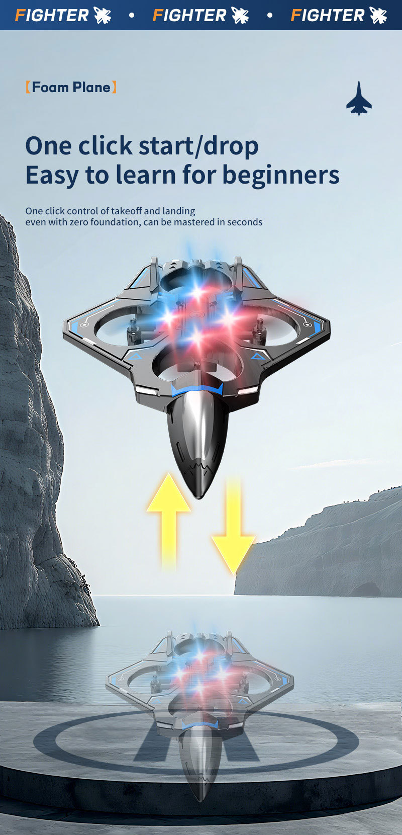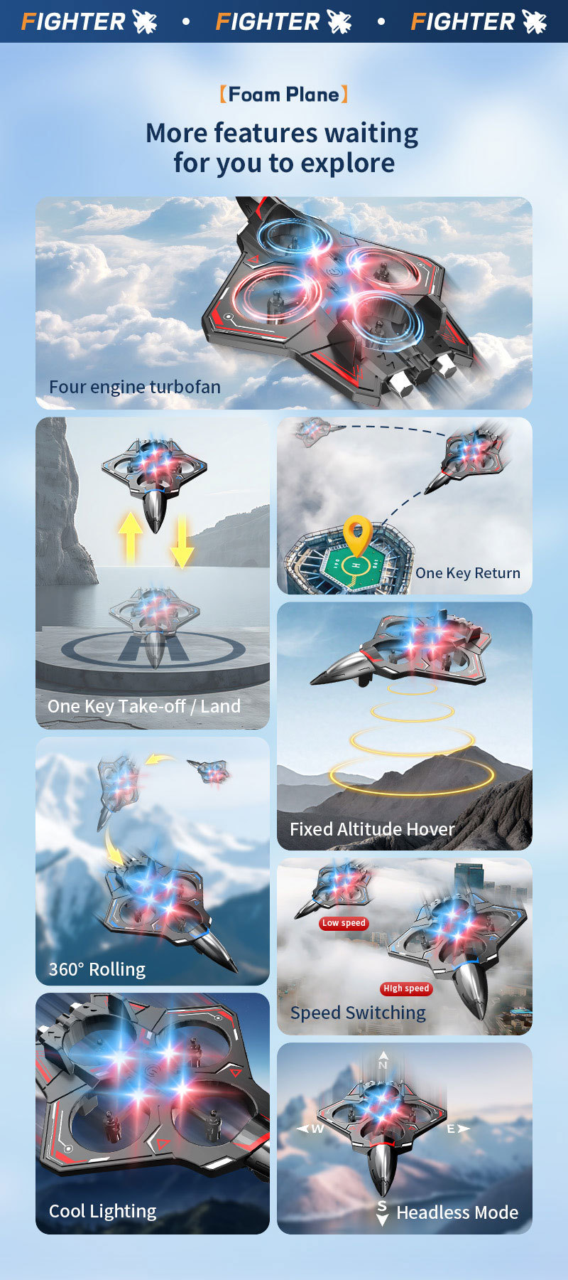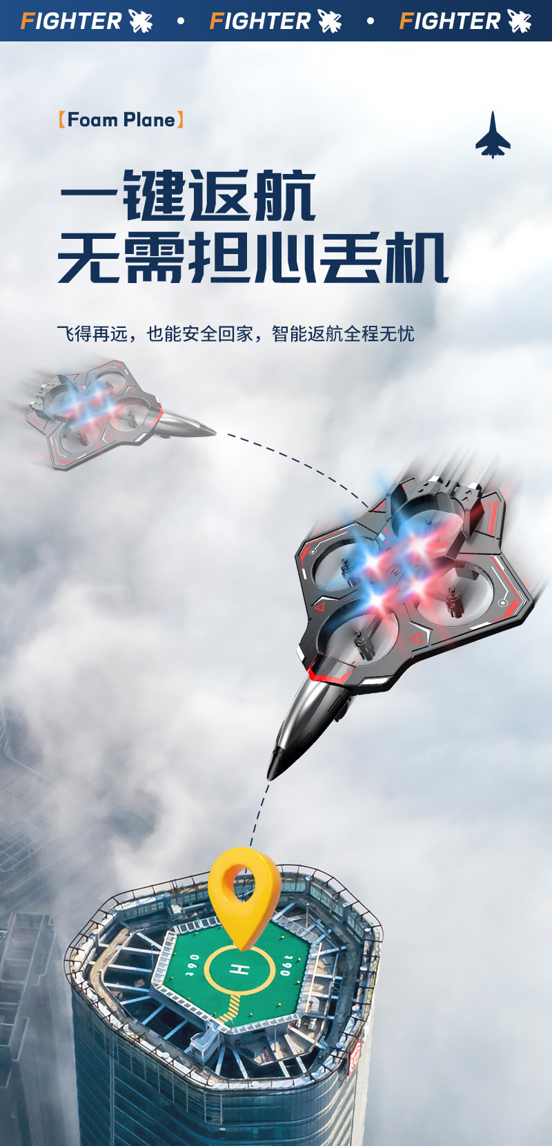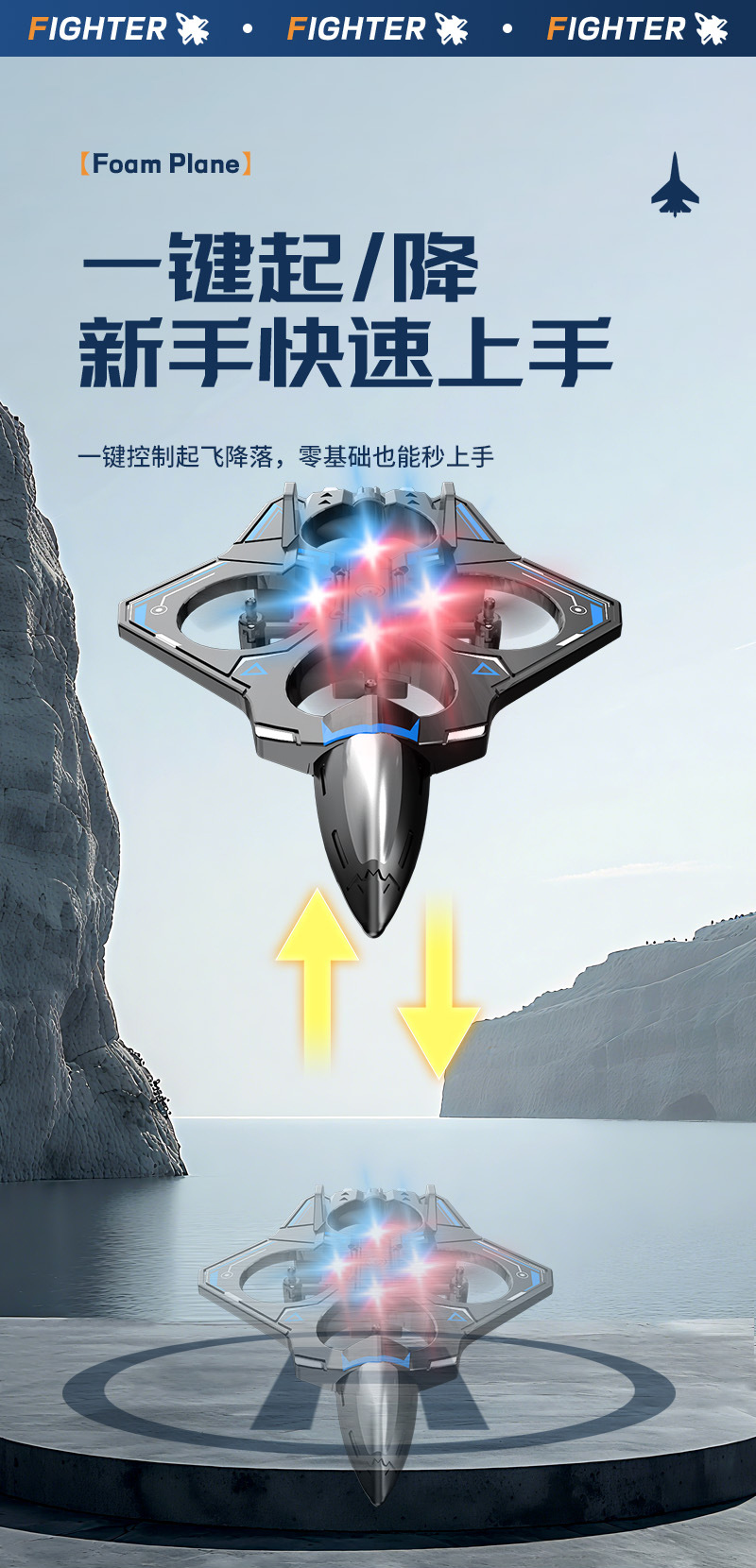 BK7儿童生日礼物泡沫遥控战斗机四轴滑翔机炫彩灯光男孩益智玩具