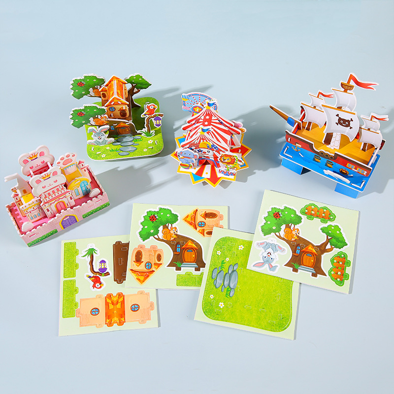 卡通3D立体房子拼图 儿童DIY拼插玩具幼儿园早教益智拼装玩具批发