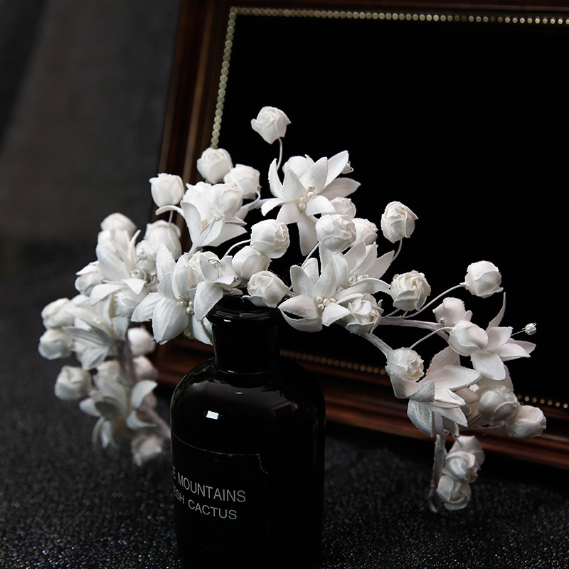 新娘头饰森系白色黑色头花发箍仙美布艺手工发饰婚礼主婚纱配饰