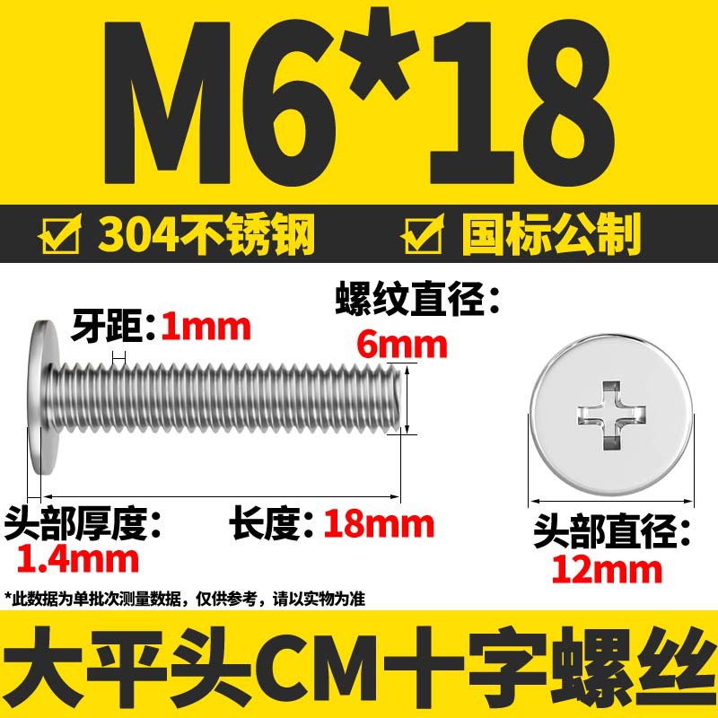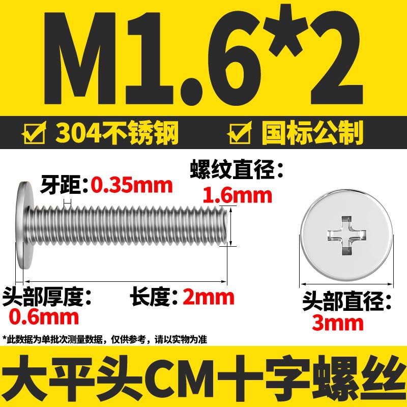 304不锈钢大平头螺丝CM十字螺钉扁平头螺丝钉超薄头螺栓M2M8批发