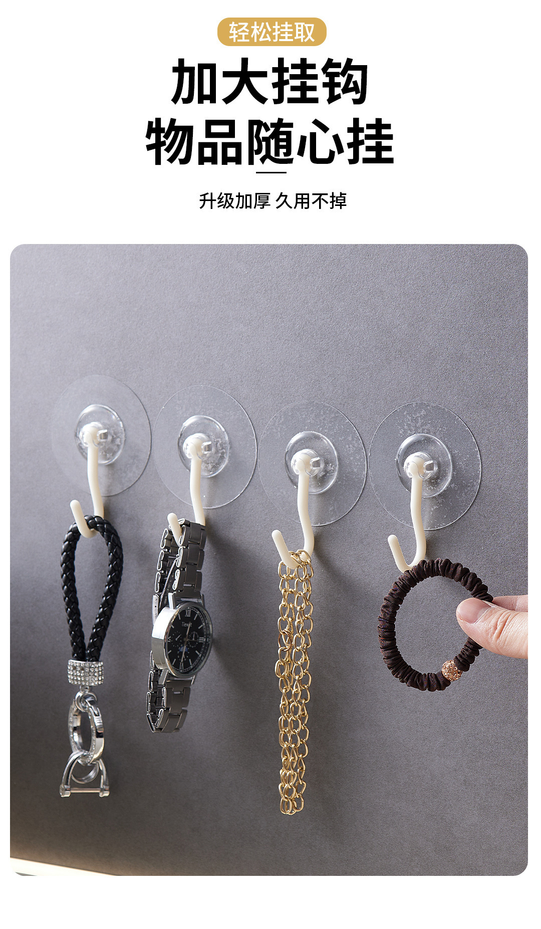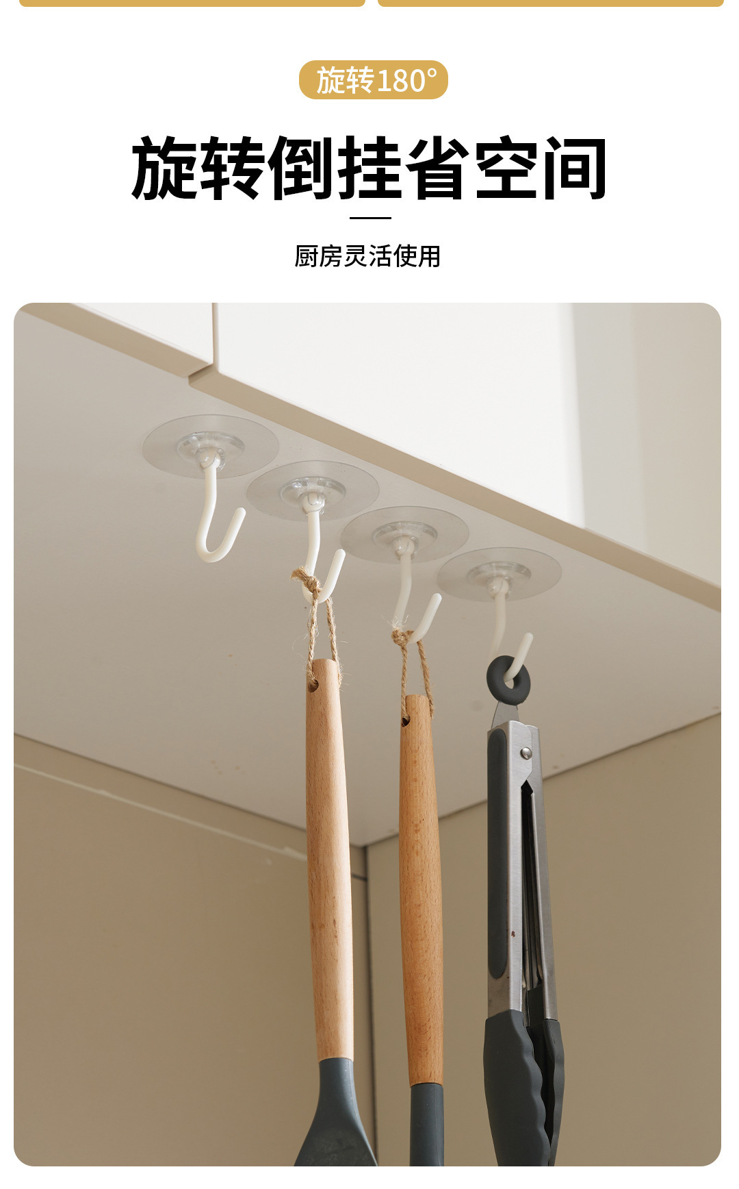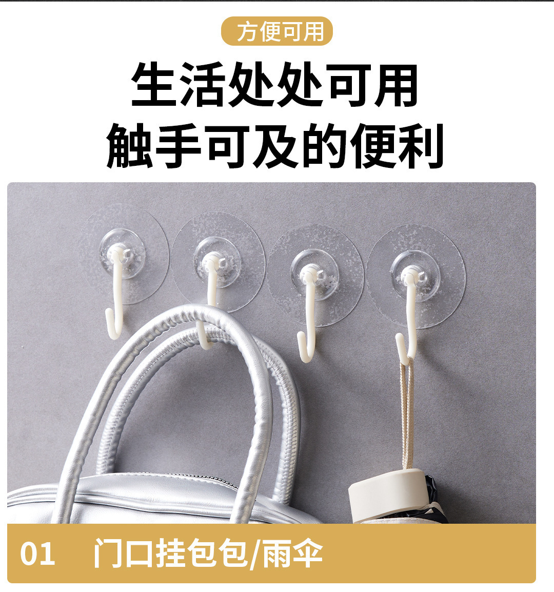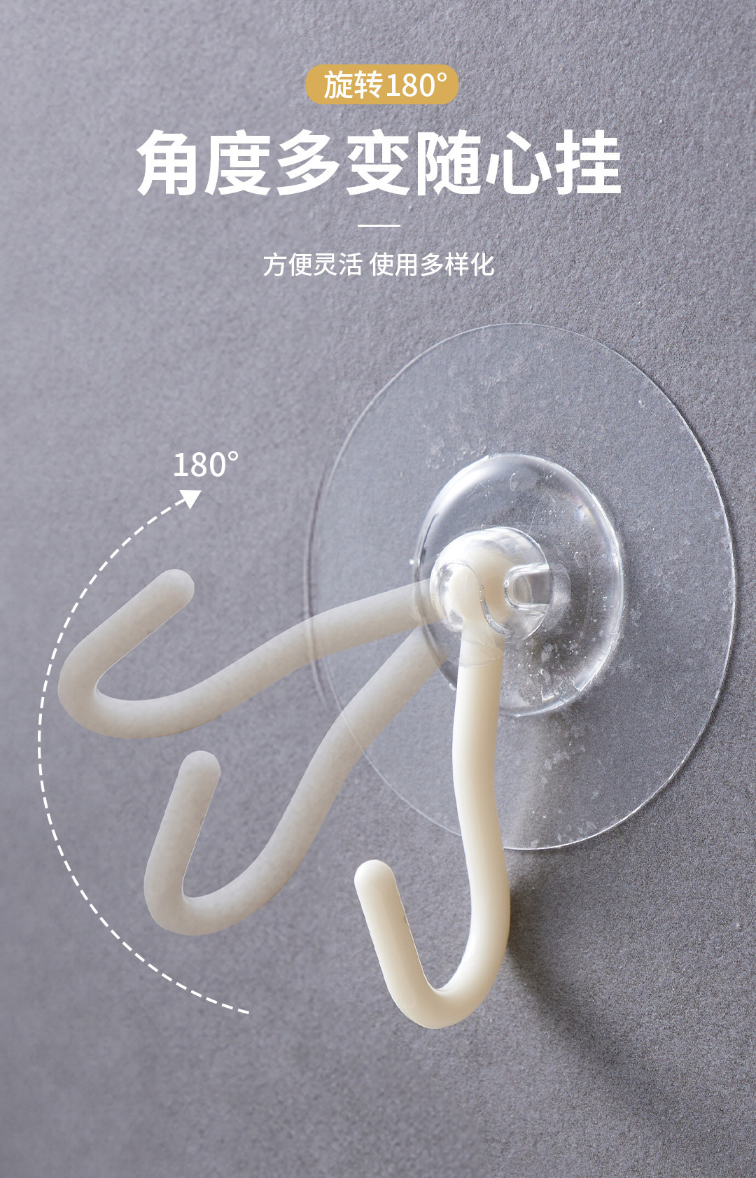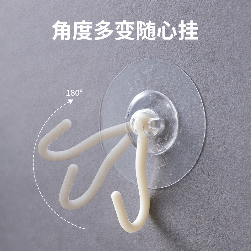 专利免打孔旋转粘钩透明强力吸盘挂钩浴室厨房家用无痕壁挂收纳钩