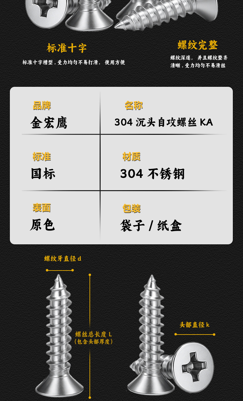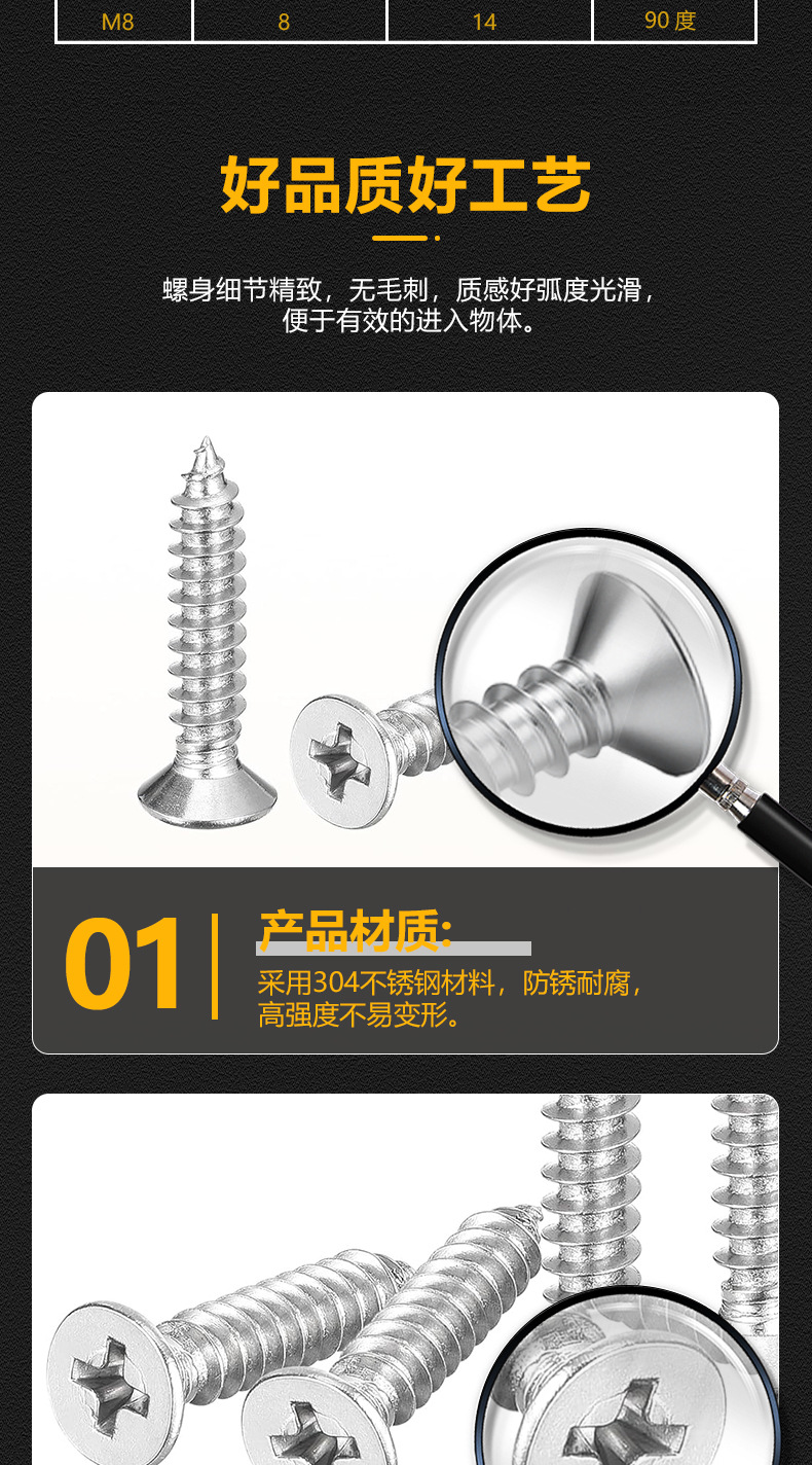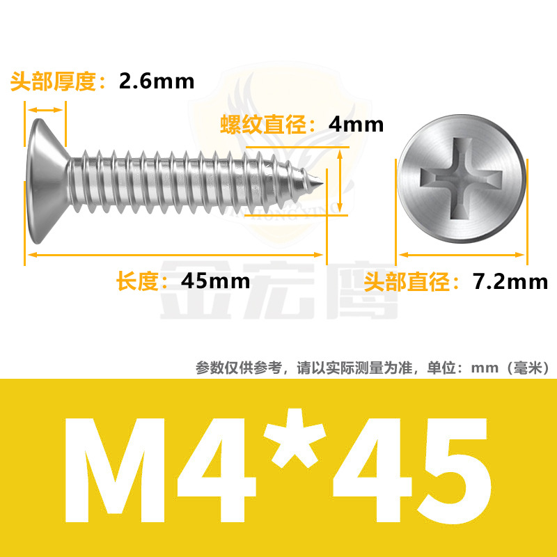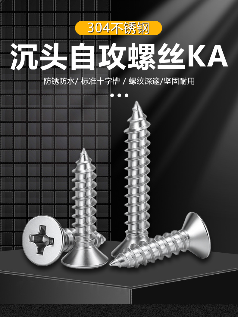 304不锈钢自攻螺丝KA沉头十字螺丝平头尖尾自攻螺丝钉M2M3M4M5M6