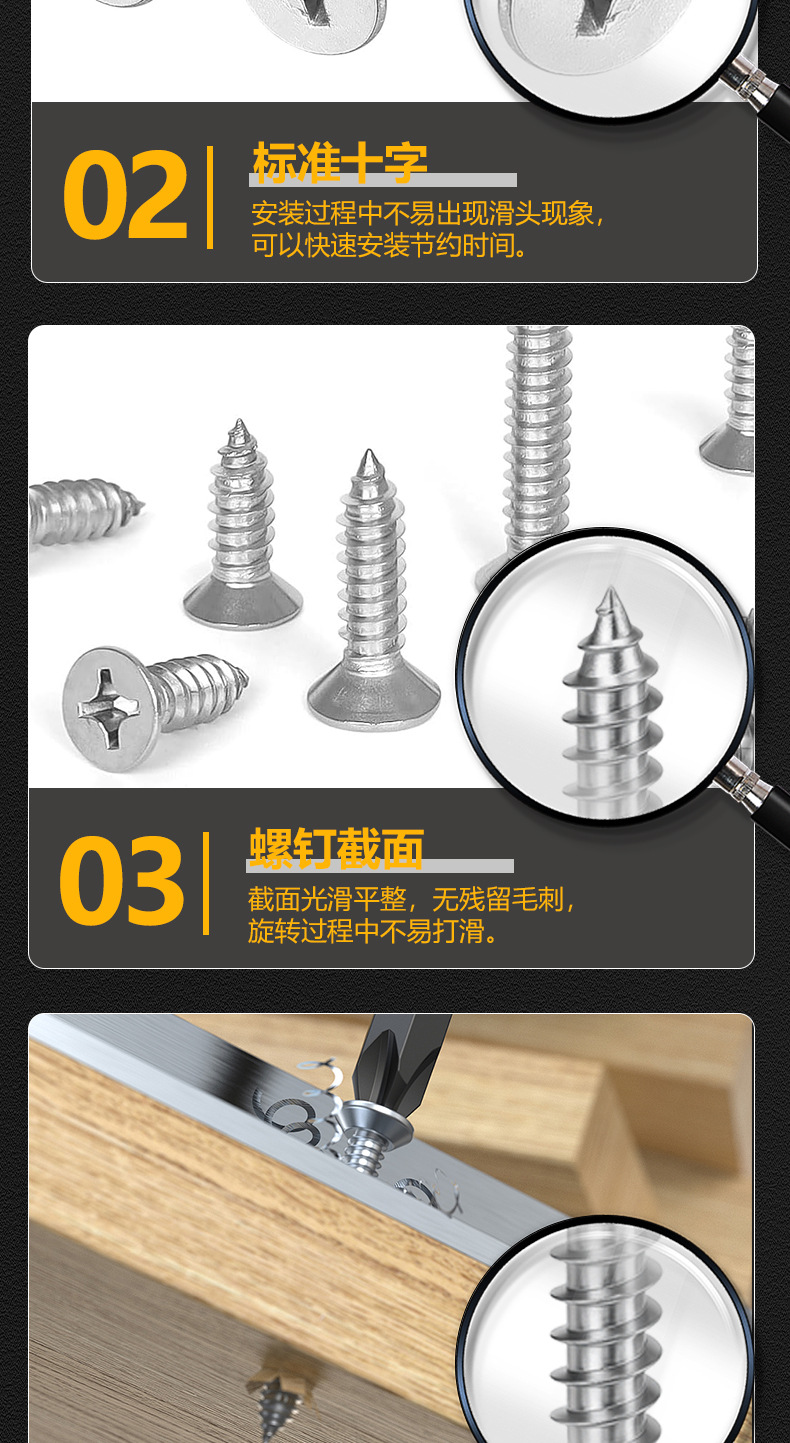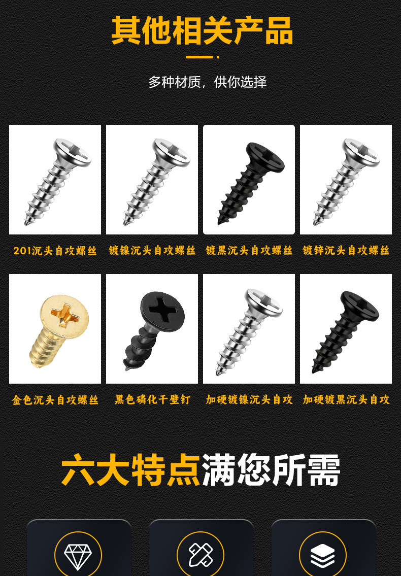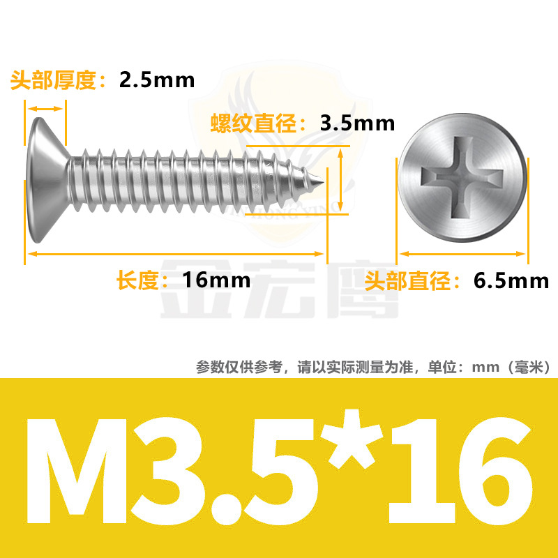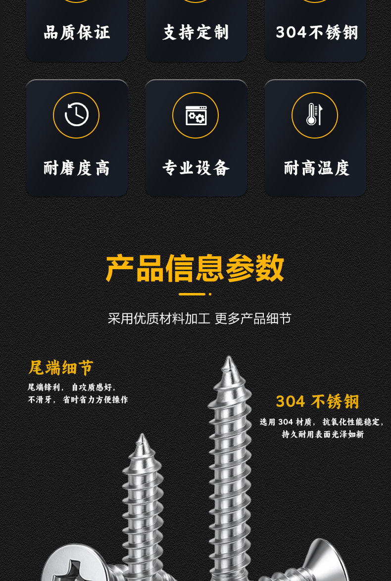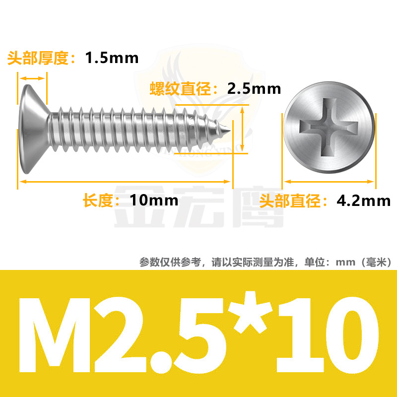 304不锈钢自攻螺丝KA沉头十字螺丝平头尖尾自攻螺丝钉M2M3M4M5M6