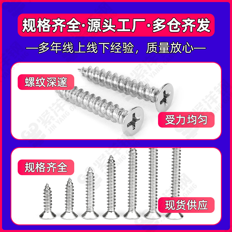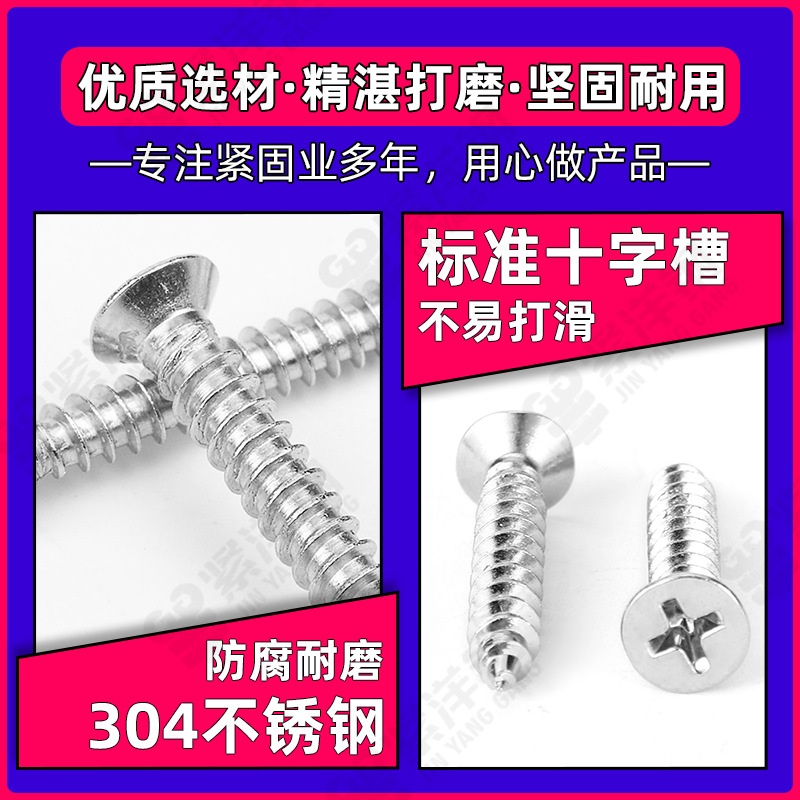 304不锈钢螺丝自攻螺丝KA尖尾平头螺钉十字沉头自攻丝平头自攻钉