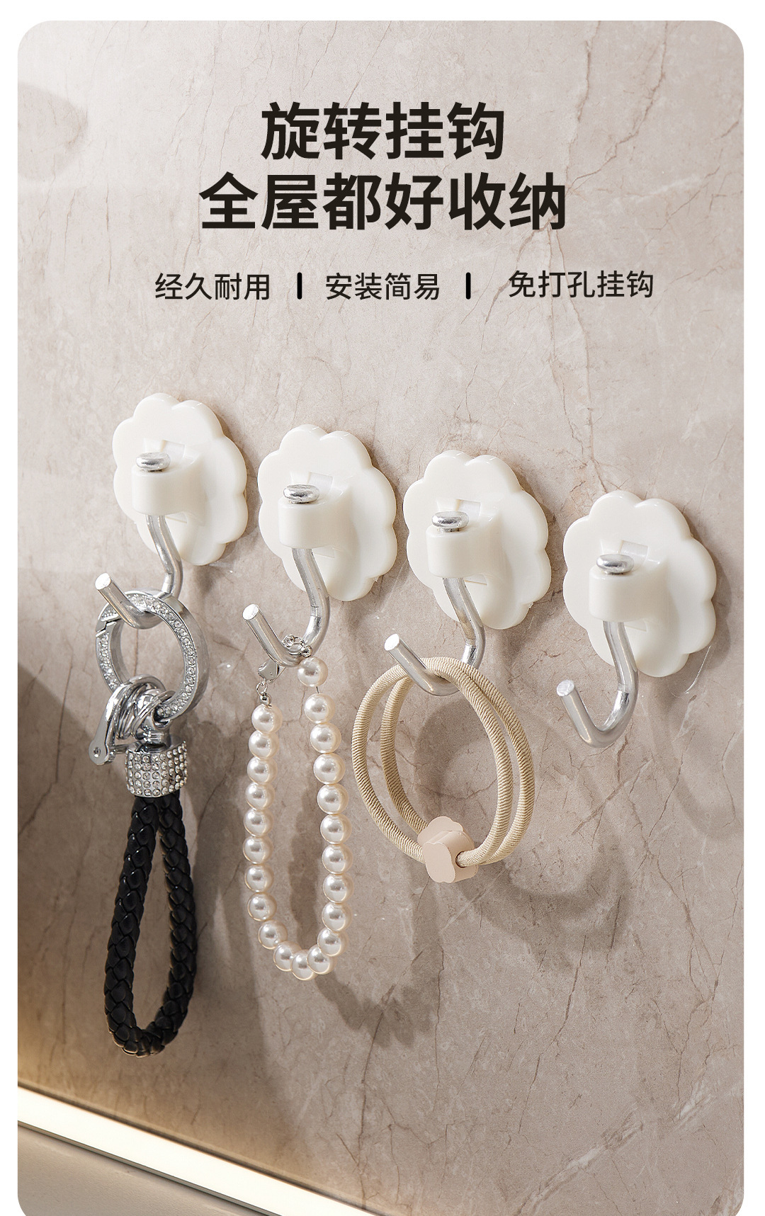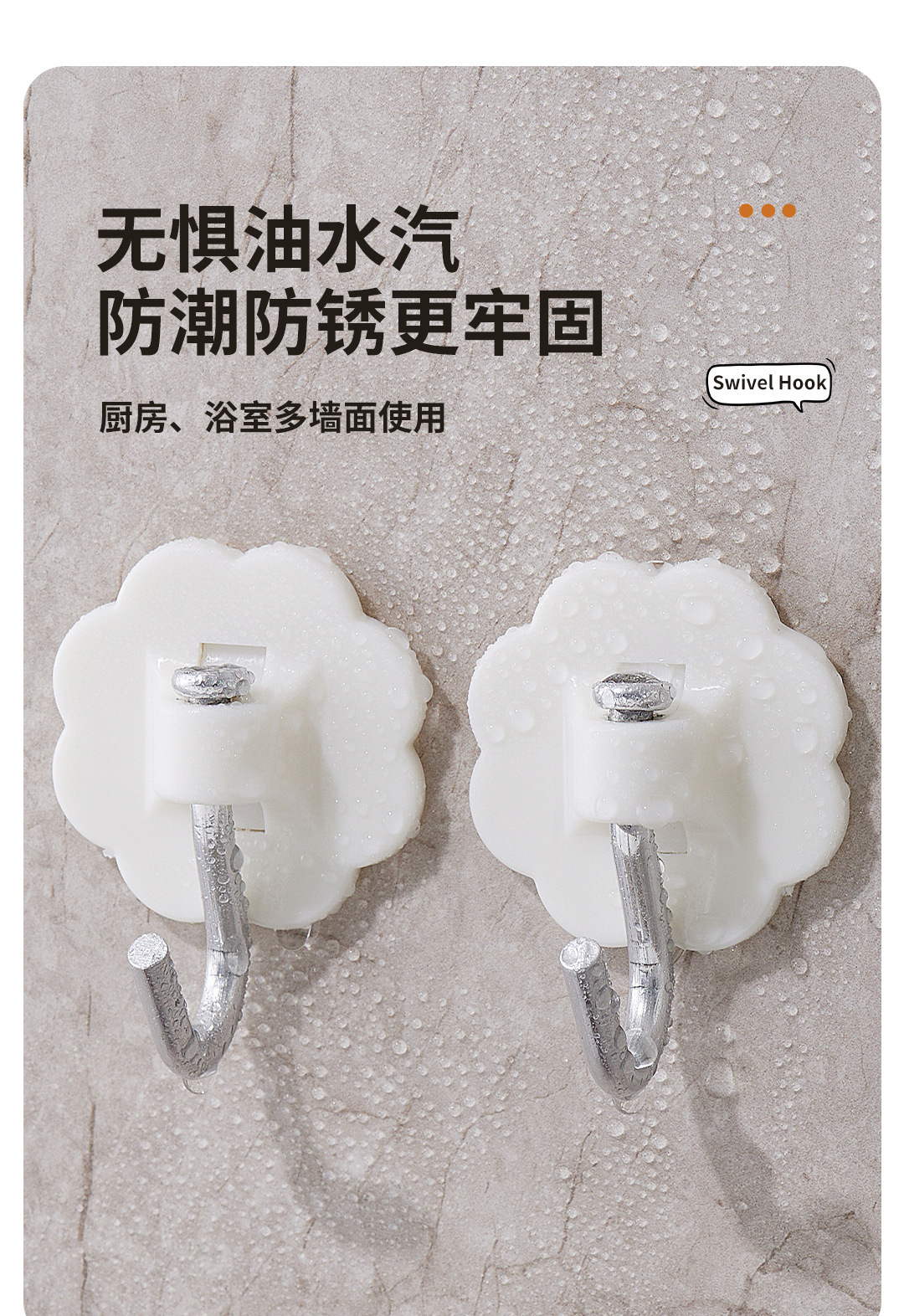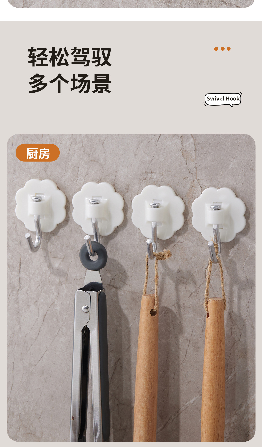 旋转粘钩免打孔浴室厨房挂钩强力无痕贴花形收纳钩子金属J型铝钩
