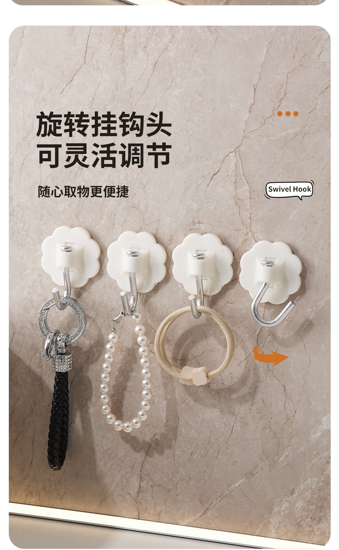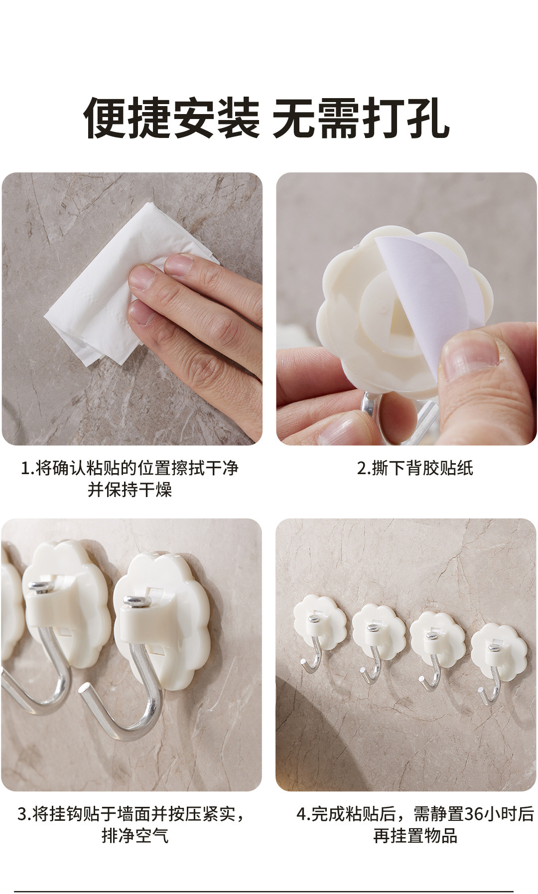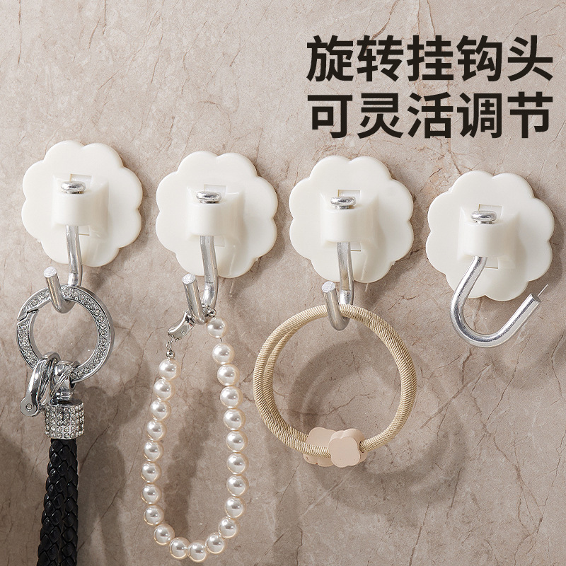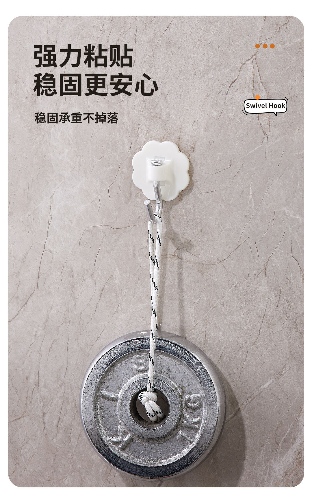 旋转粘钩免打孔浴室厨房挂钩强力无痕贴花形收纳钩子金属J型铝钩