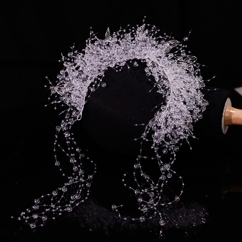 轻奢新娘高级水晶发饰森系气质公主婚纱配饰复古梦幻重手工婚饰品