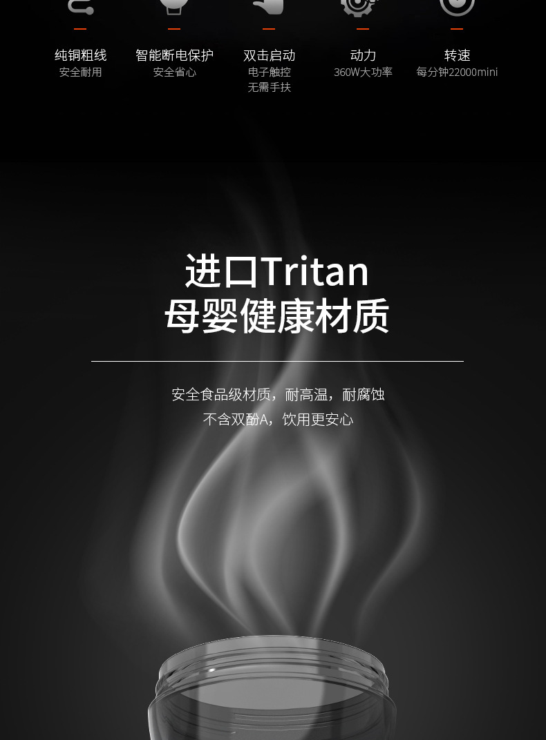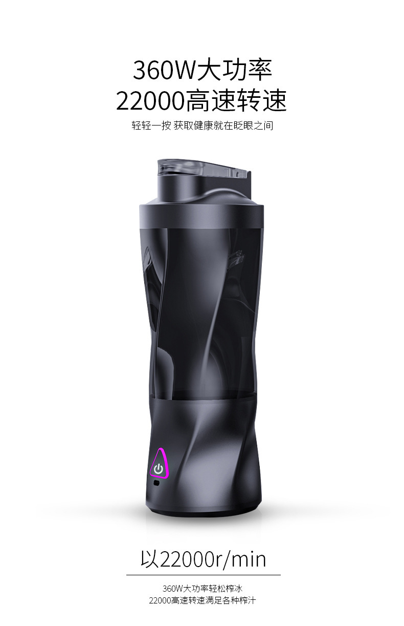 跨境亚马逊新品便携式榨汁机6000毫安电池360W大功率无线果汁机