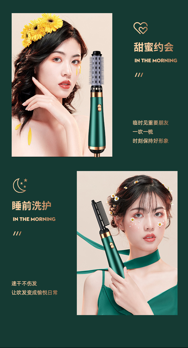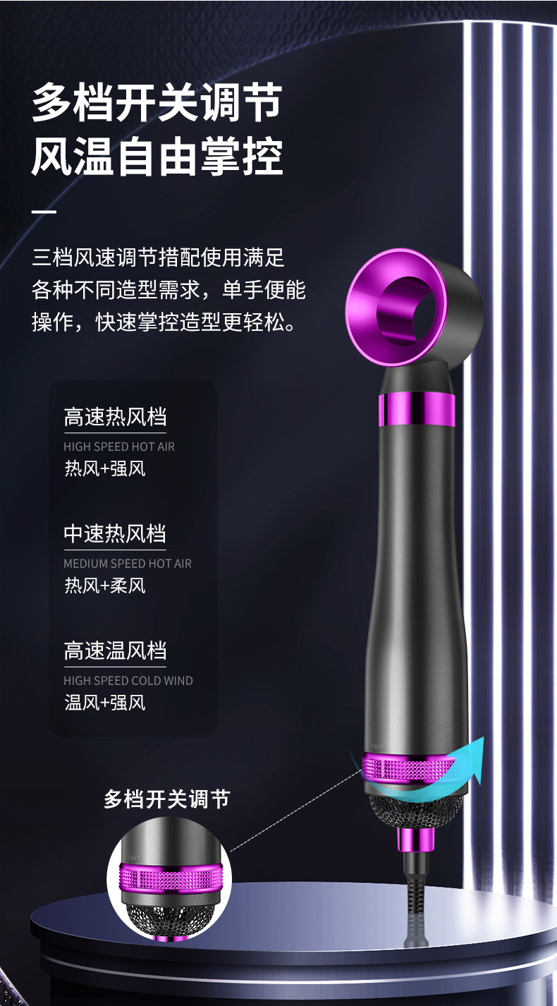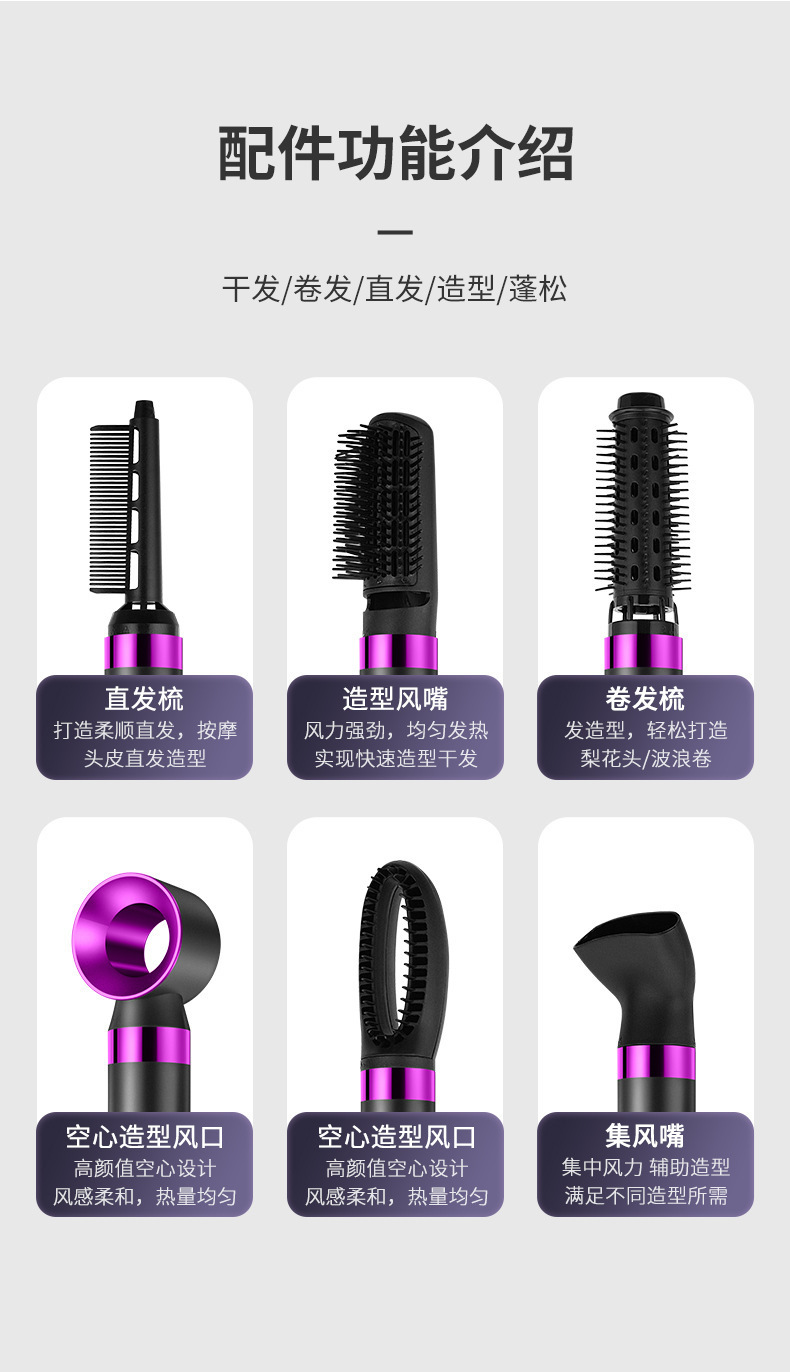 跨境高速吹风机电卷发棒吹梳六合一体机负离子电吹风造型吹风筒