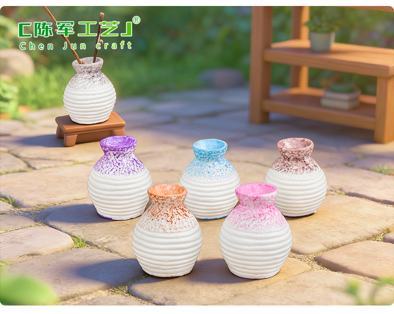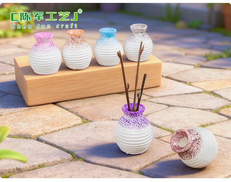 微景观多肉摆件树脂工艺品仿真陶瓷细口小花瓶创意家居桌面小摆件