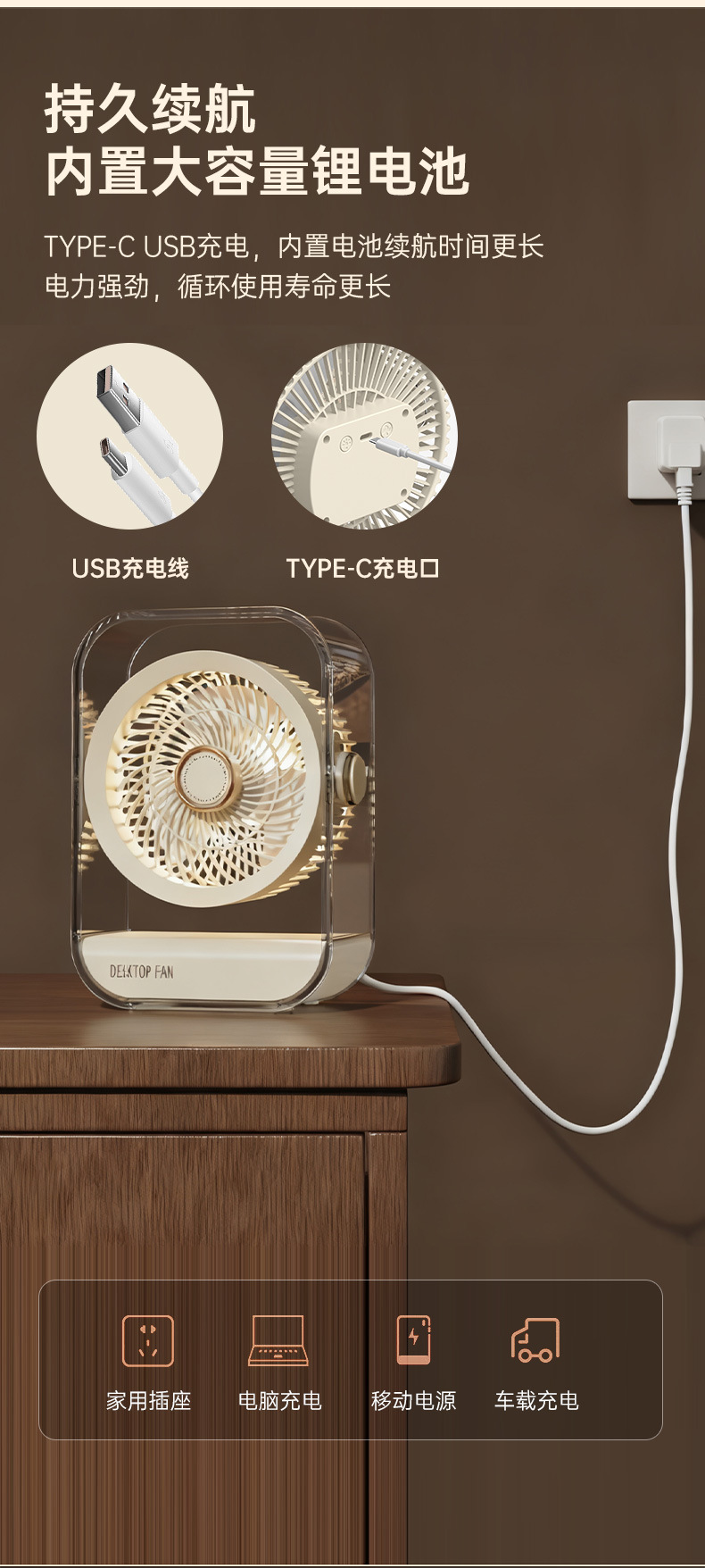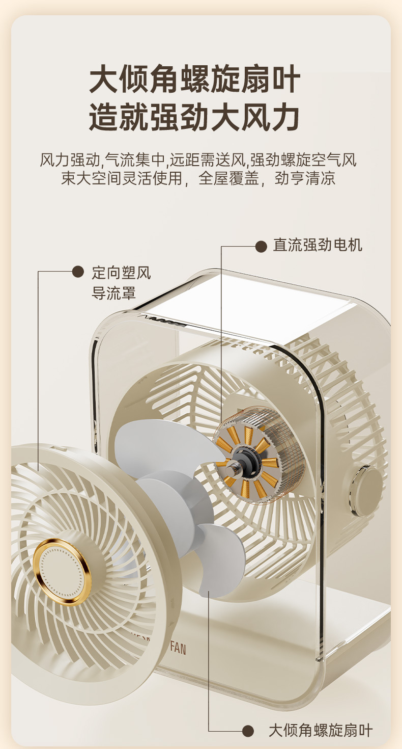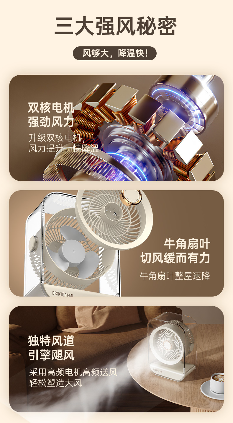 新款桌面家用风扇台式usb充电款大风力循环扇学生宿舍办公电风扇