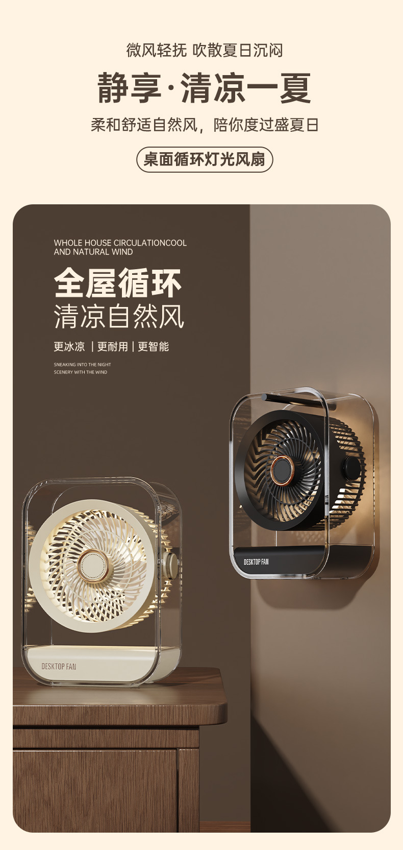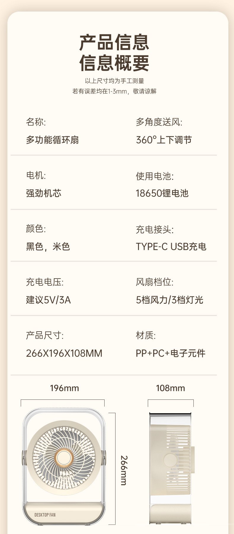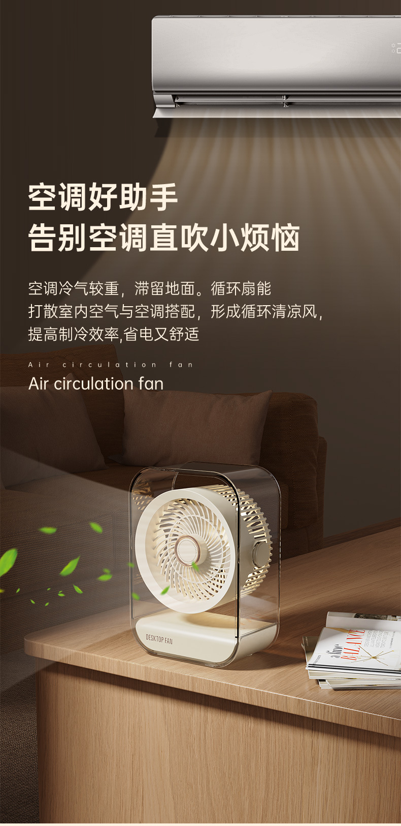 新款桌面家用风扇台式usb充电款大风力循环扇学生宿舍办公电风扇