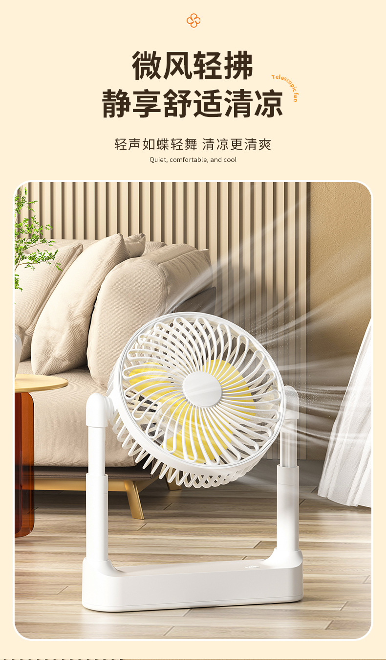 新款桌面usb伸缩风扇便携台式风扇充电办公室户外小风扇家用吊扇
