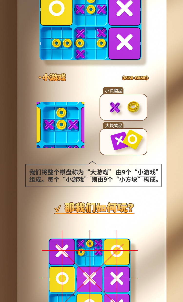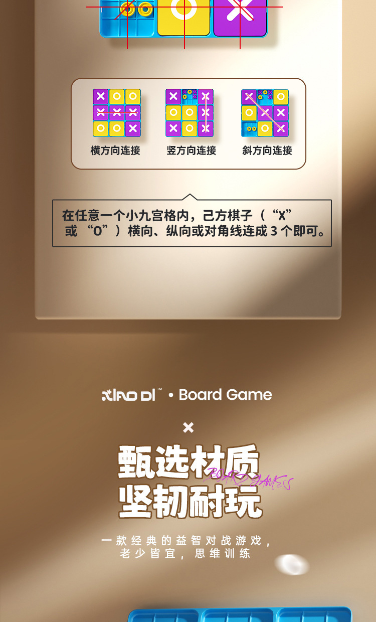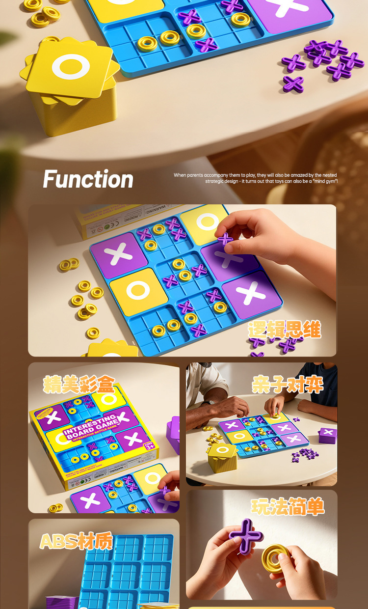 跨境新款九宫格XO井字棋盘早教桌面游戏训练逻辑思维儿童益智玩具