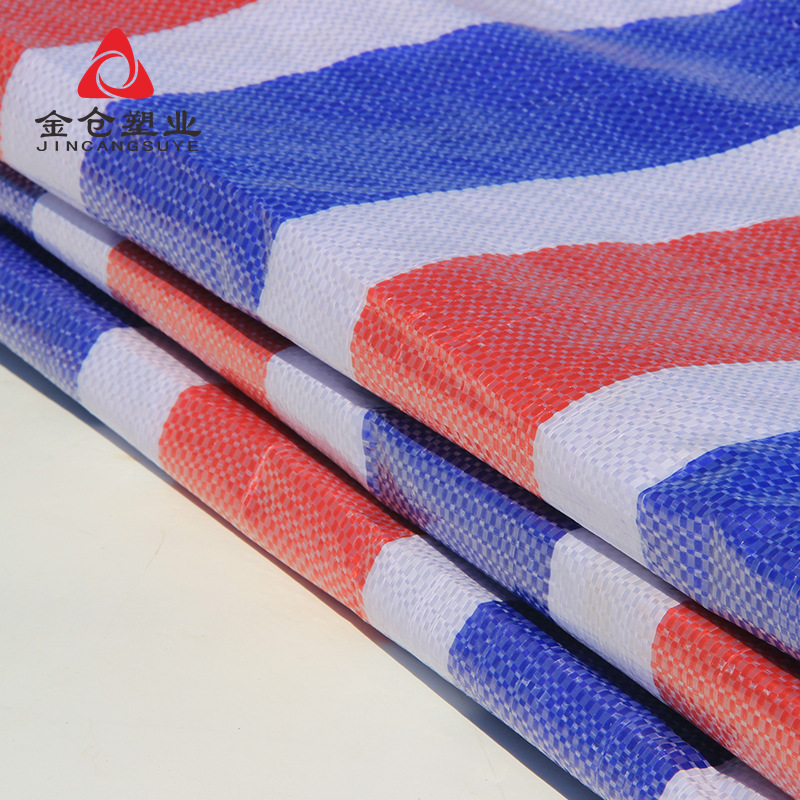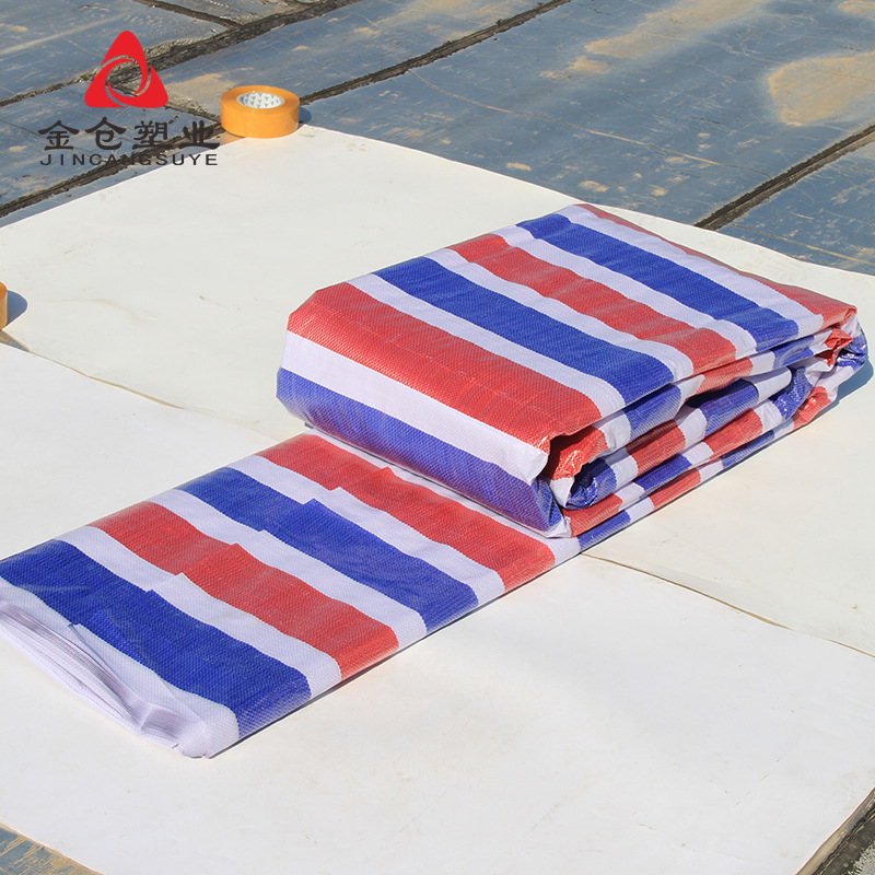 红白蓝三色彩条布批发PE双膜塑料篷布苫布防汛防水防雨布 95-115