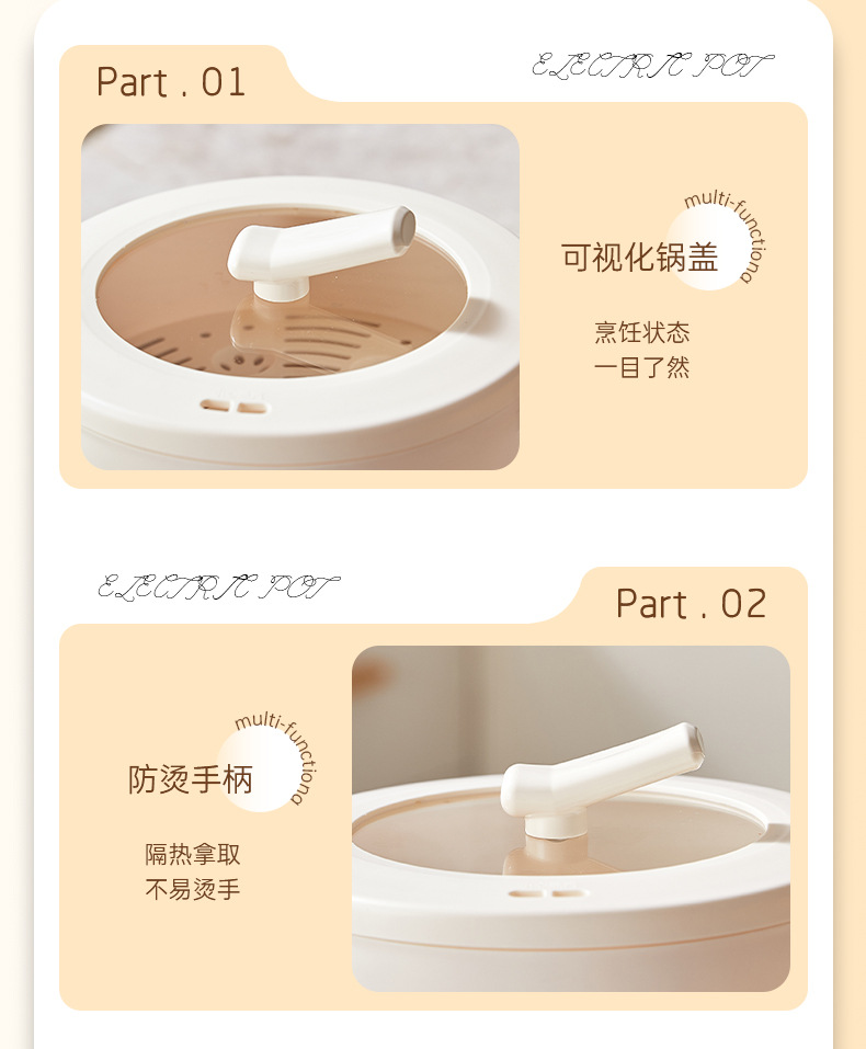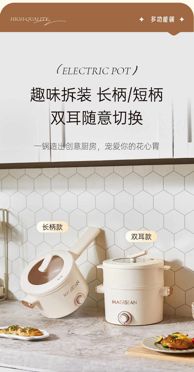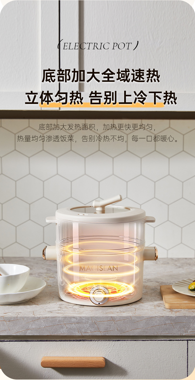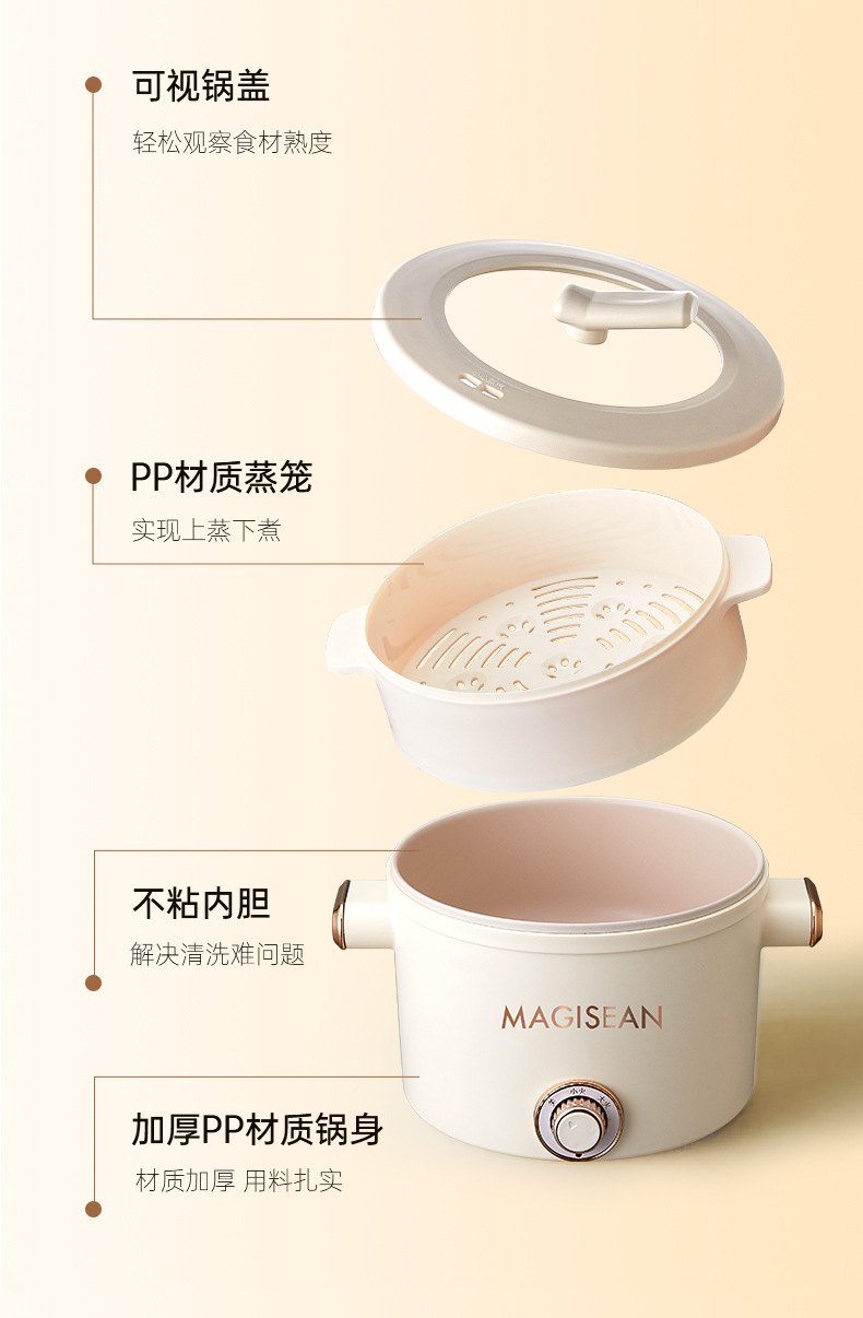 小型炖煮一体锅家用不粘电火锅宿舍迷你多功能便携智能电煮锅跨境