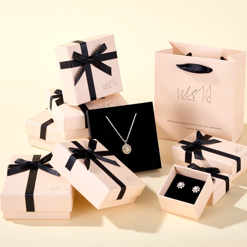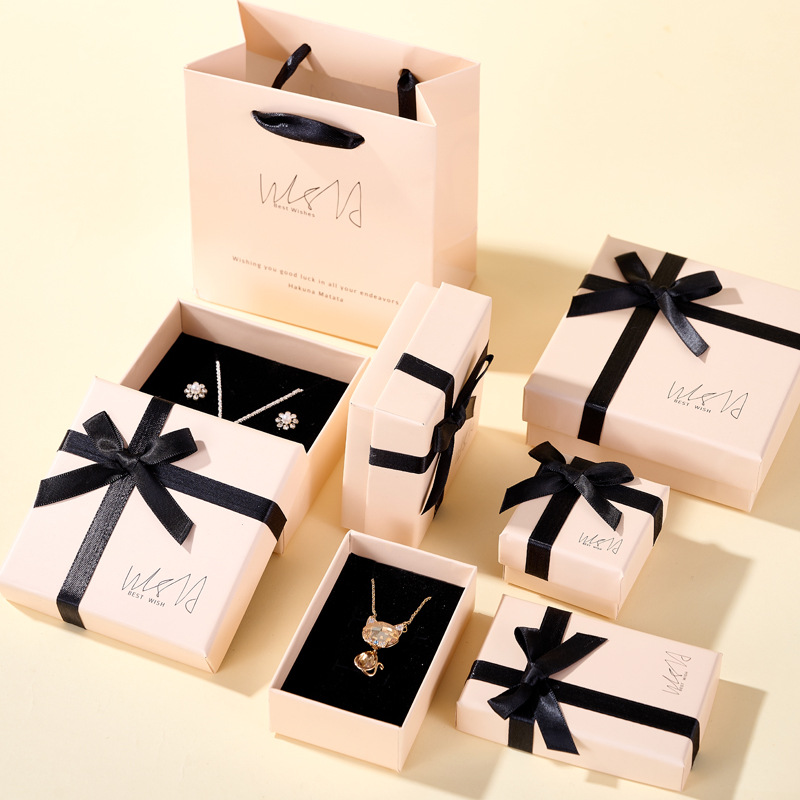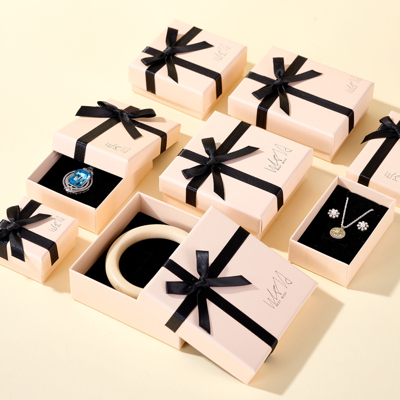 高档蝴蝶结首饰盒 粉色饰品包装盒 情人节礼物盒 戒指耳环项链盒