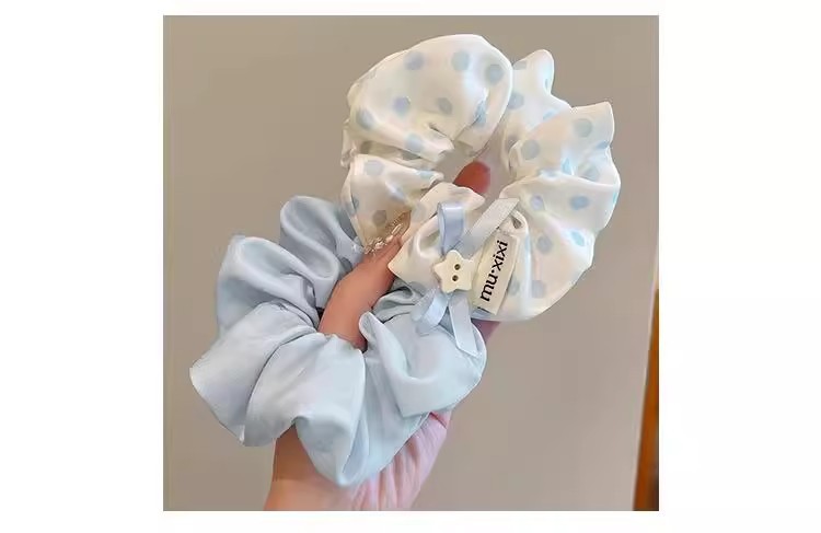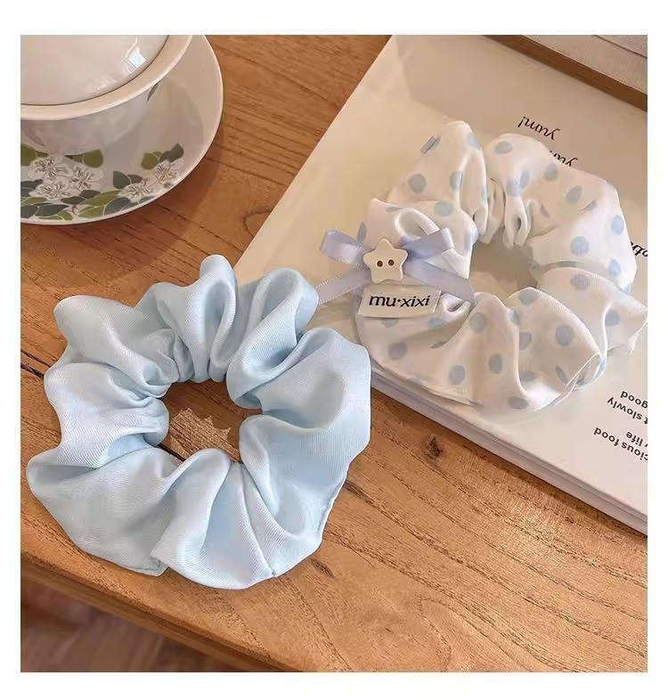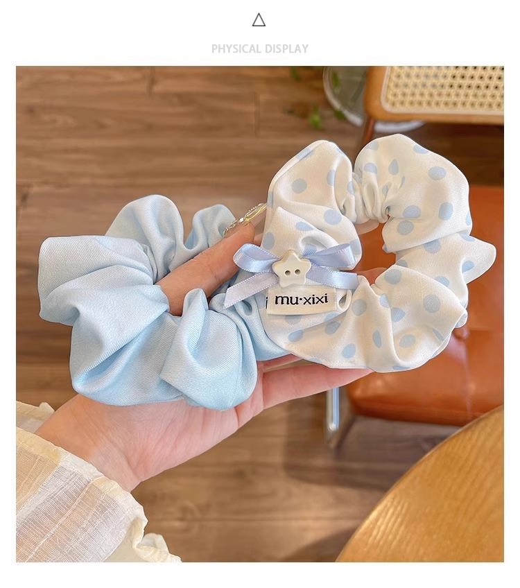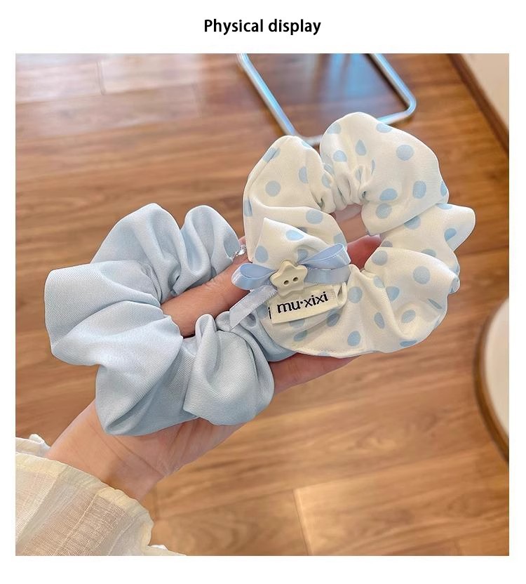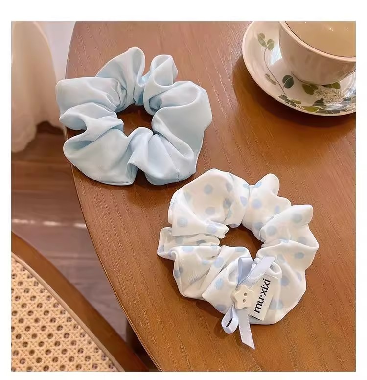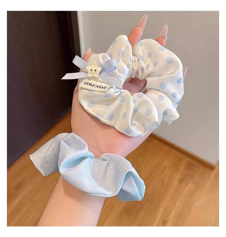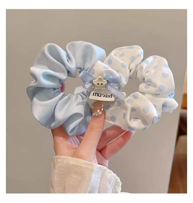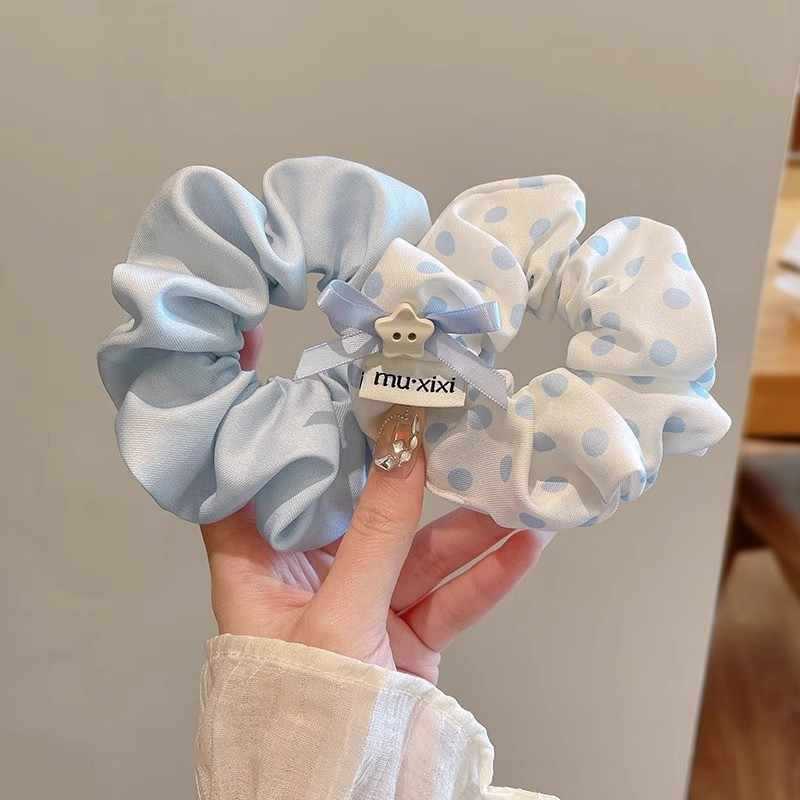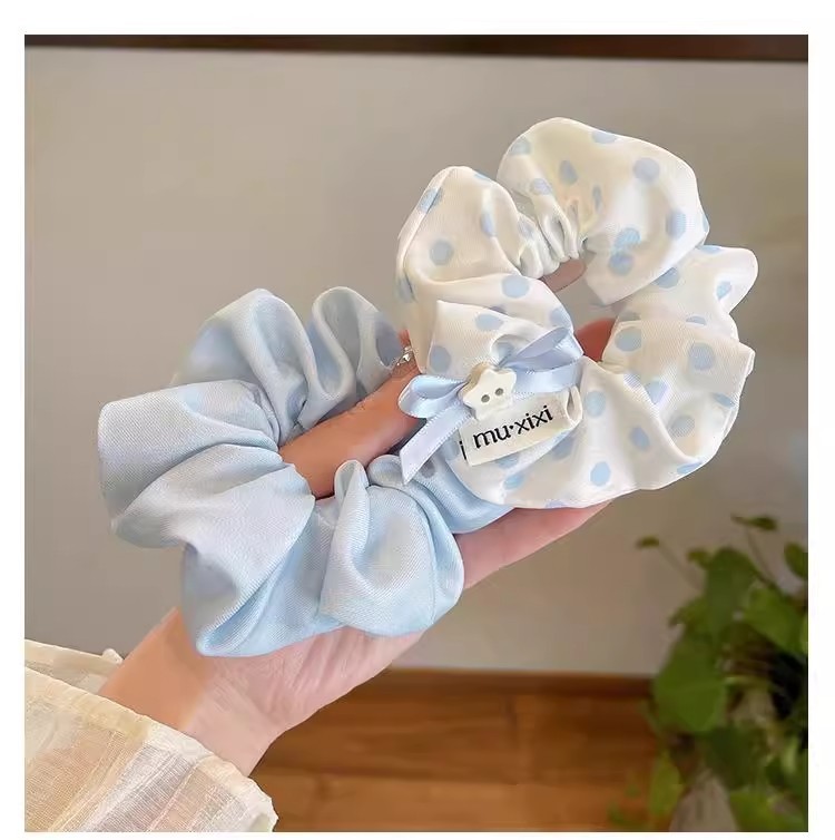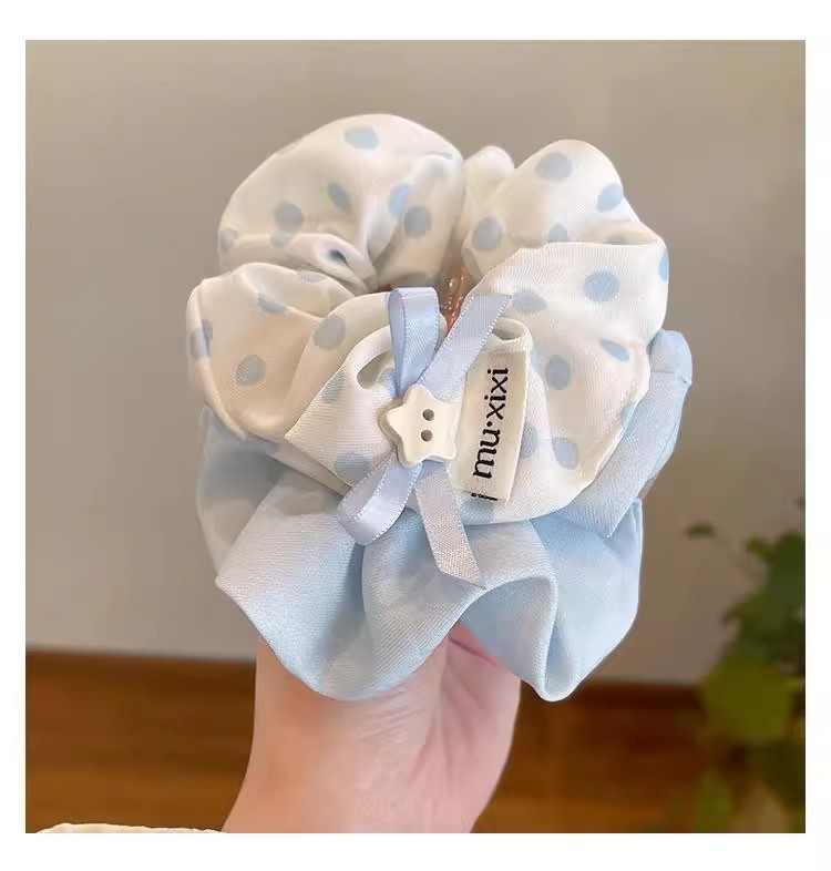 森系波点蝴蝶结大肠发圈女2025新款高级感蓝色扎头发头绳头花发饰