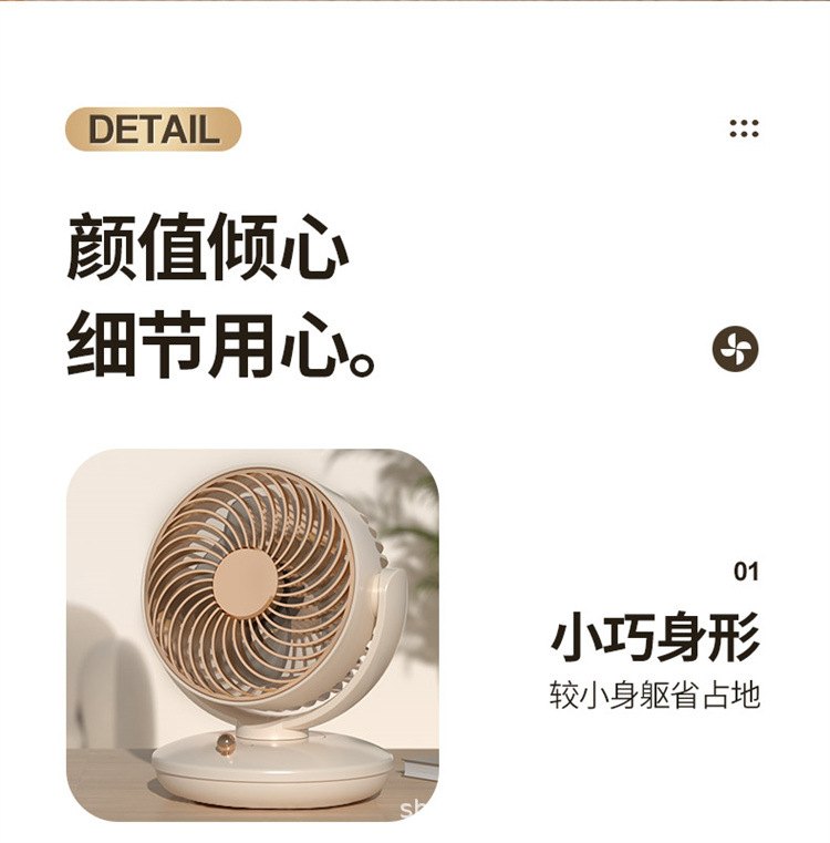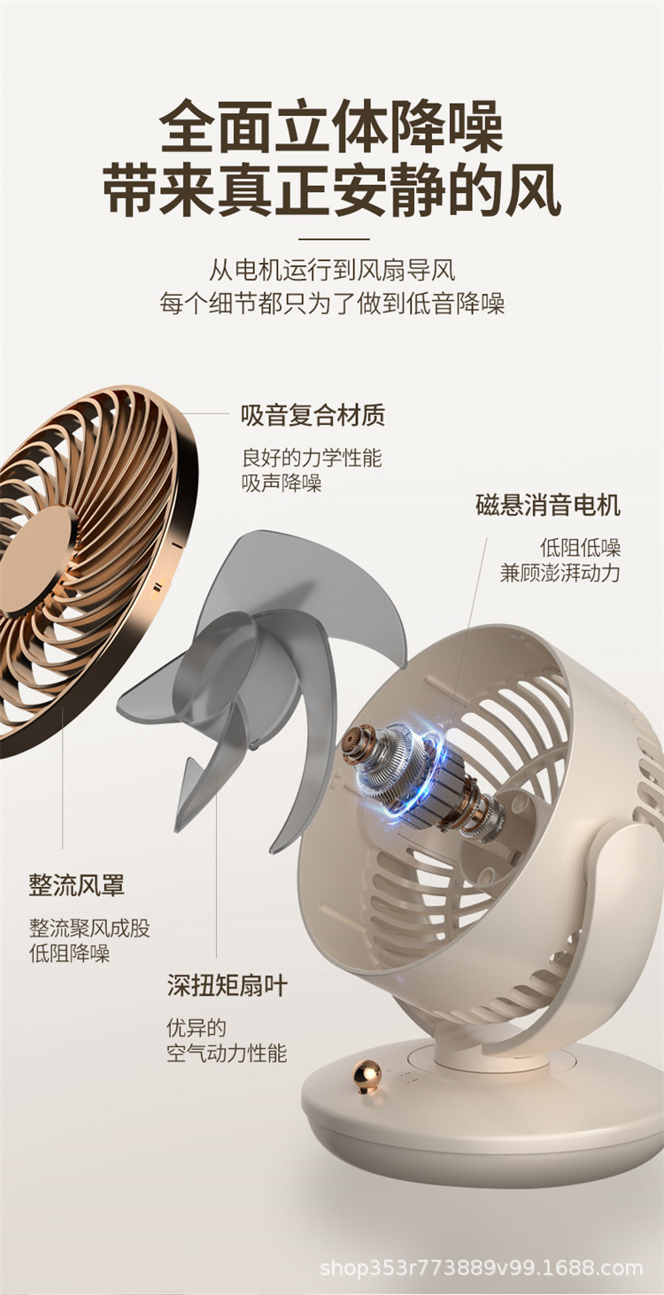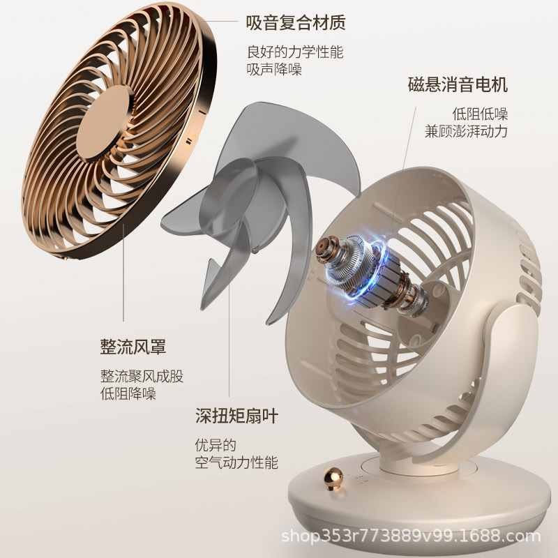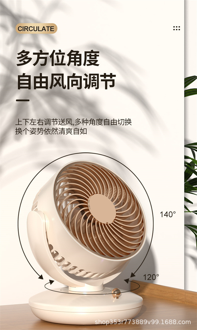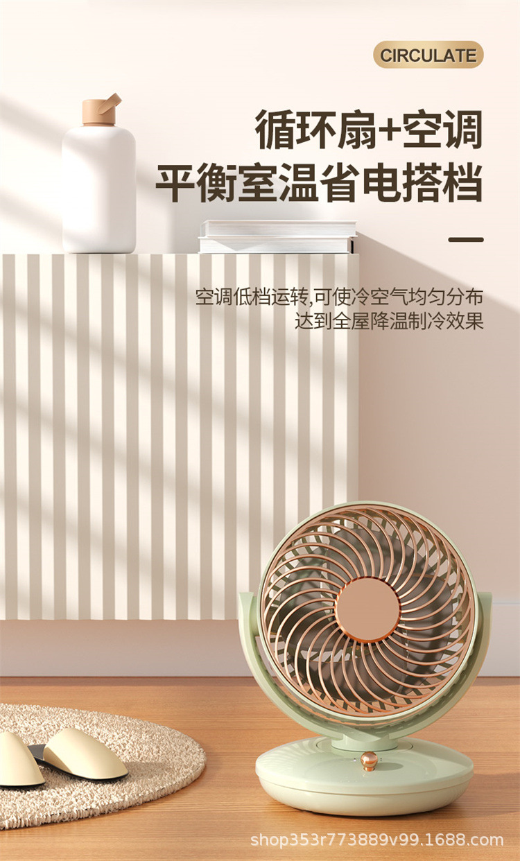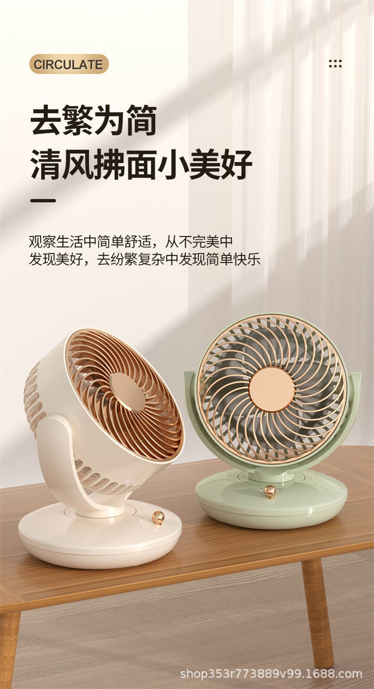 桌面风扇跨境空气循环宿舍办公室三档静音自动摇头扇小usb
