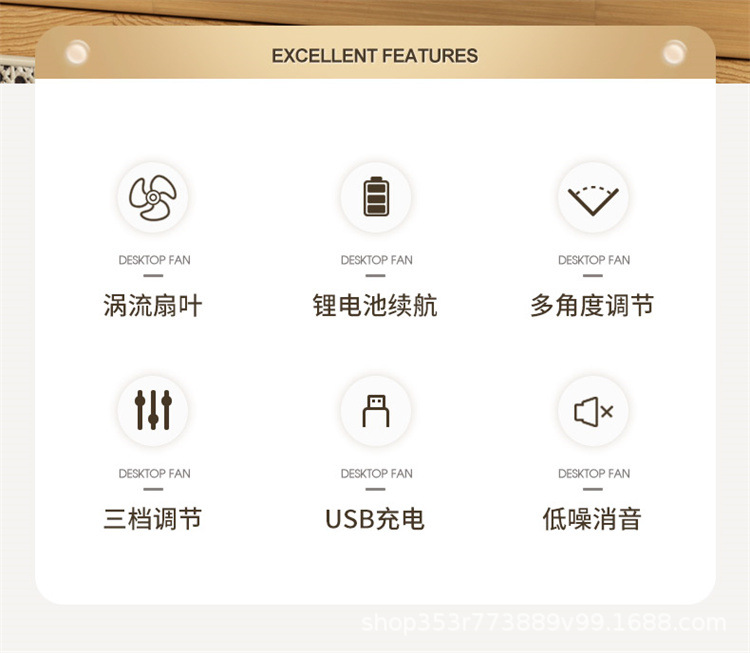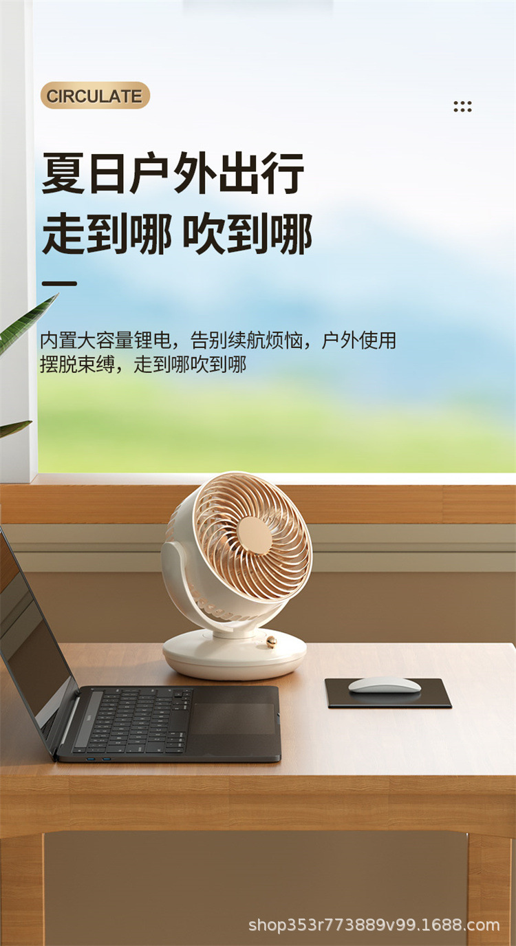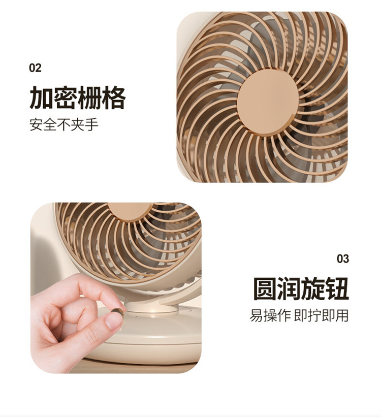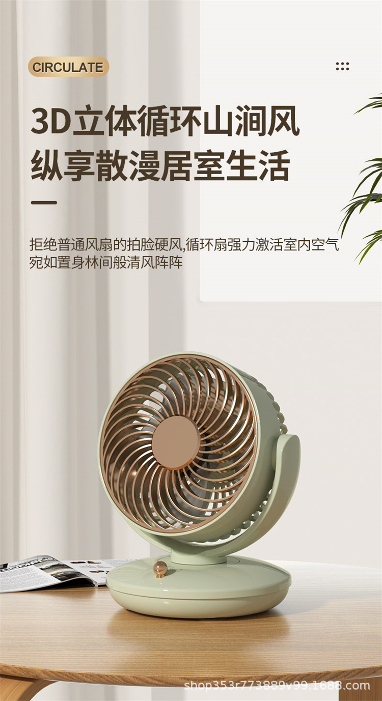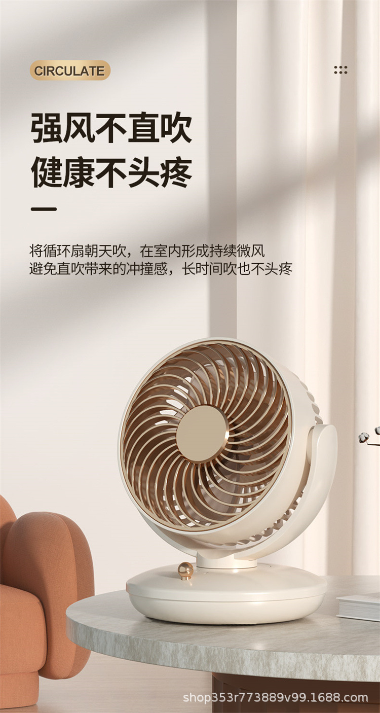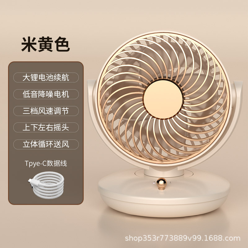 桌面风扇跨境空气循环宿舍办公室三档静音自动摇头扇小usb