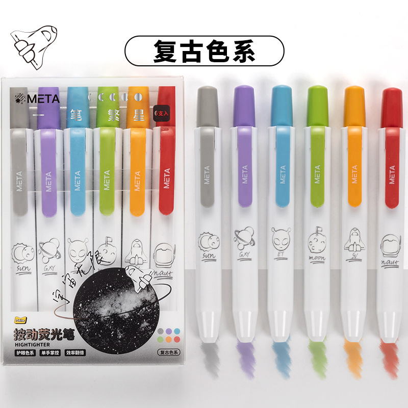 TacoTaco按动荧光笔按动莫兰迪色6支错题标记笔轮廓笔划重点笔