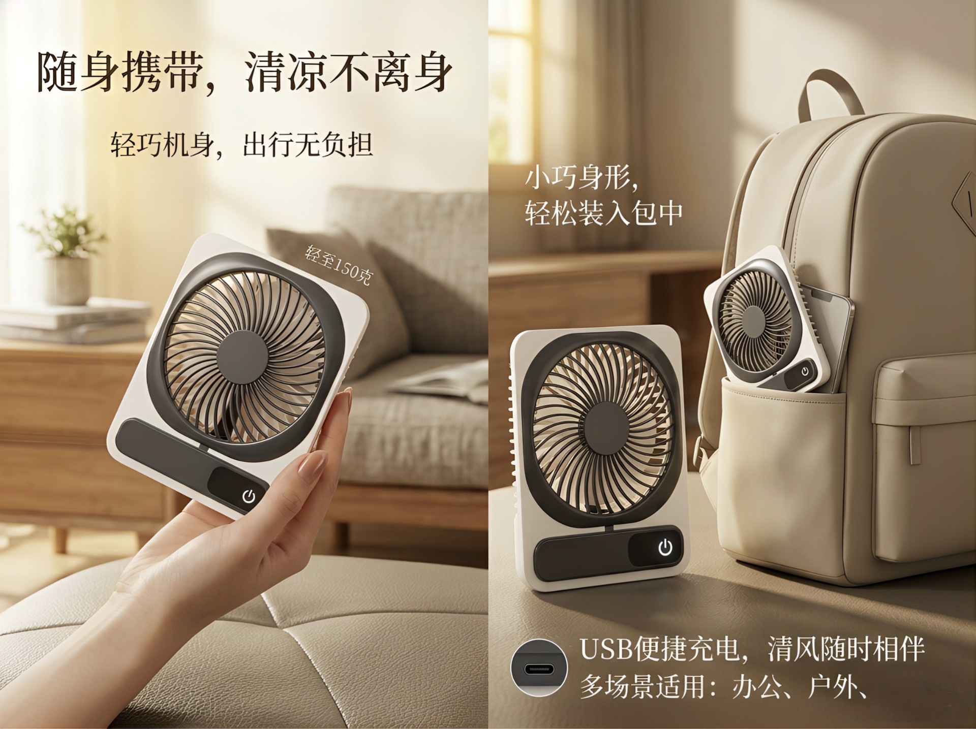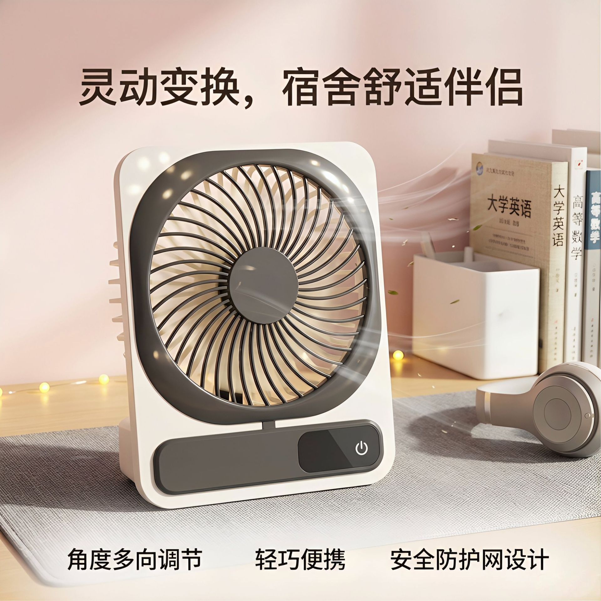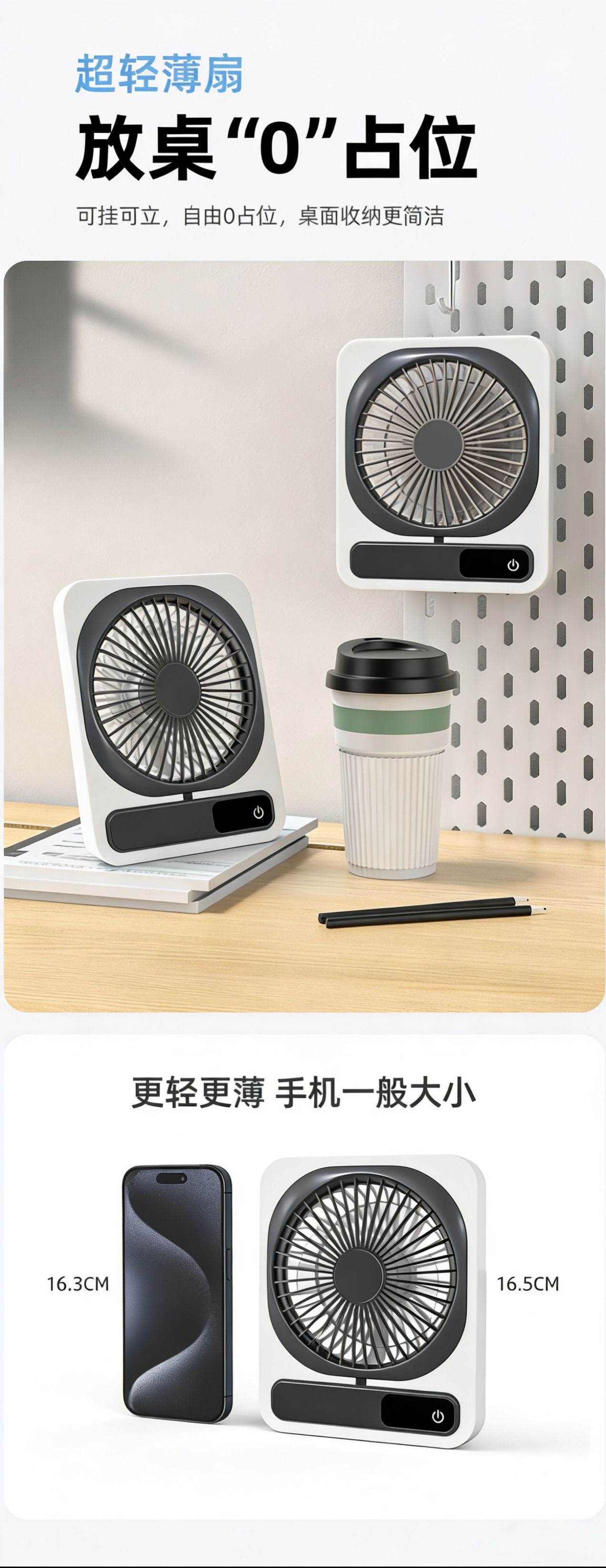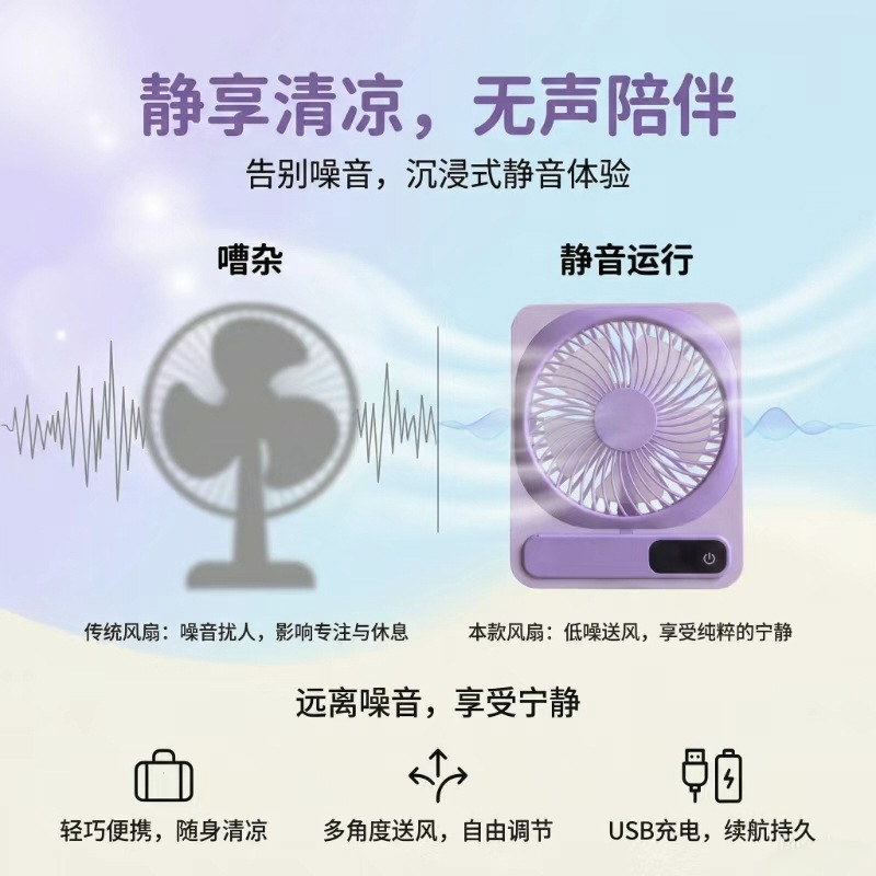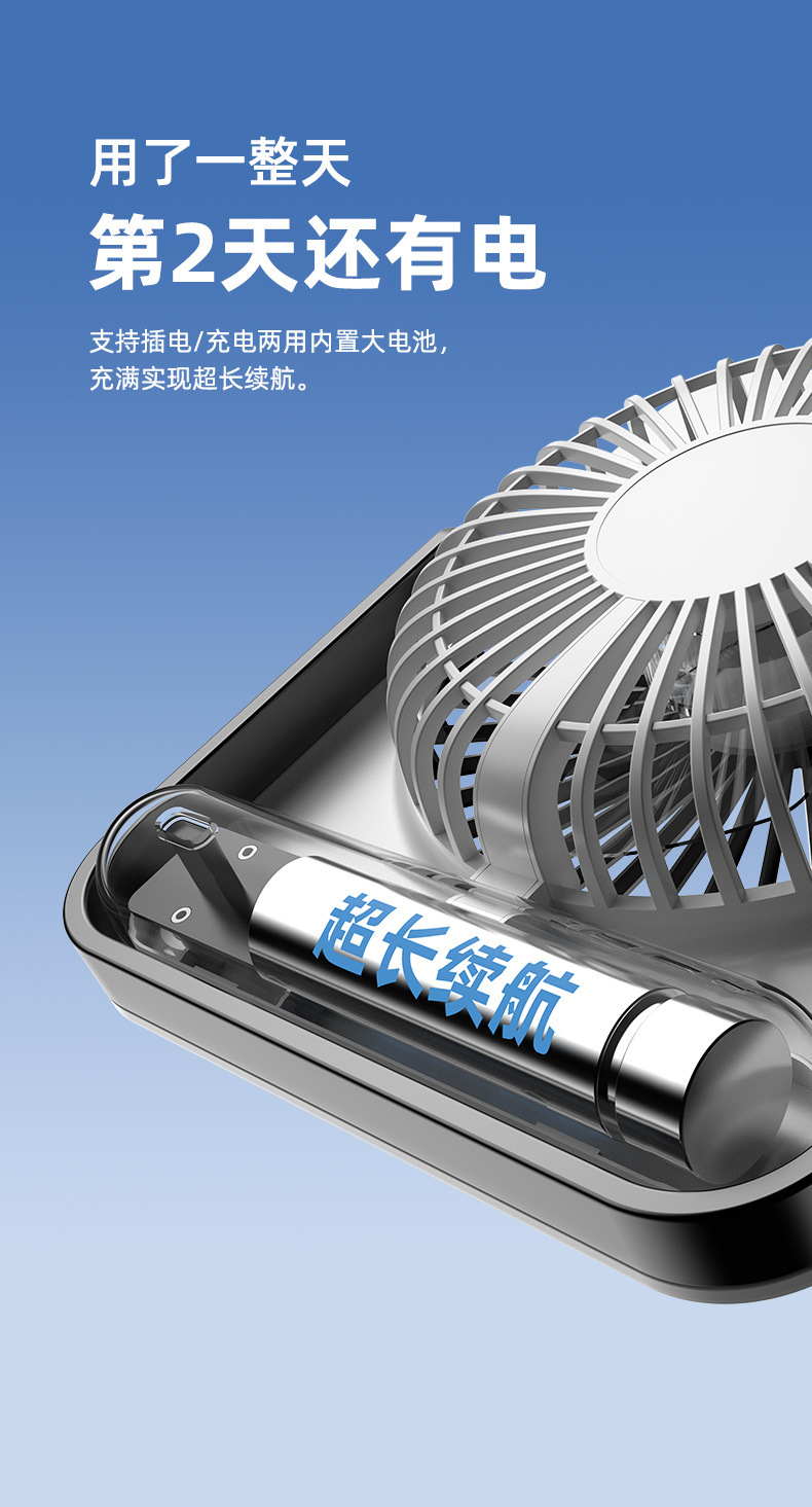 桌面风扇大风力USB充电随身手持超薄宿舍办公室可壁挂电风扇跨境