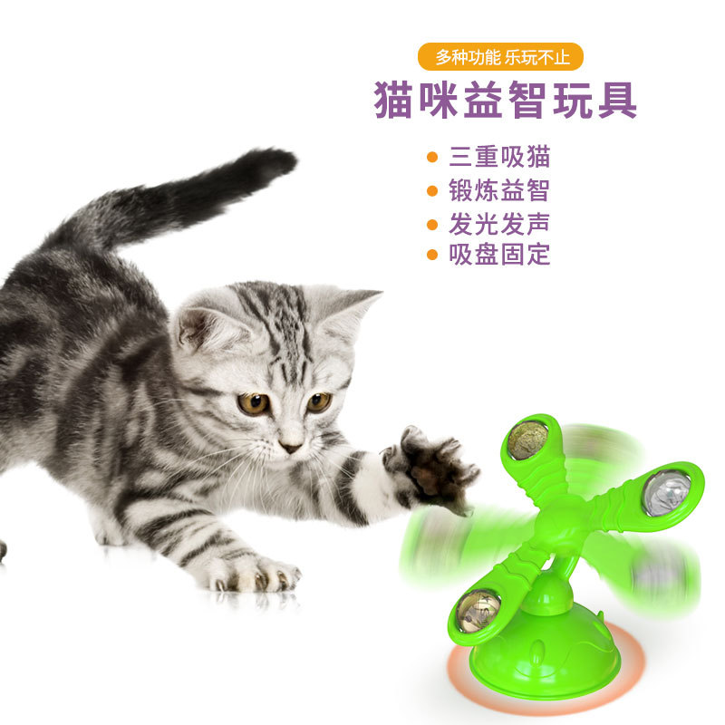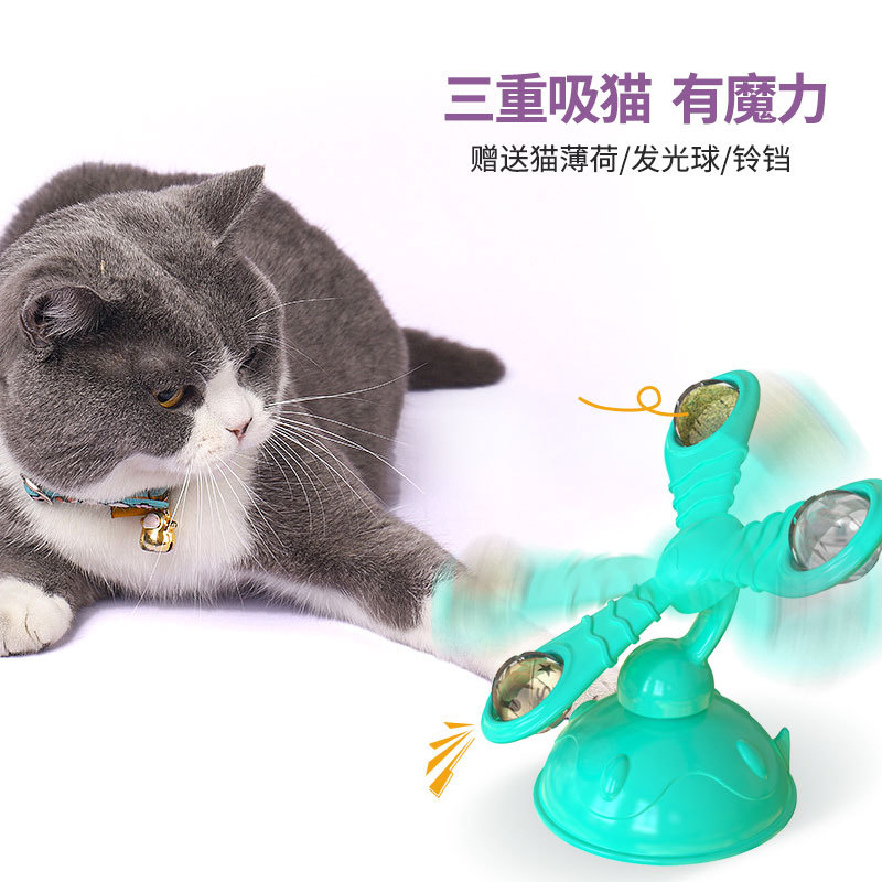 宠物玩具多功能猫咪风车吸盘玩具闪光啃咬自嗨猫咪玩具批发