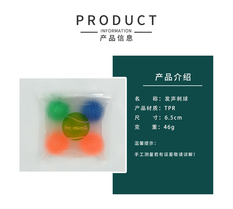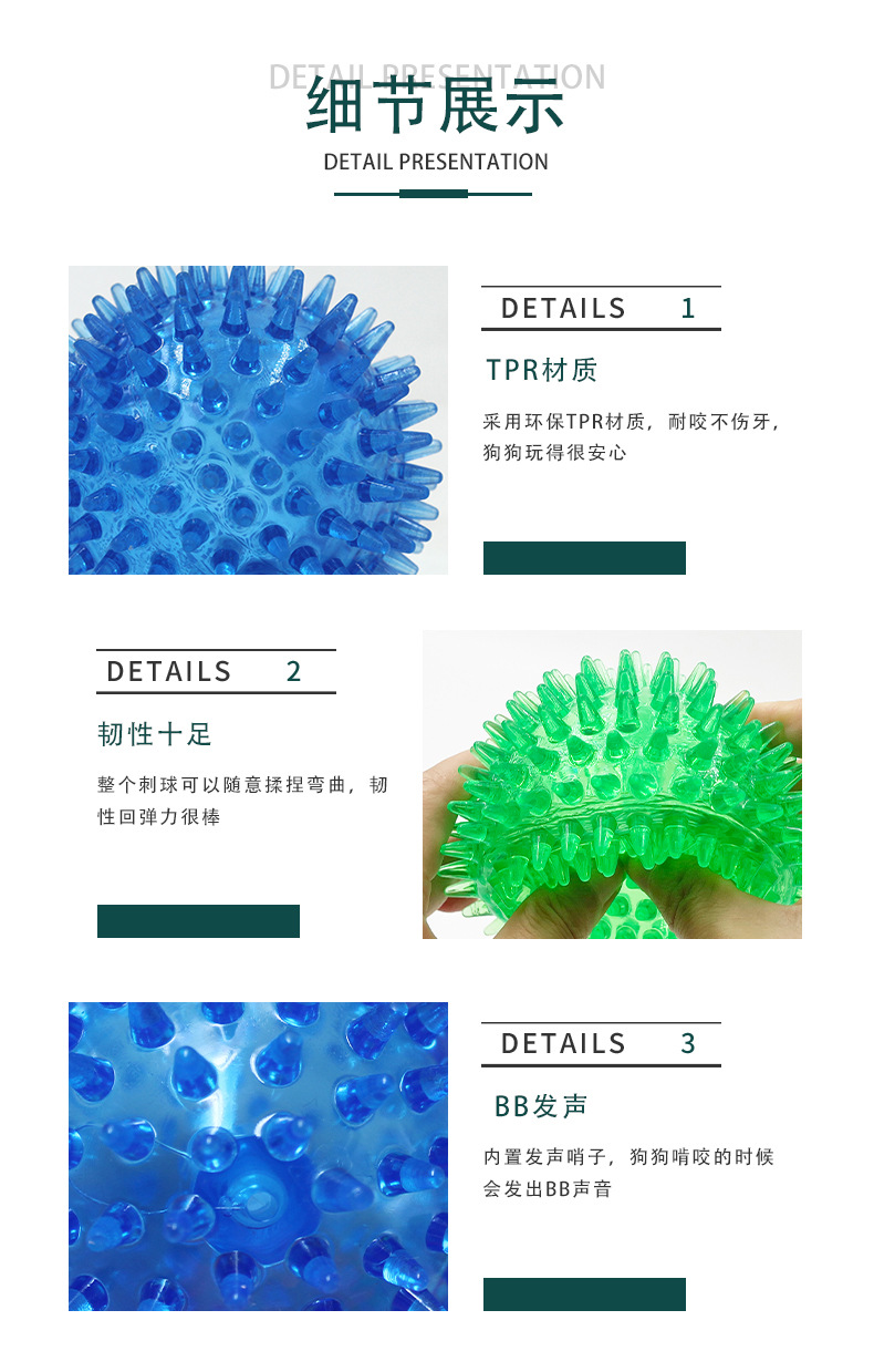 亚马逊热卖狗狗发声玩具刺球 小型犬宠物tpr磨牙玩具球现货批发