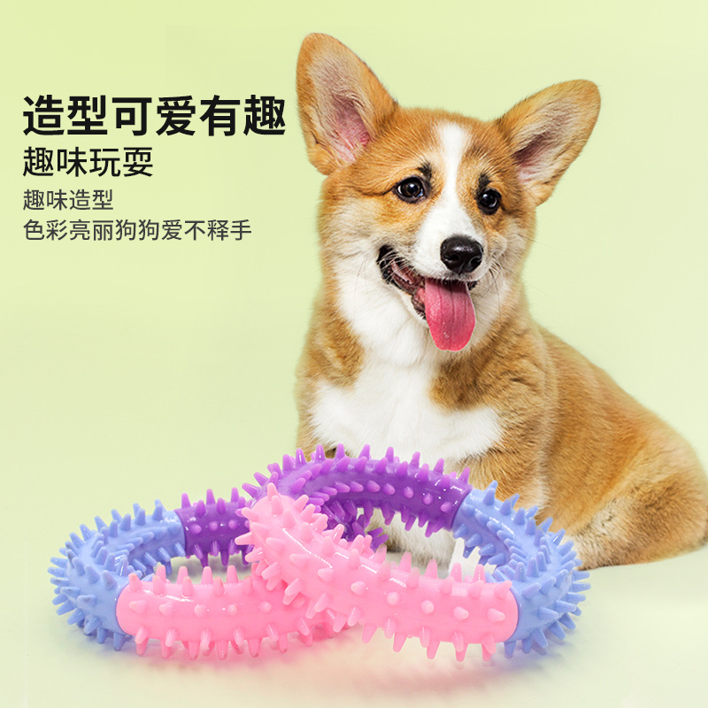 TPR宠物玩具三色刺环狗狗磨牙洁齿耐咬橡胶玩具现货批发