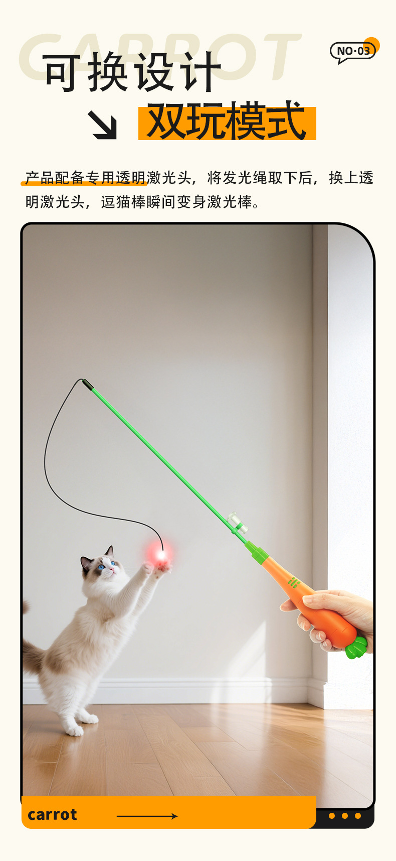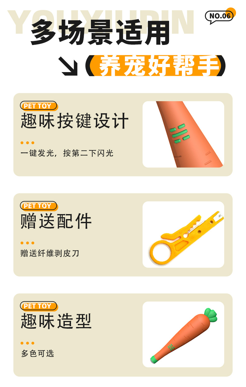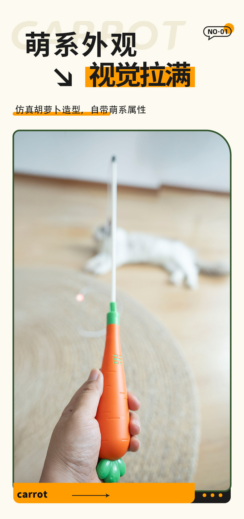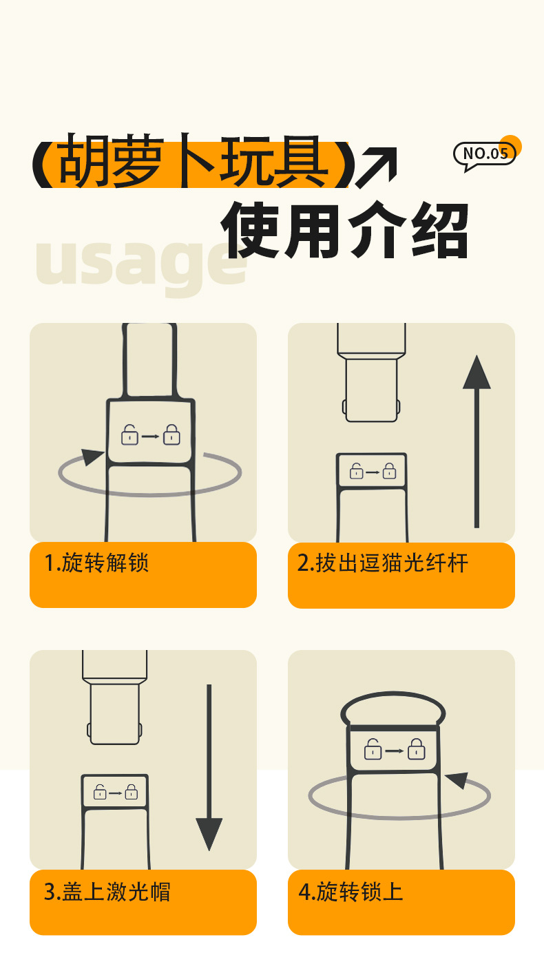 新款胡萝卜激光逗猫棒USB充电 红外线逗猫 猫咪自嗨解闷神器